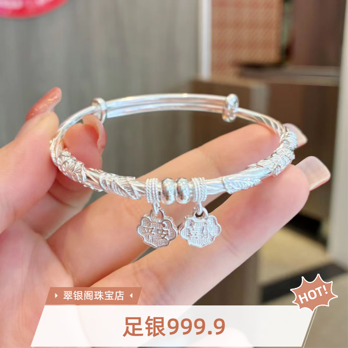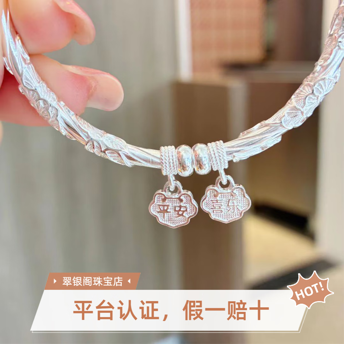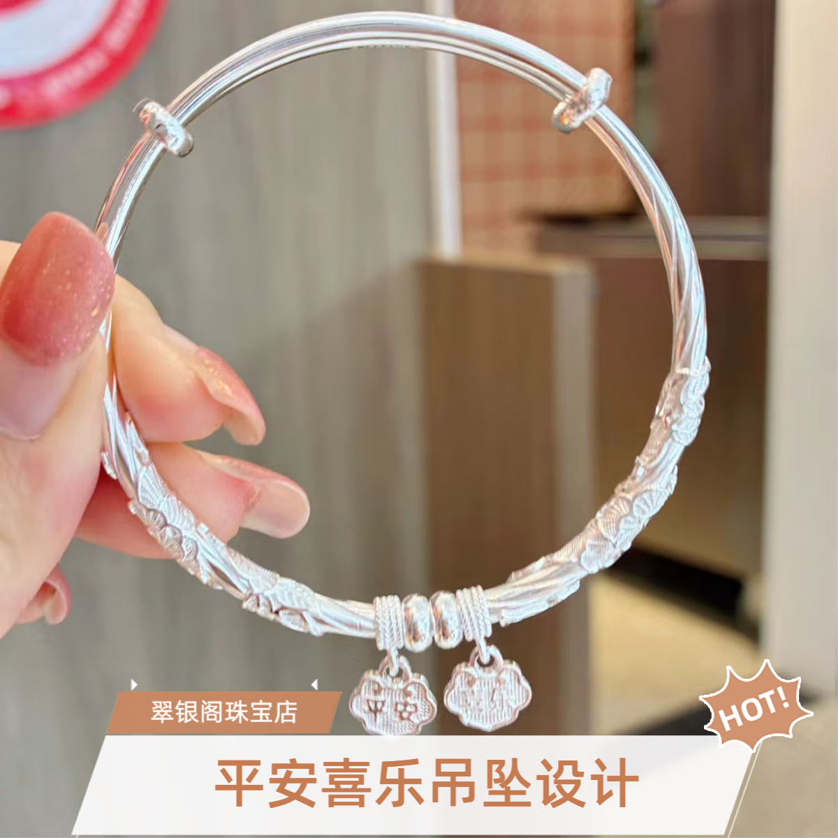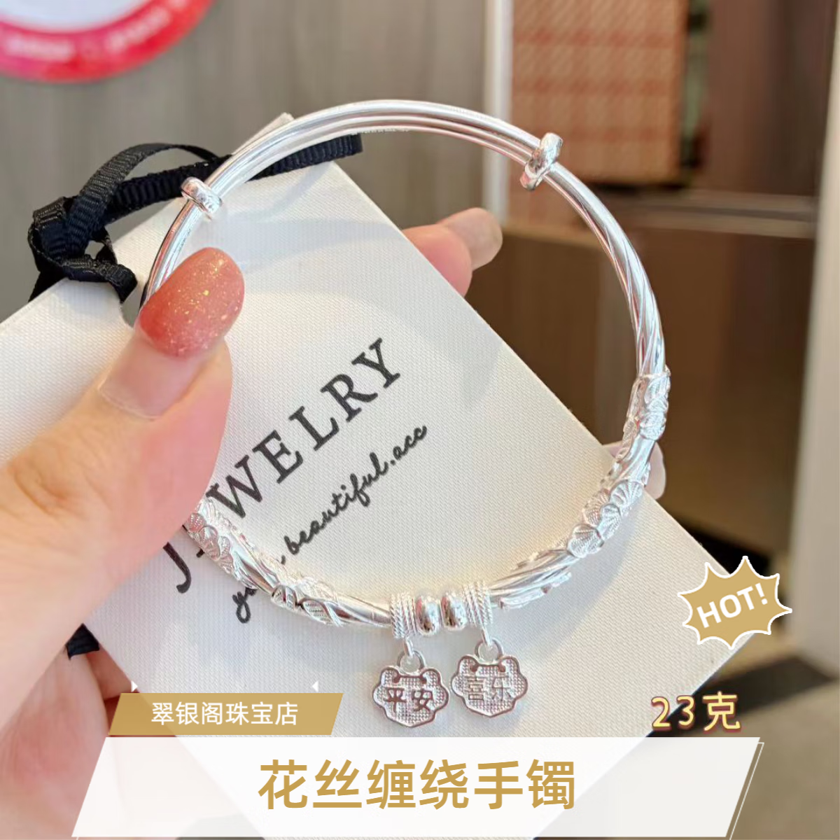 平安喜乐花丝缠绕手镯 24克足银999.9 假一赔十担保