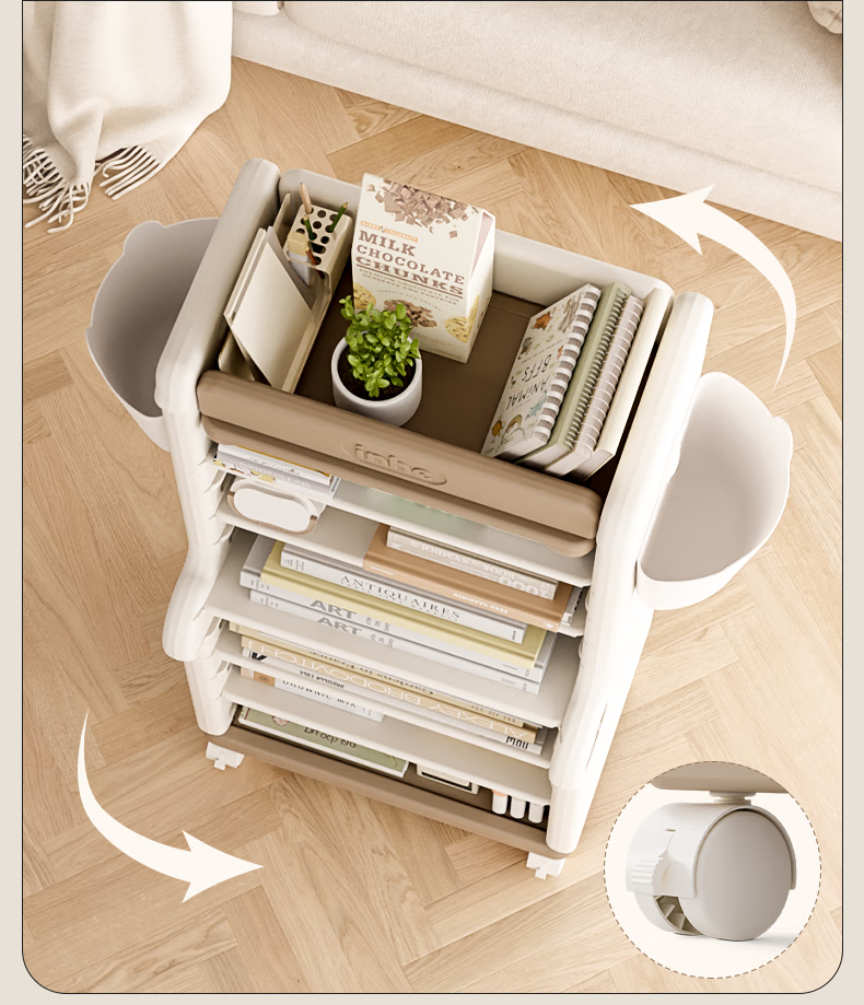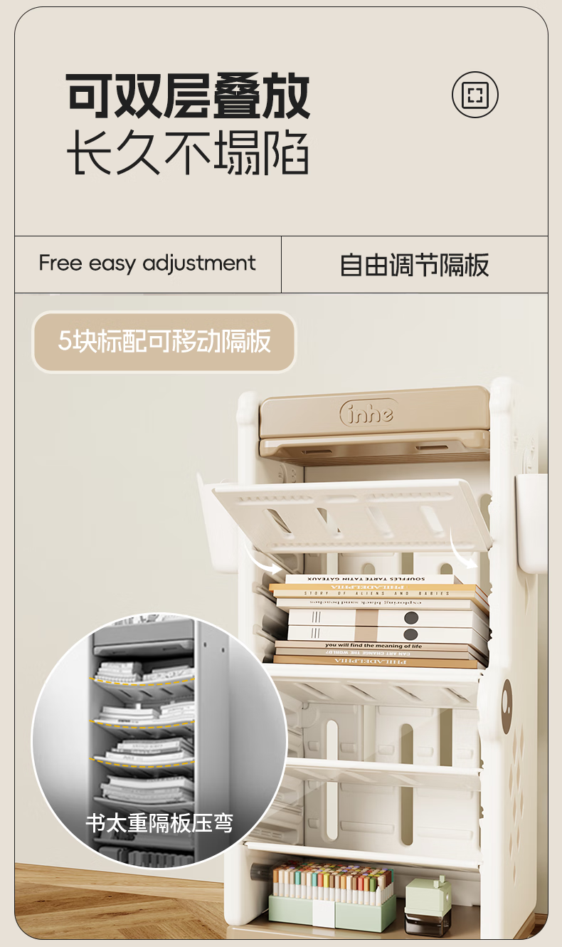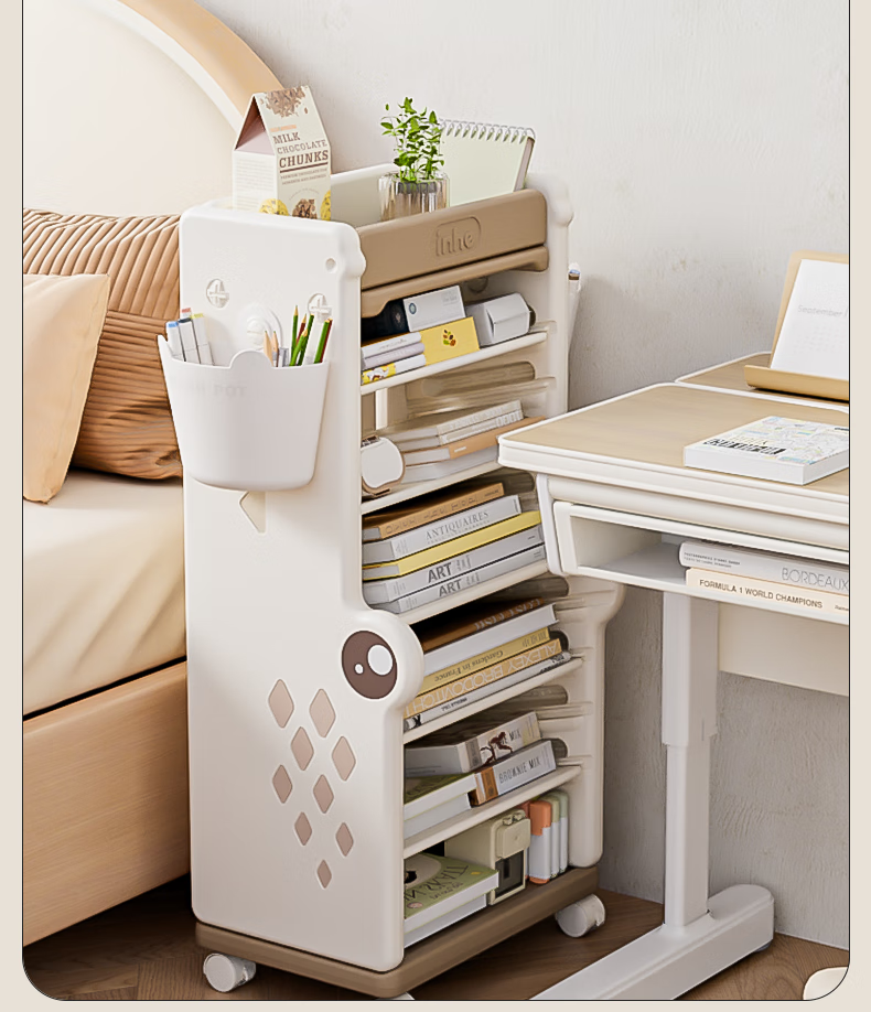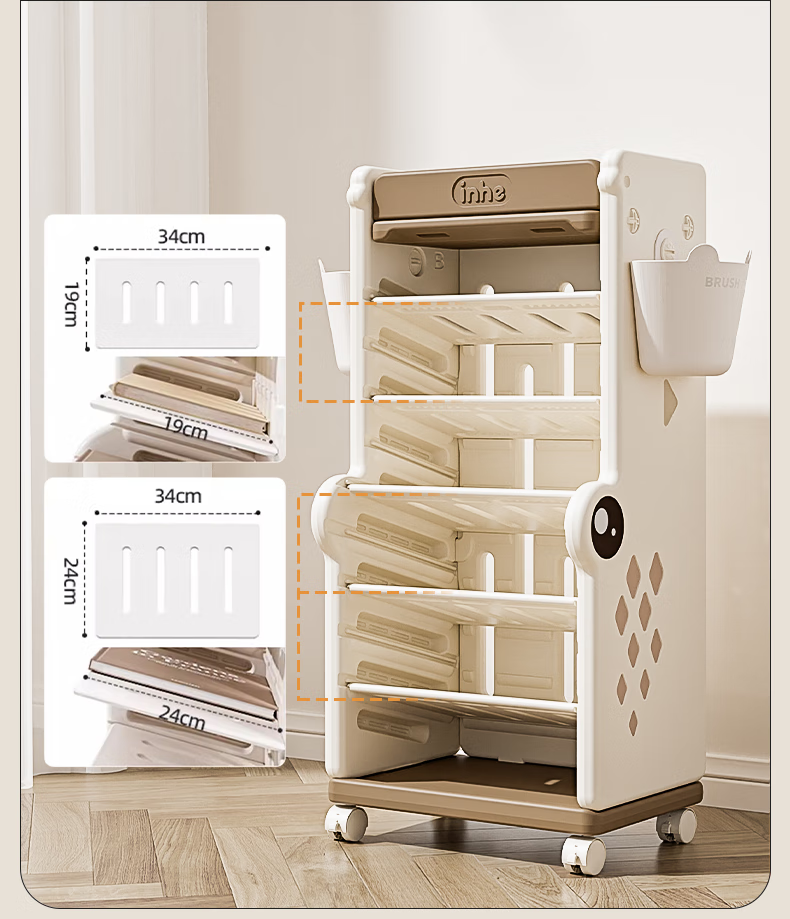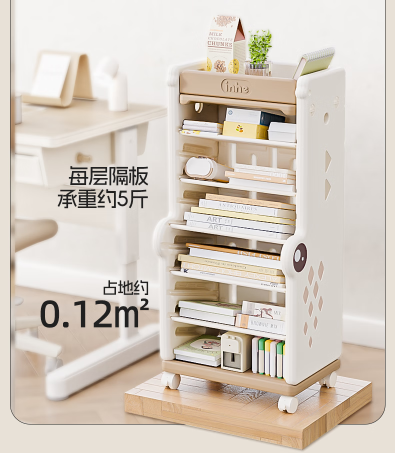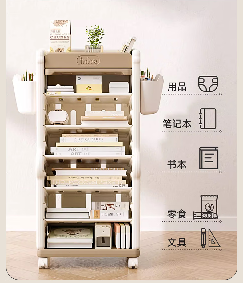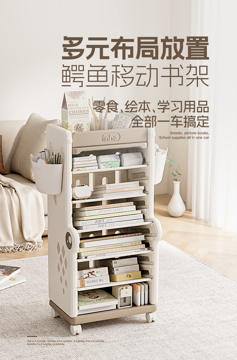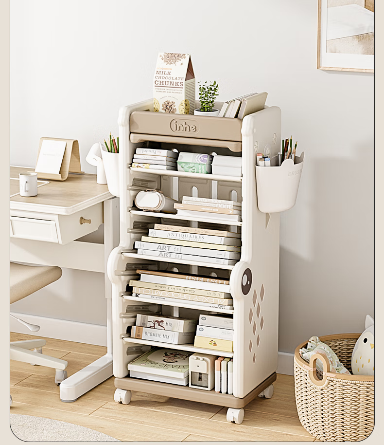 英禾书架桌面绘本架子侧边可移动收纳架家用落地收纳整理置物报刊杂志 【收纳空间DIY】秋杏棕 【隔板自由调节】