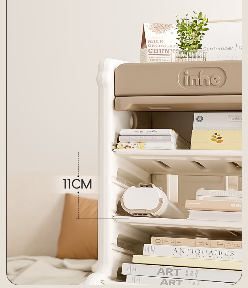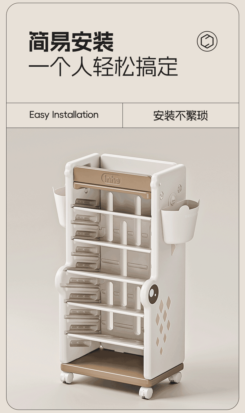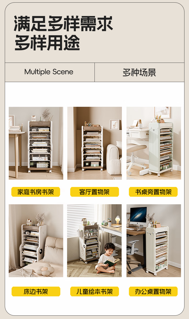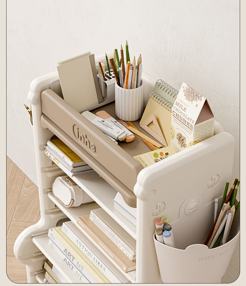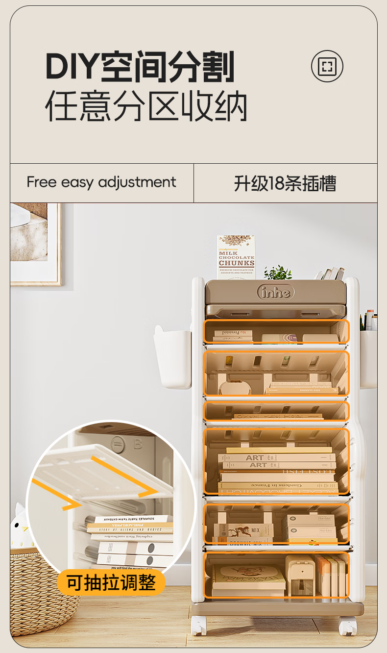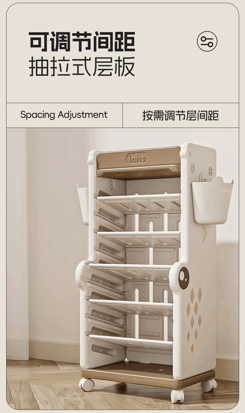 英禾书架桌面绘本架子侧边可移动收纳架家用落地收纳整理置物报刊杂志 【收纳空间DIY】秋杏棕 【隔板自由调节】