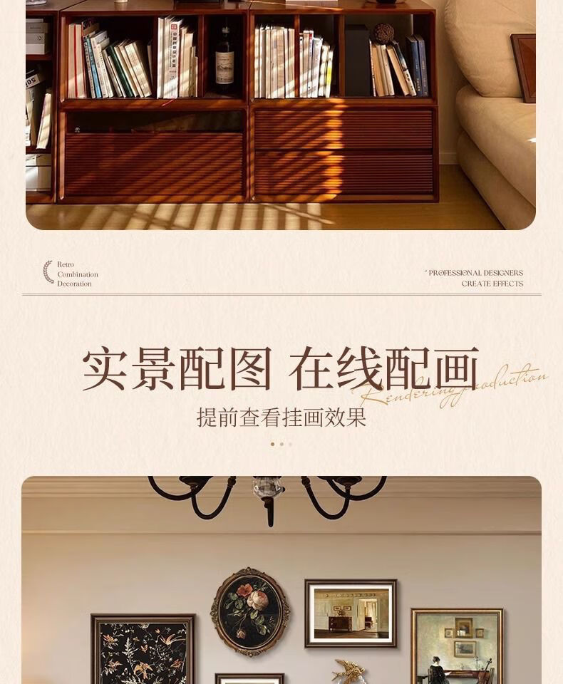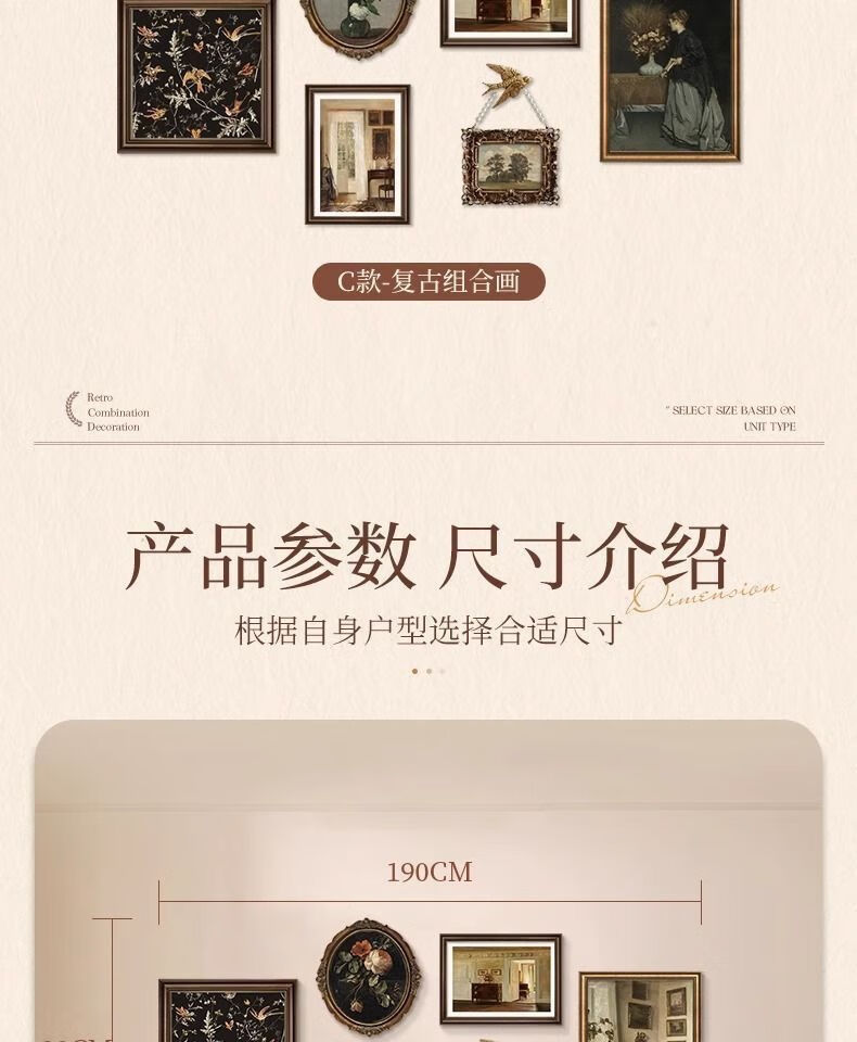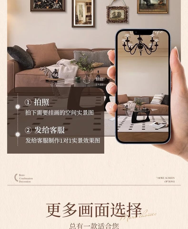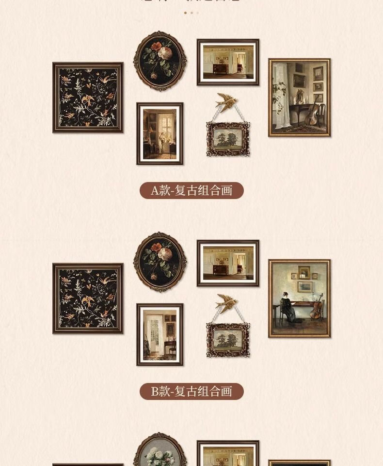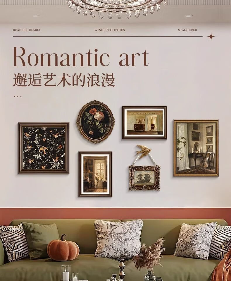 OYKTN法式挂画美式复古装饰画客厅沙发背景墙中古小众艺术餐厅组合画 T款复古组合画 小组合适合2-2.6米内沙发