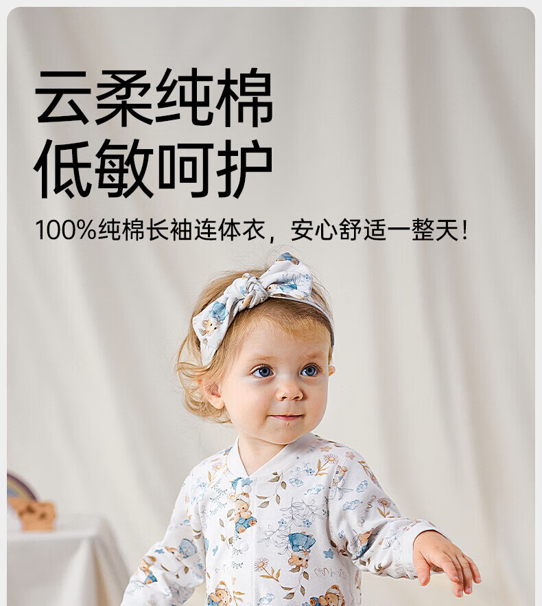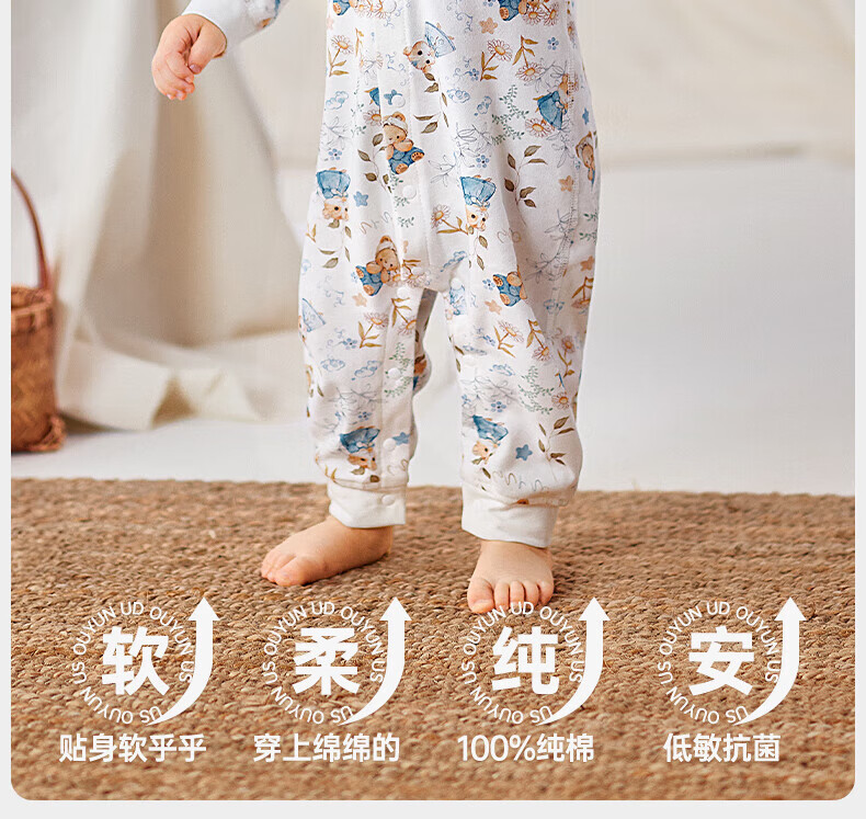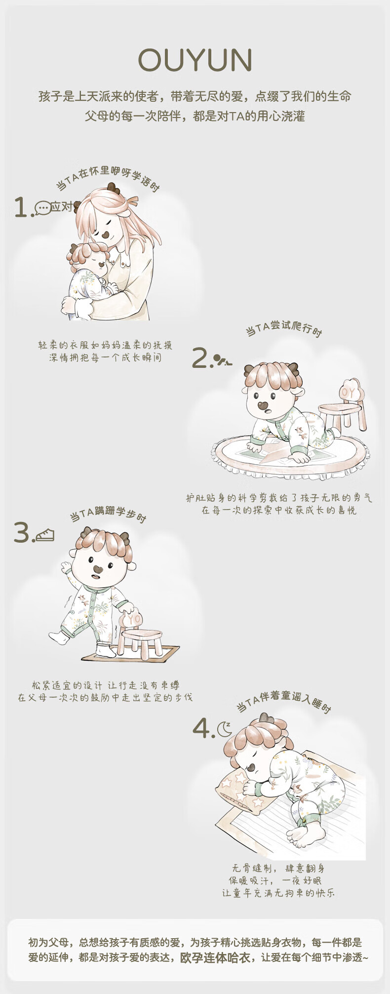 欧孕(OUYUN)婴儿连体衣秋季男女宝宝衣服纯棉长袖四季哈衣爬爬服居家睡衣 仓鼠团子【新疆棉-10A抗菌】 73cm 【推荐身高68-74cm】