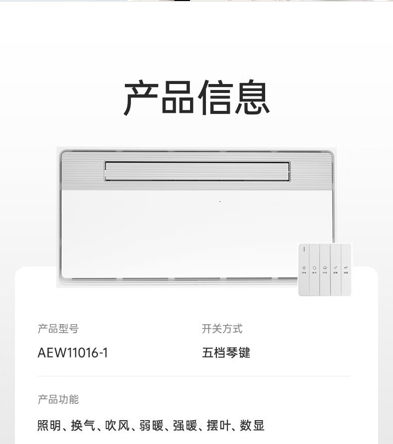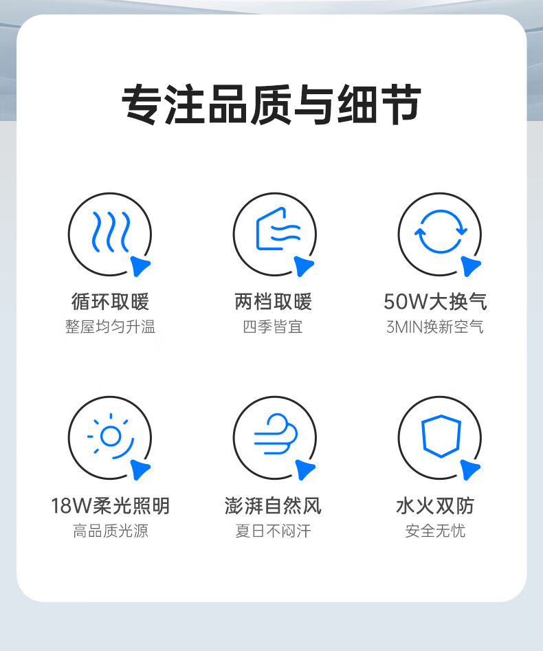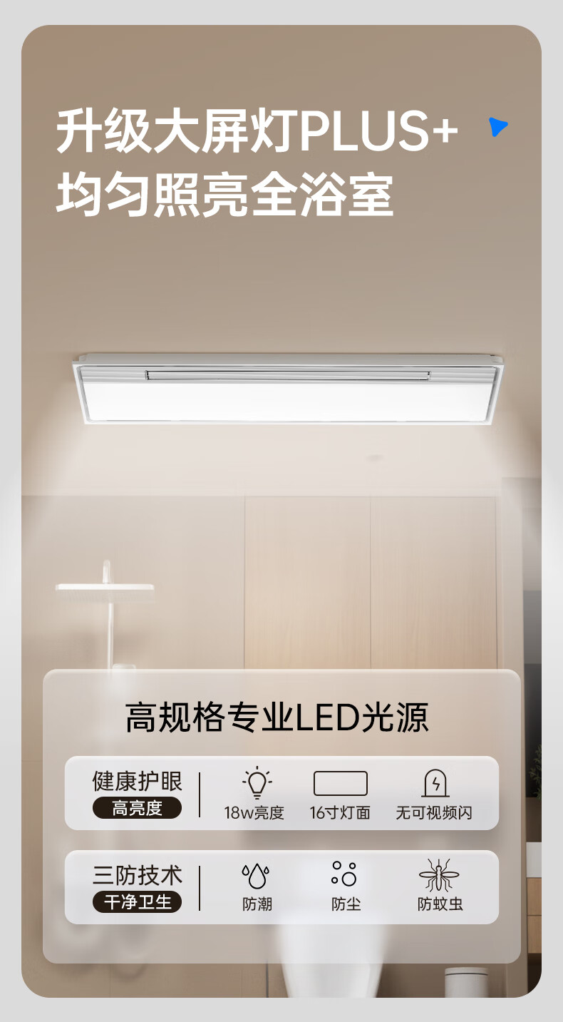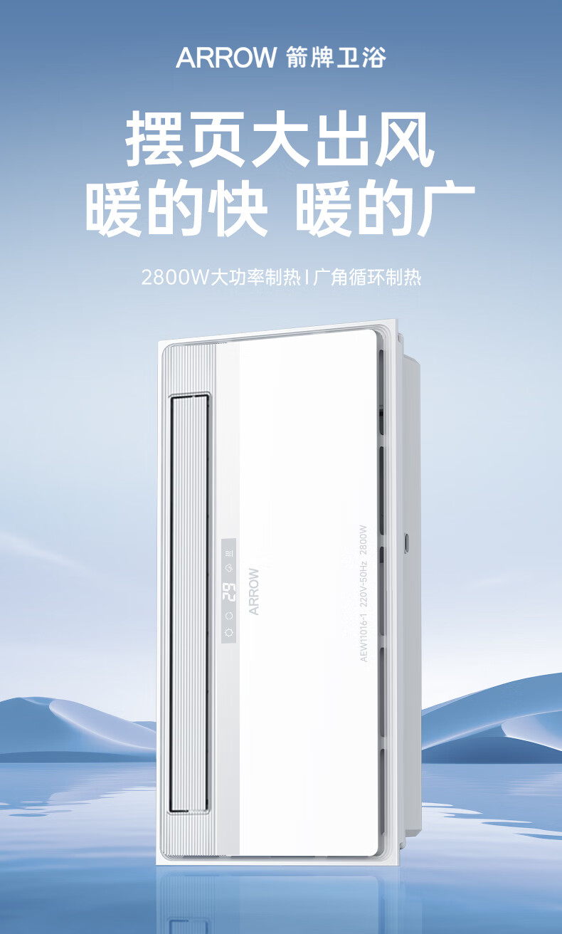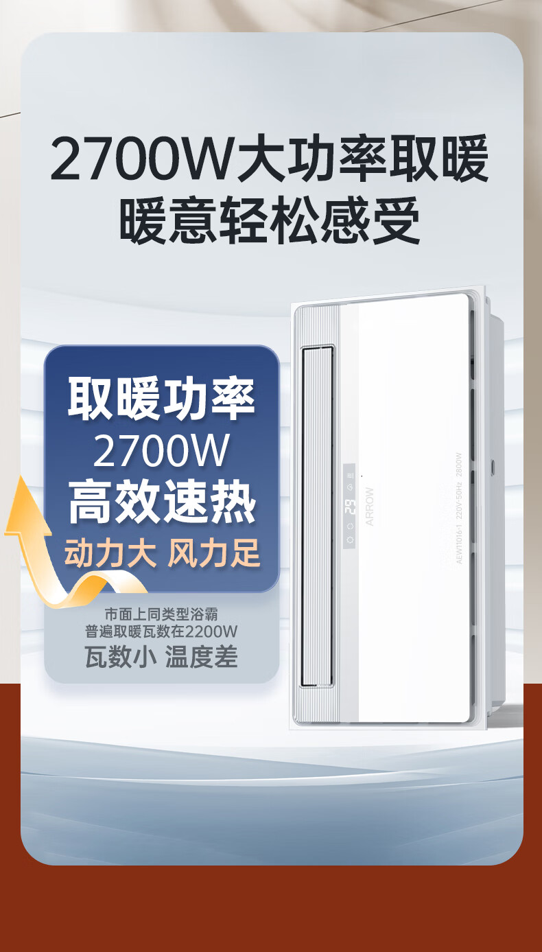 箭牌(ARROW)浴霸暖风照明排气一体300*600超薄速暖多功能浴室取暖器集成吊顶