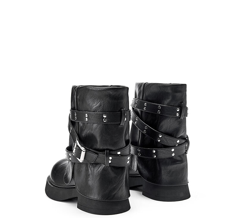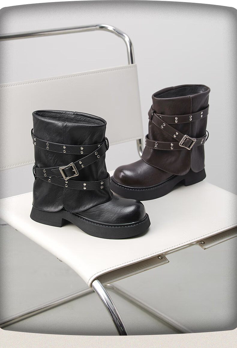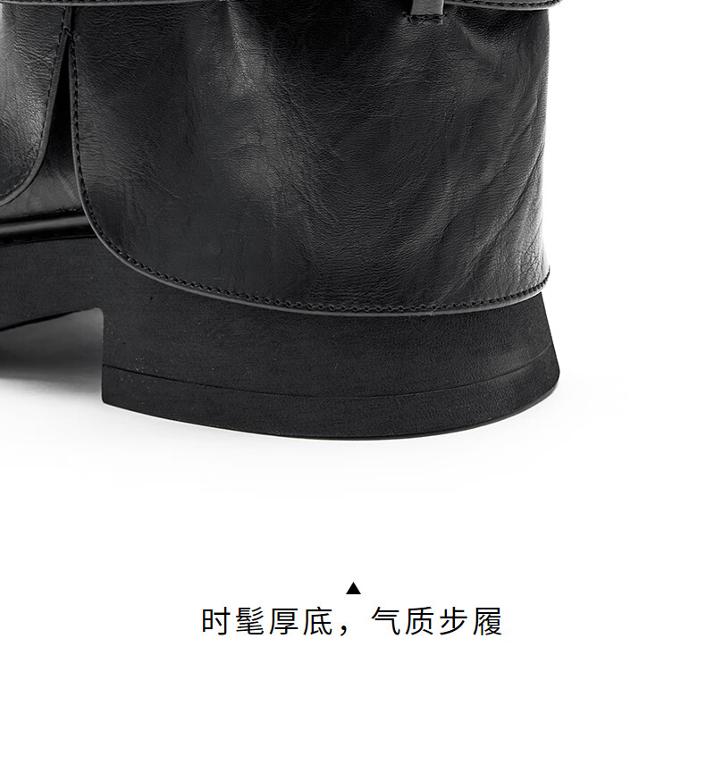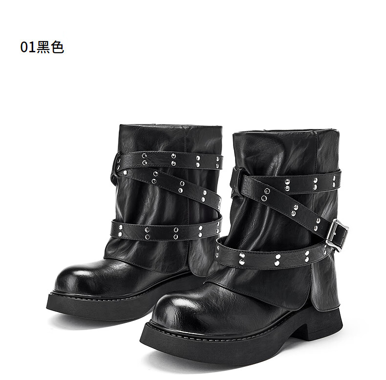 热风西部骑士靴女2025年冬季新款短筒裤管靴百搭黑色时装靴子女鞋 01黑色 35