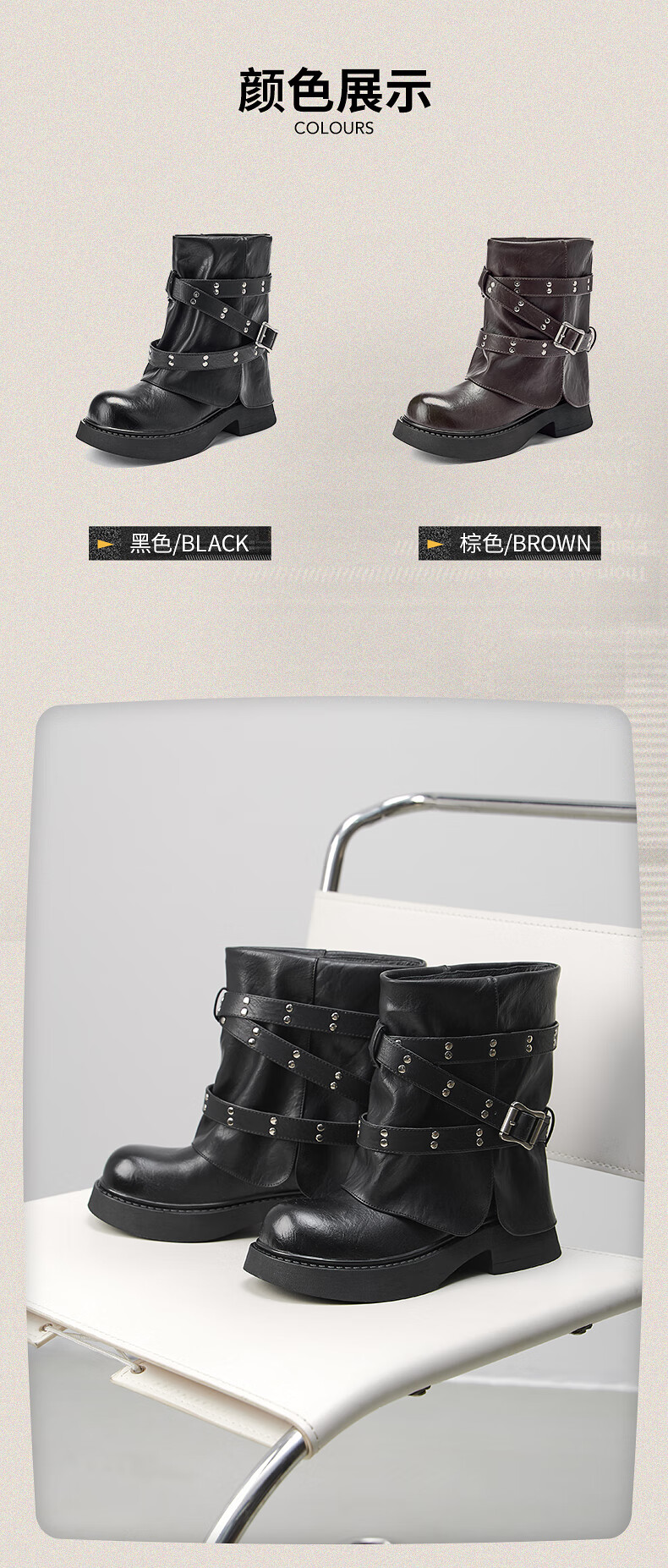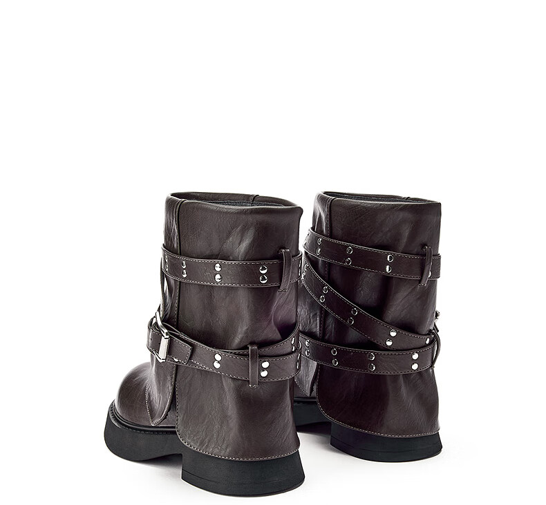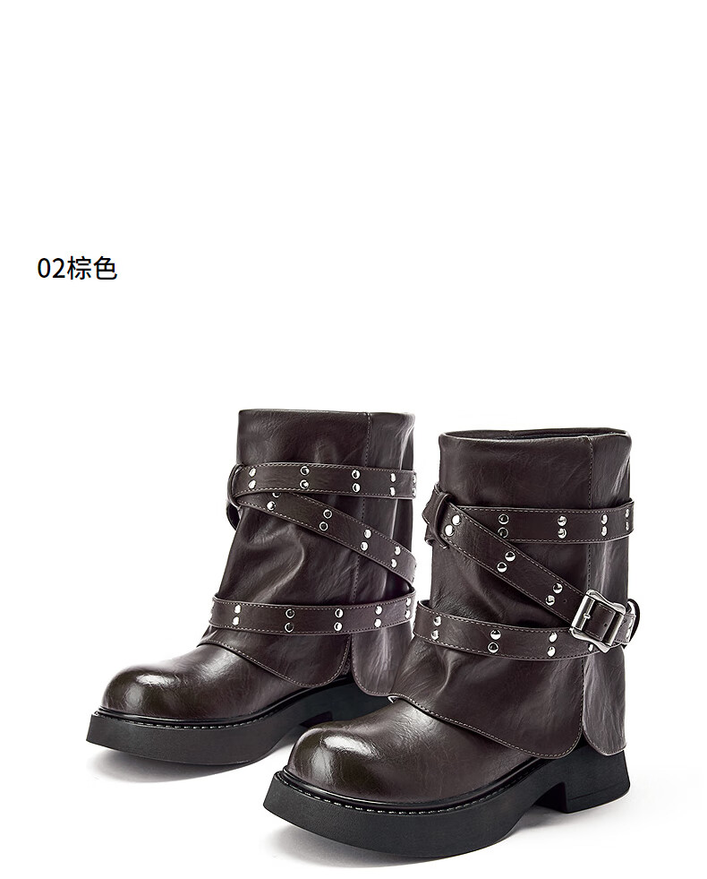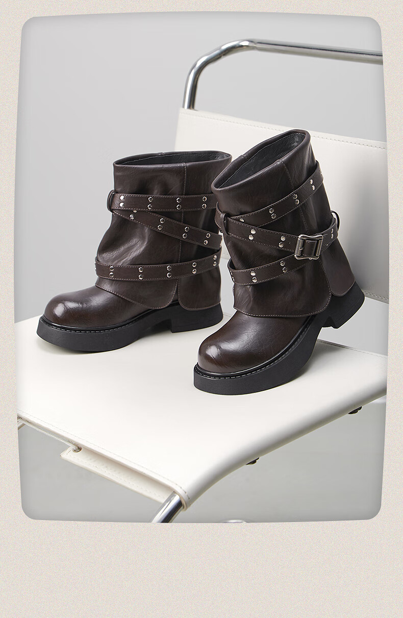 热风西部骑士靴女2025年冬季新款短筒裤管靴百搭黑色时装靴子女鞋 01黑色 35