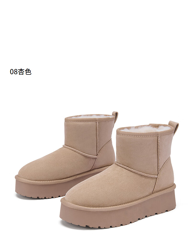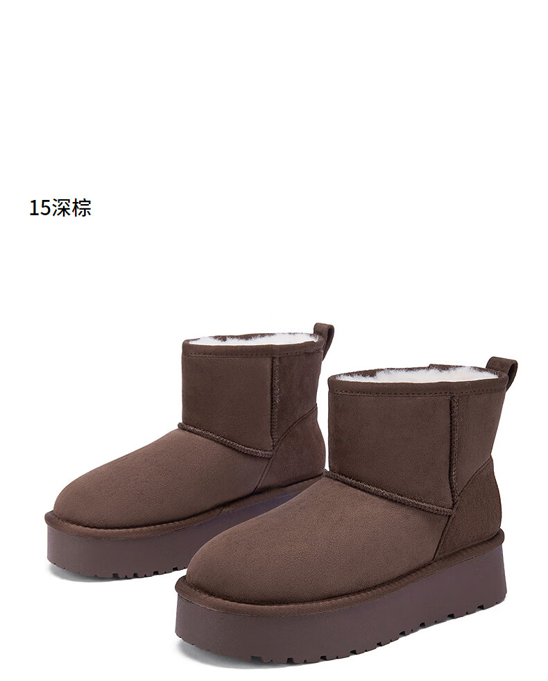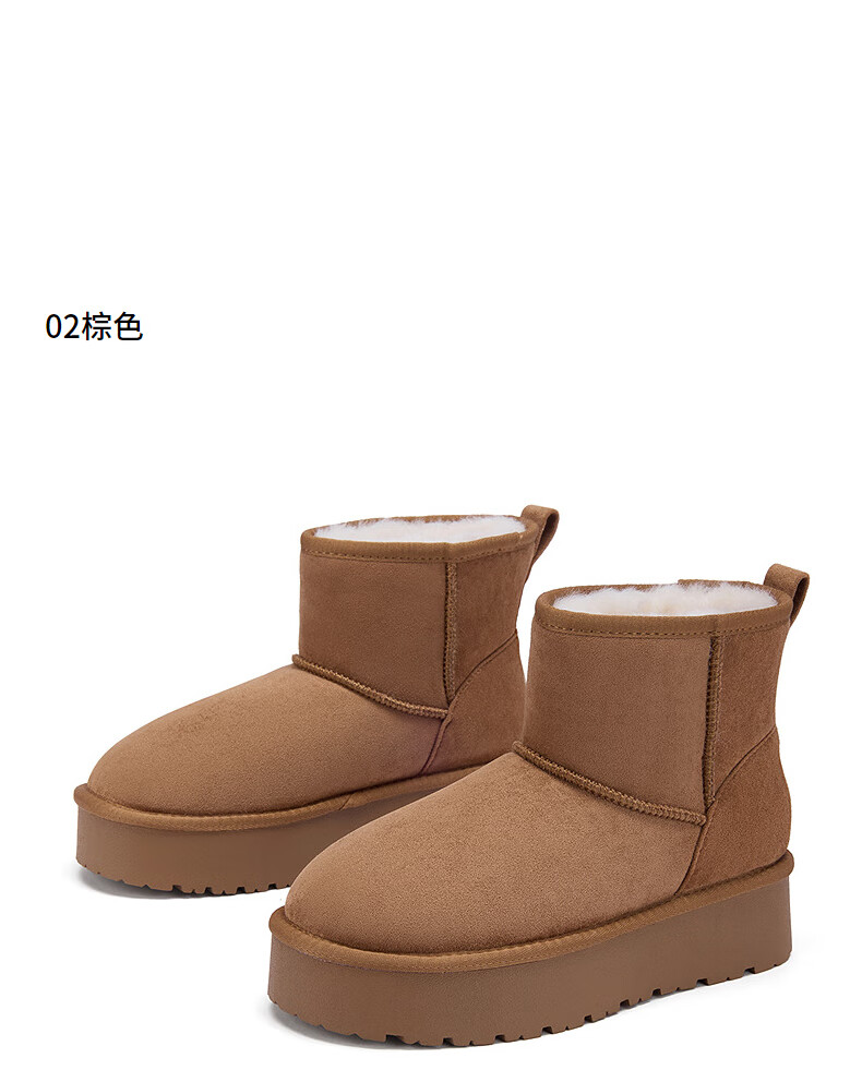 热风(Hotwind)加绒雪地靴女鞋2025年冬季新款棕色复古短筒靴户外保暖棉鞋 02棕色 38