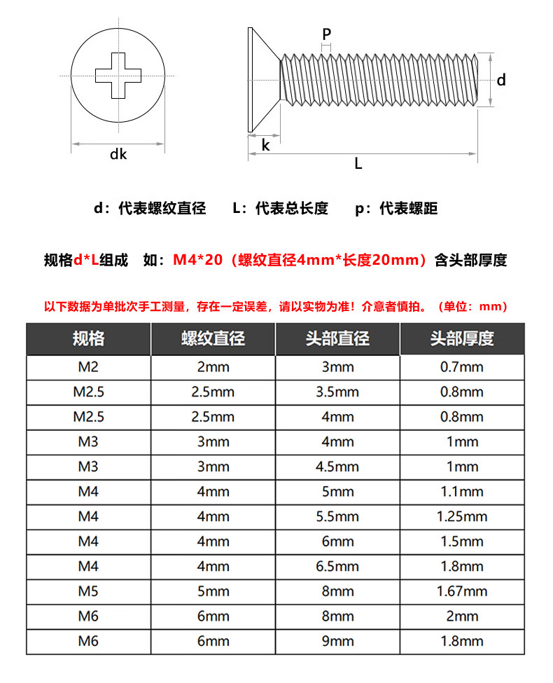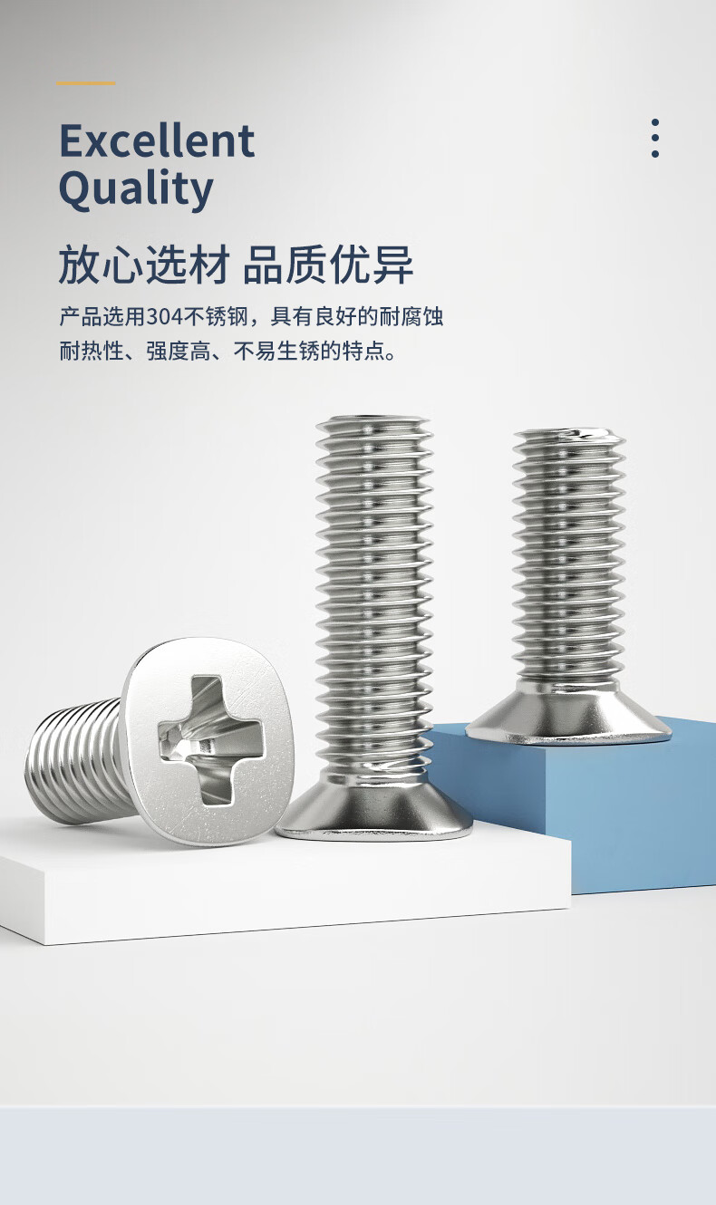 固万基304不锈钢十字小沉头螺丝平头机丝螺栓GB819小头径螺钉大全M2-M6 M4x6 头6.5[200粒]