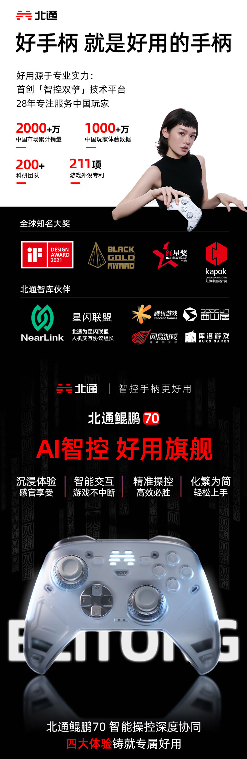北通鲲鹏70AI智控旗舰精英游戏手柄xbox自适应扳机switch2电容摇杆steam电脑PC手机蓝牙NS原神 鸣潮
