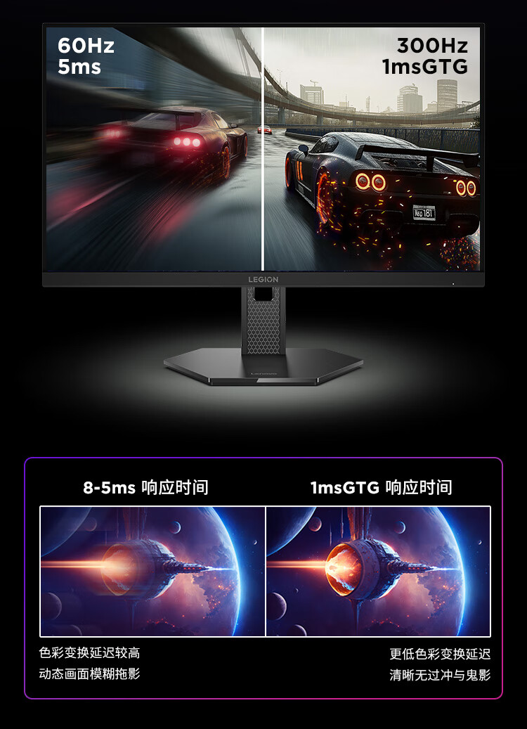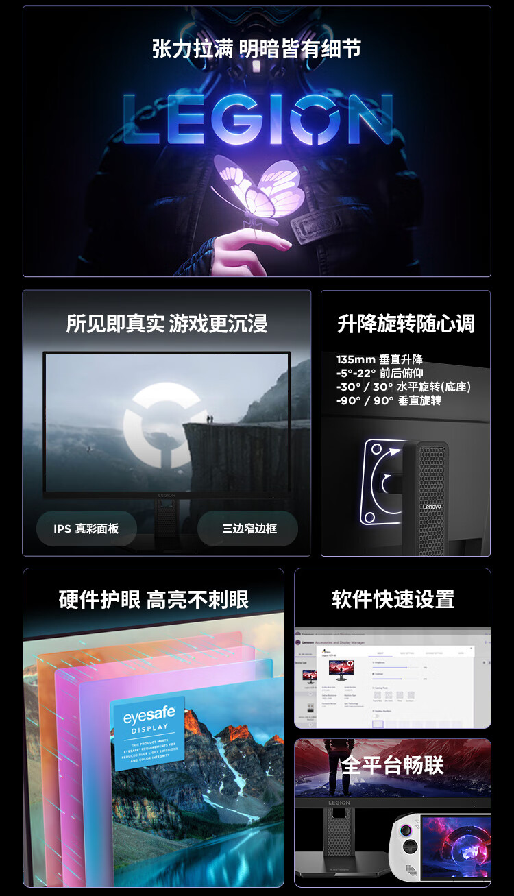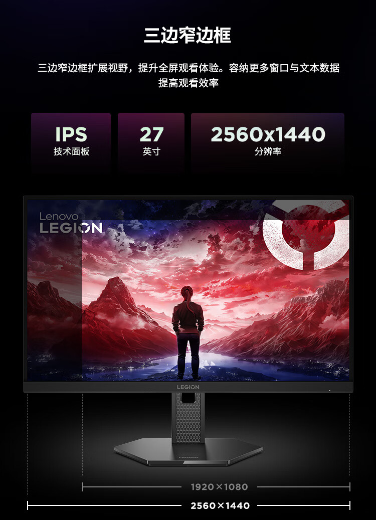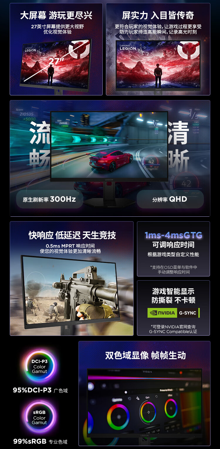 联想(Lenovo)拯救者27英寸2K超清 原生300Hz超高刷 低蓝光护眼 旋转升降 电竞显示器LEGION 27Q-11
