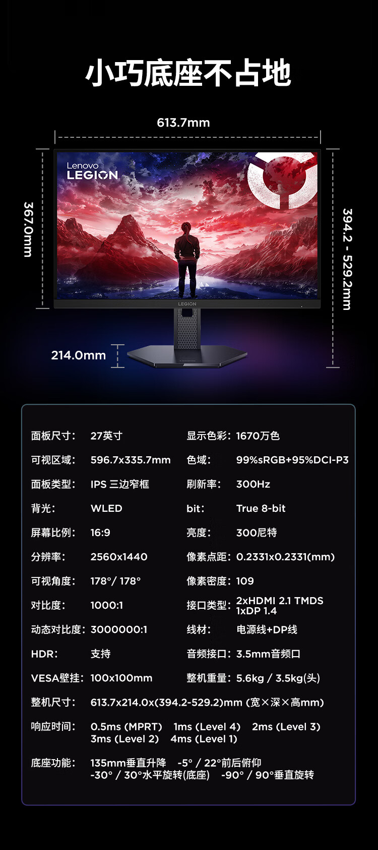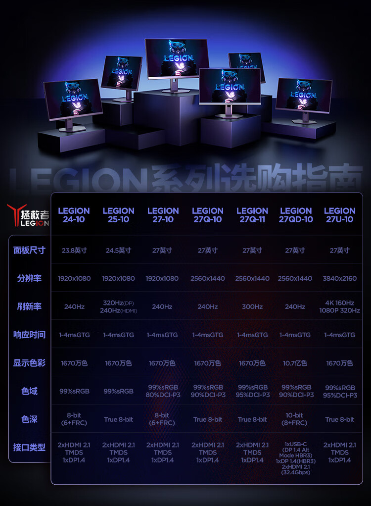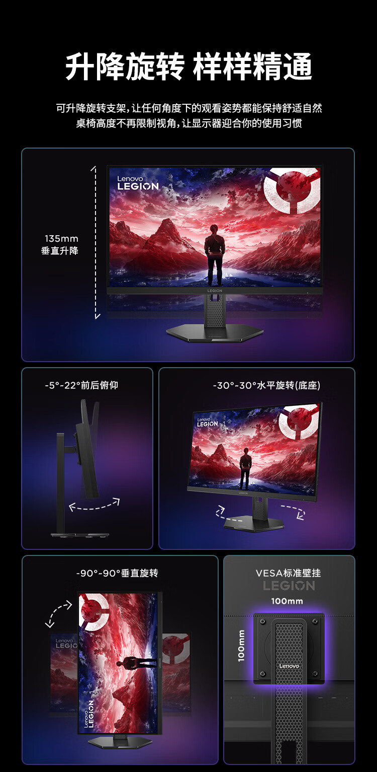 联想(Lenovo)拯救者27英寸2K超清 原生300Hz超高刷 低蓝光护眼 旋转升降 电竞显示器LEGION 27Q-11