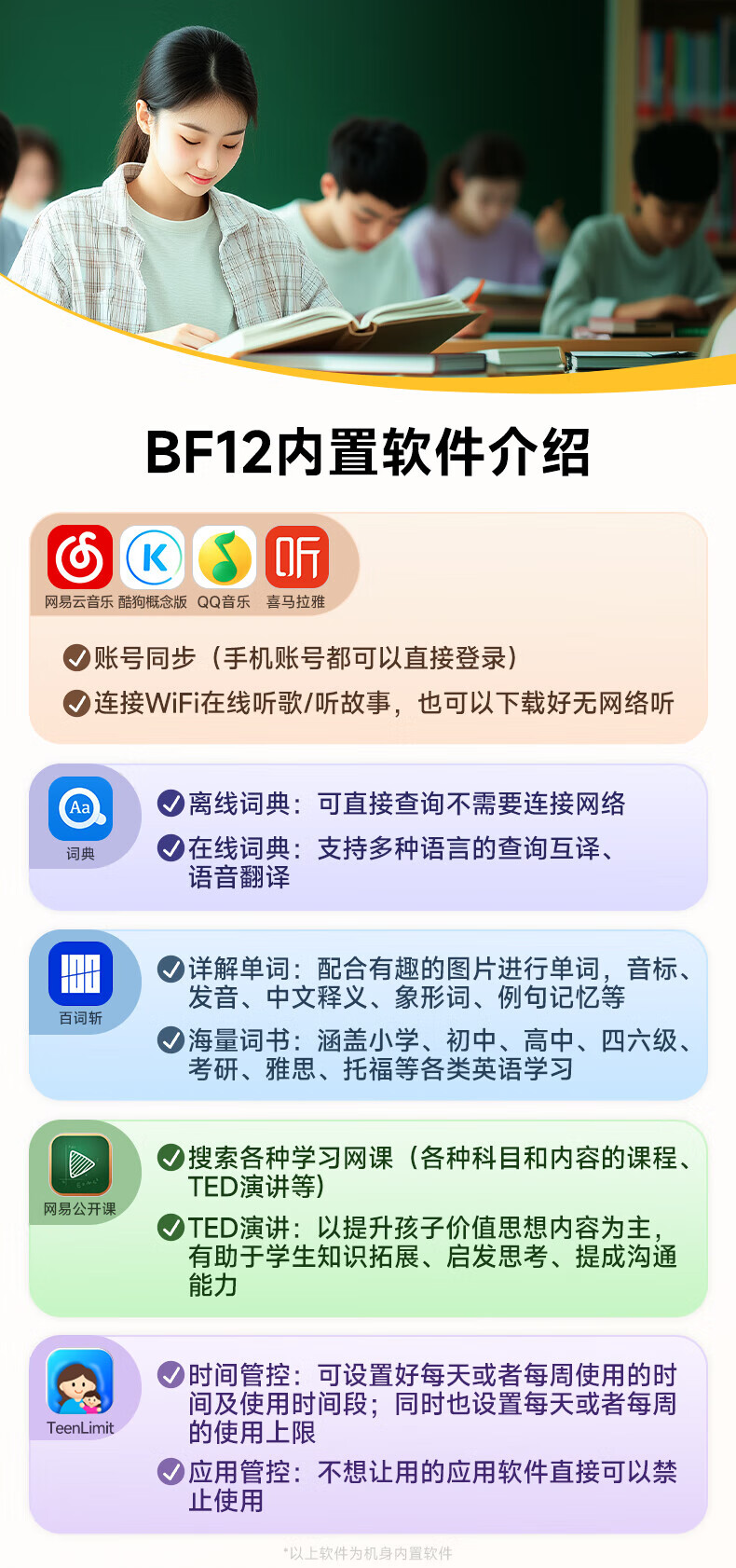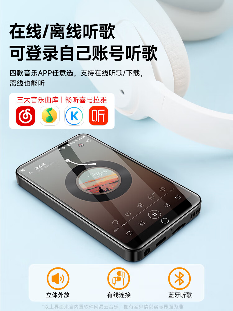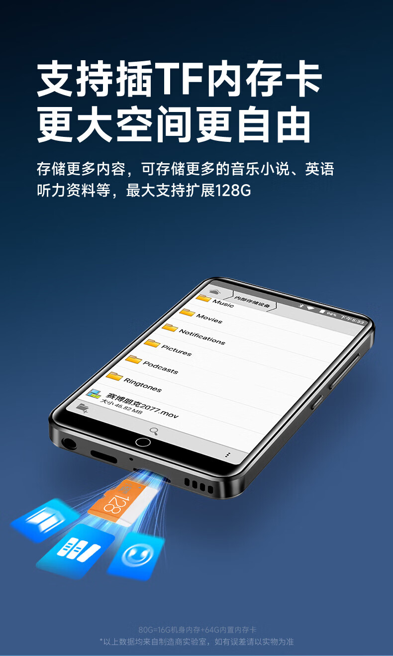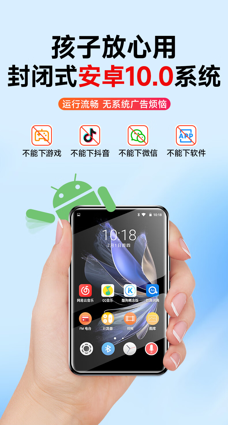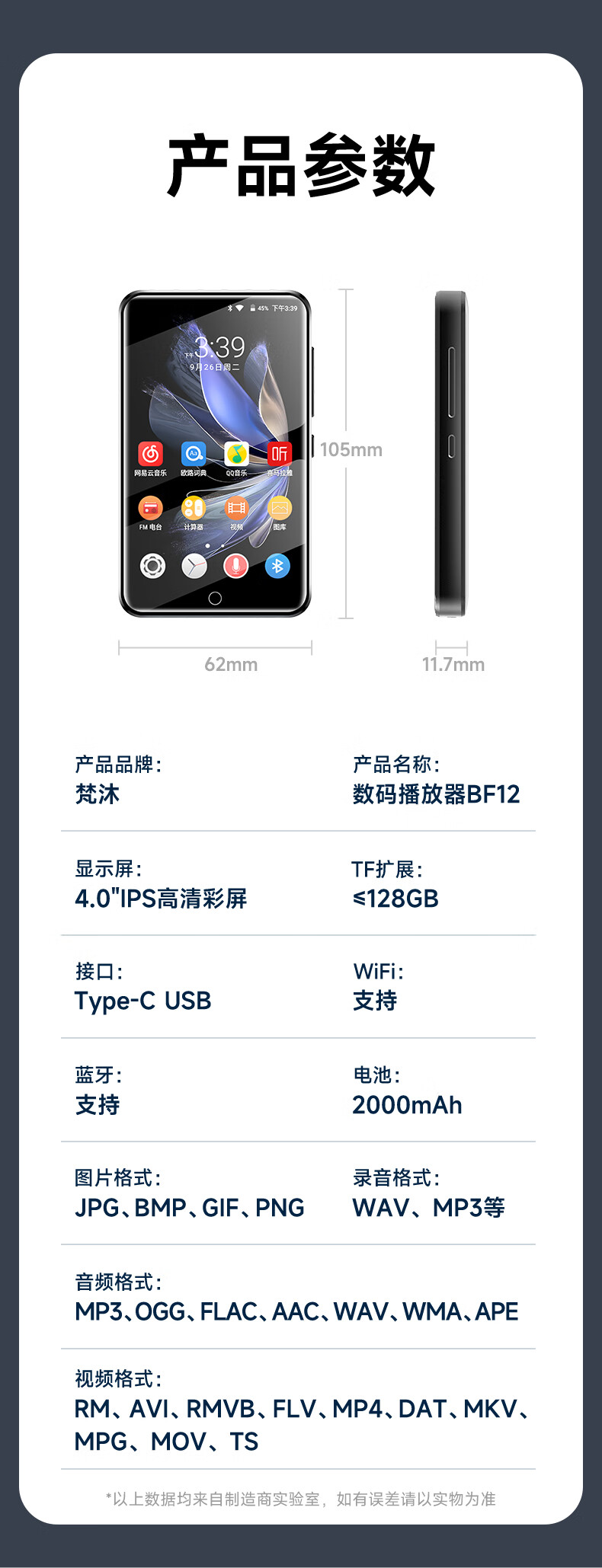 梵沐BF12 mp3/mp4无损音乐播放器 智能WIFI联网封闭系统 mp5蓝牙学生专用随身听 听英语 80G大内存