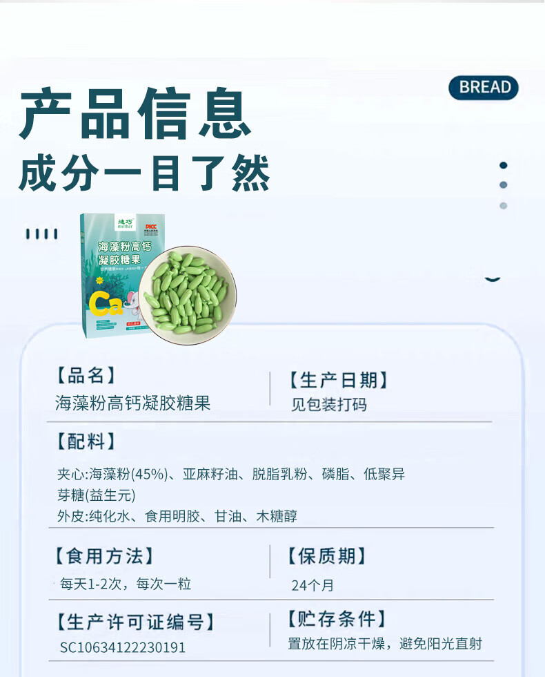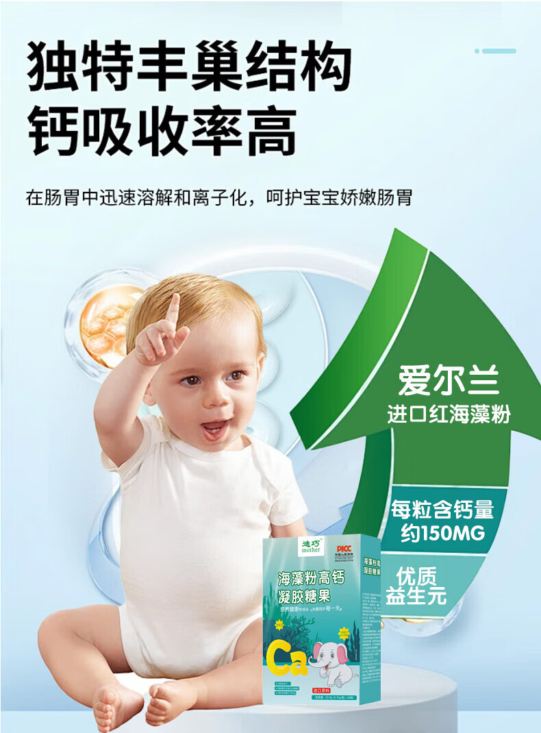 迪巧爱婴迪巧海藻钙婴幼儿0-1岁婴儿液体钙钙6-12个月液体钙婴儿补钙胶囊 90粒【三盒装】 精选爱尔兰红海藻钙