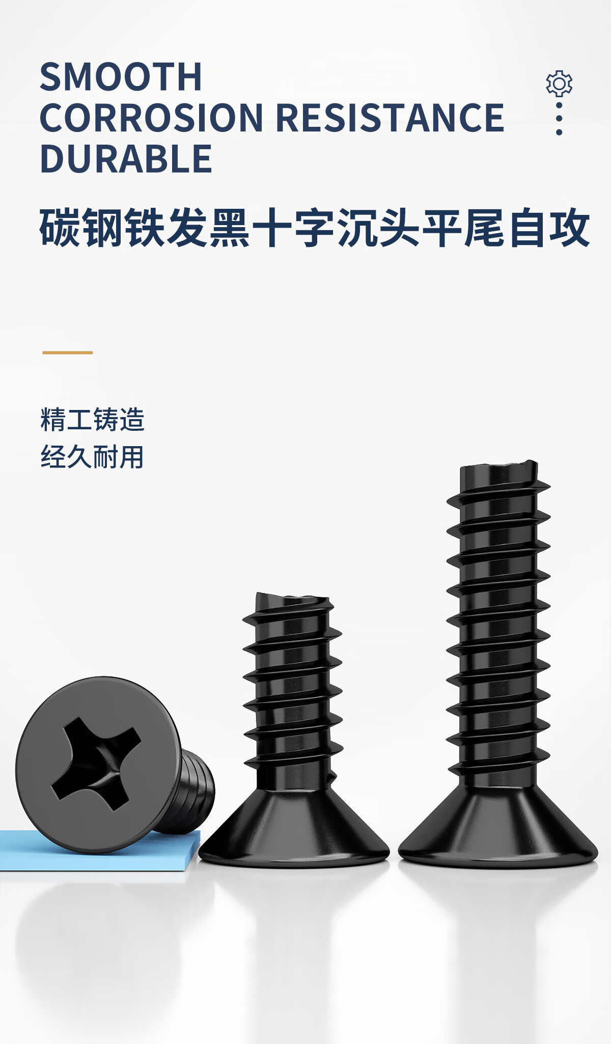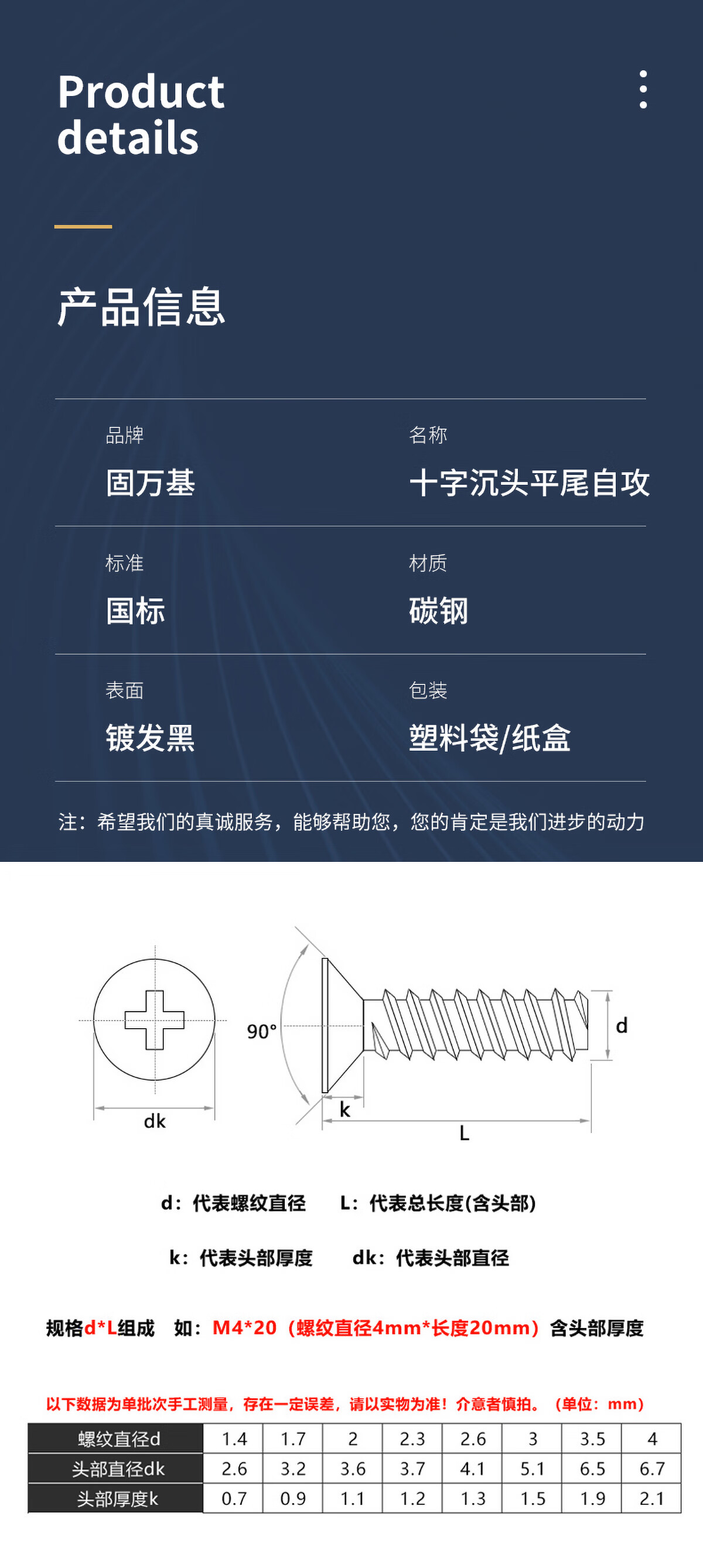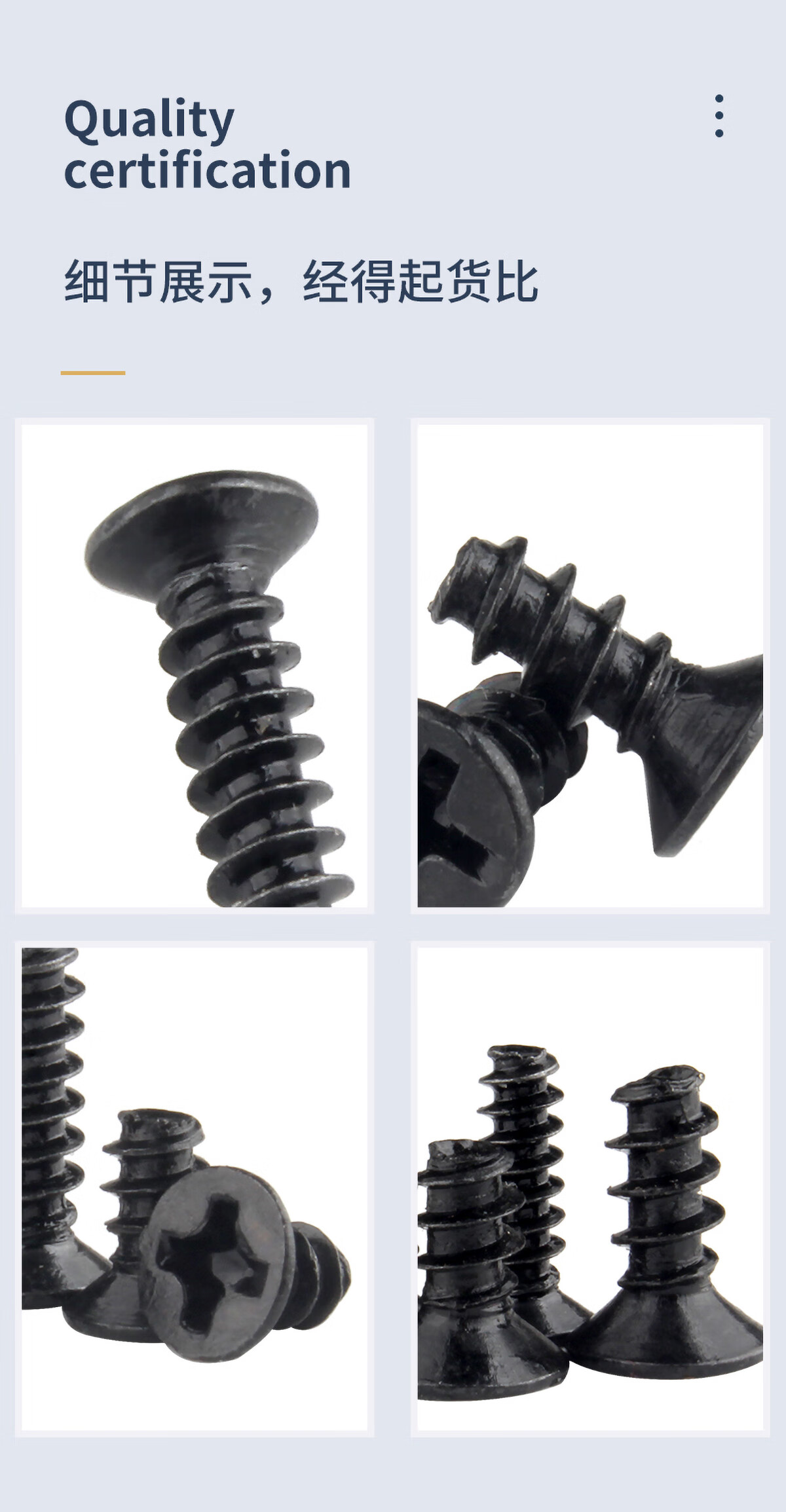 固万基(GUWANJI)铁黑十字沉头平尾自攻YB846小螺丝KB平头小螺钉M1M1.2M2-M4 M1x3[1000只]