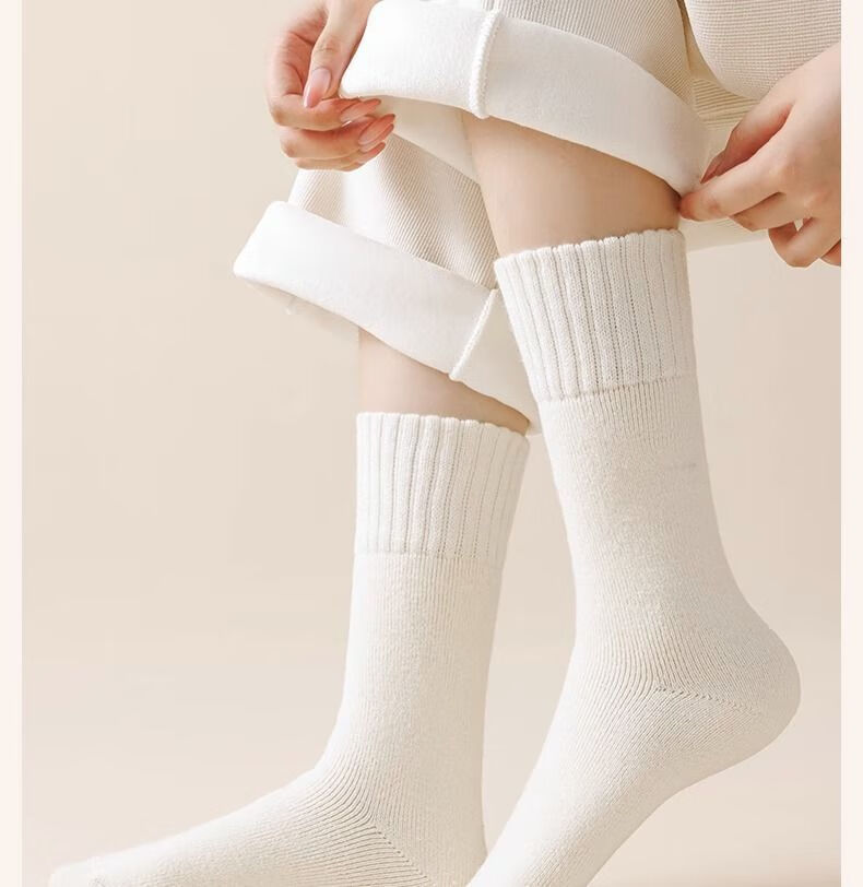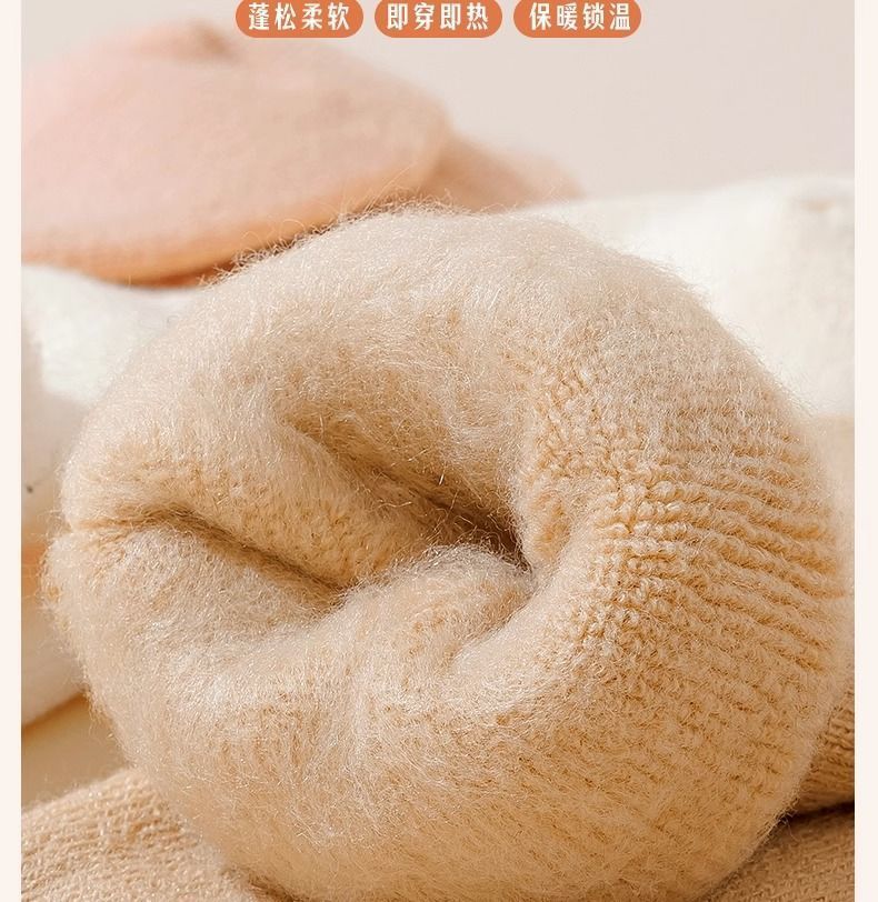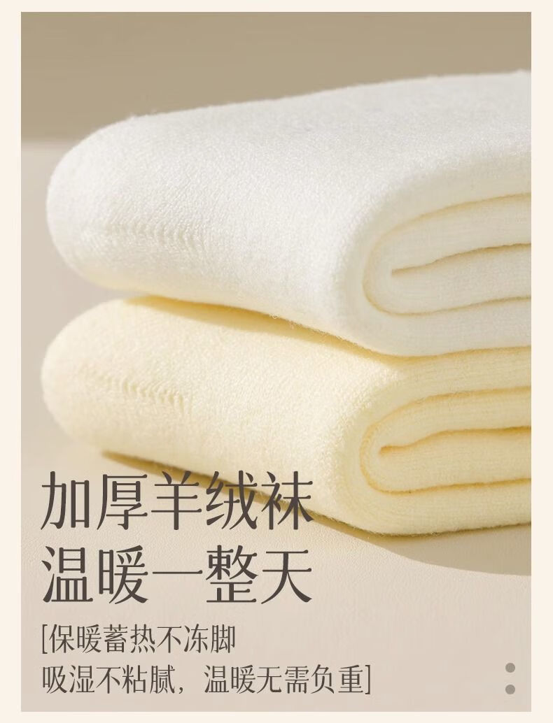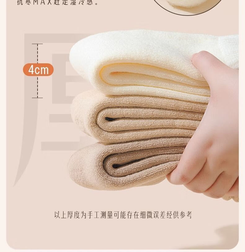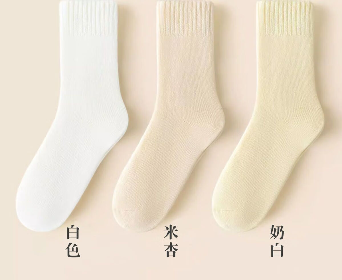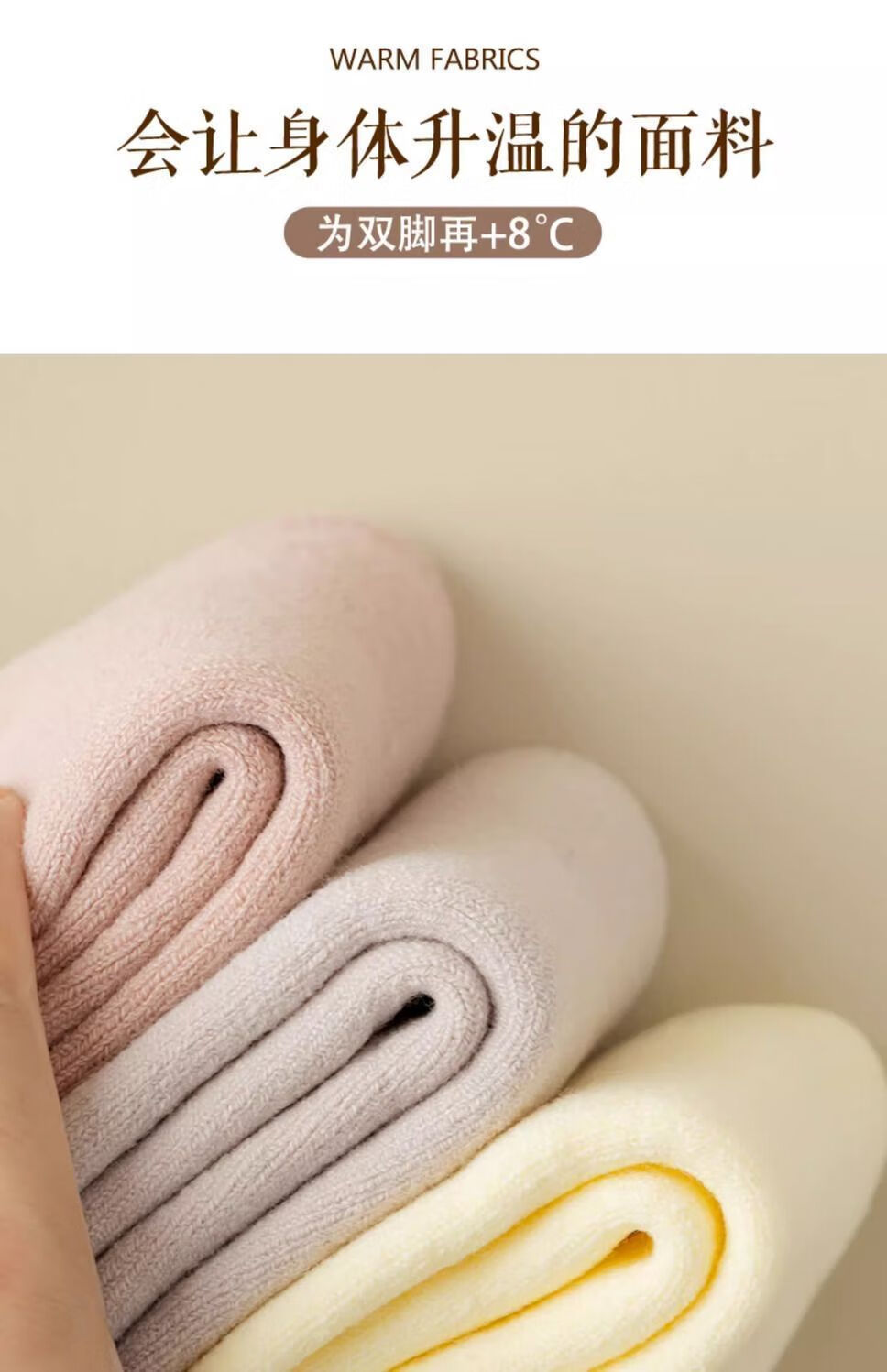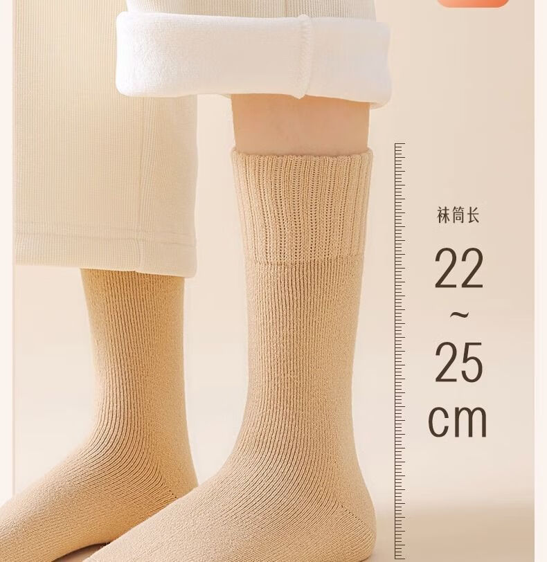 悍乐猫袜子女秋冬季中筒加绒毛巾袜加厚款保暖毛绒冬天毛圈袜月子袜 混色(5双) 黑/白/咖/燕麦/奶黄 均码