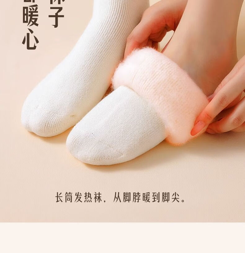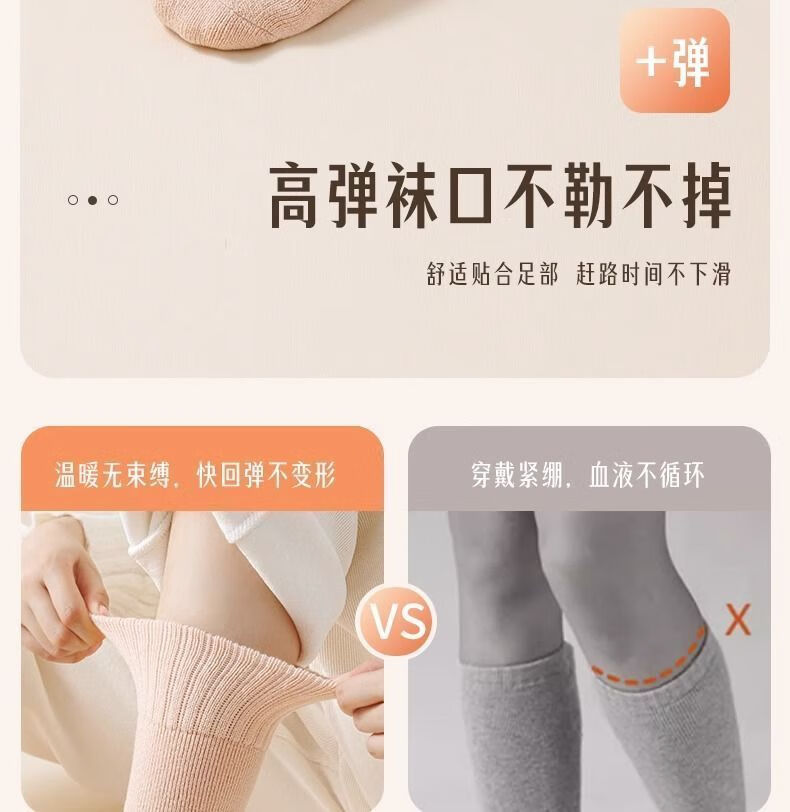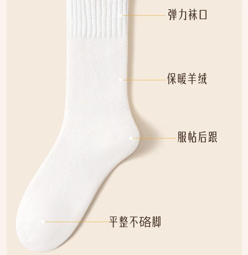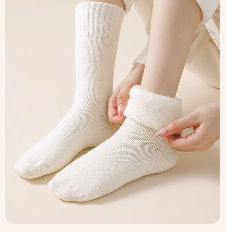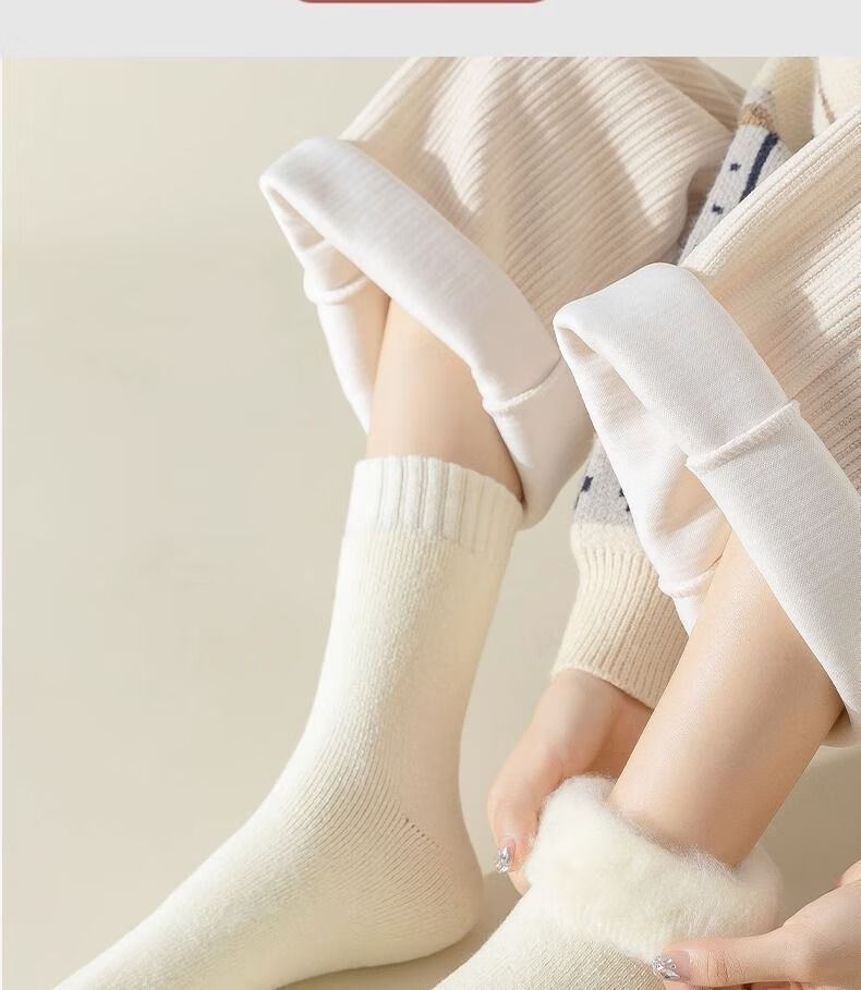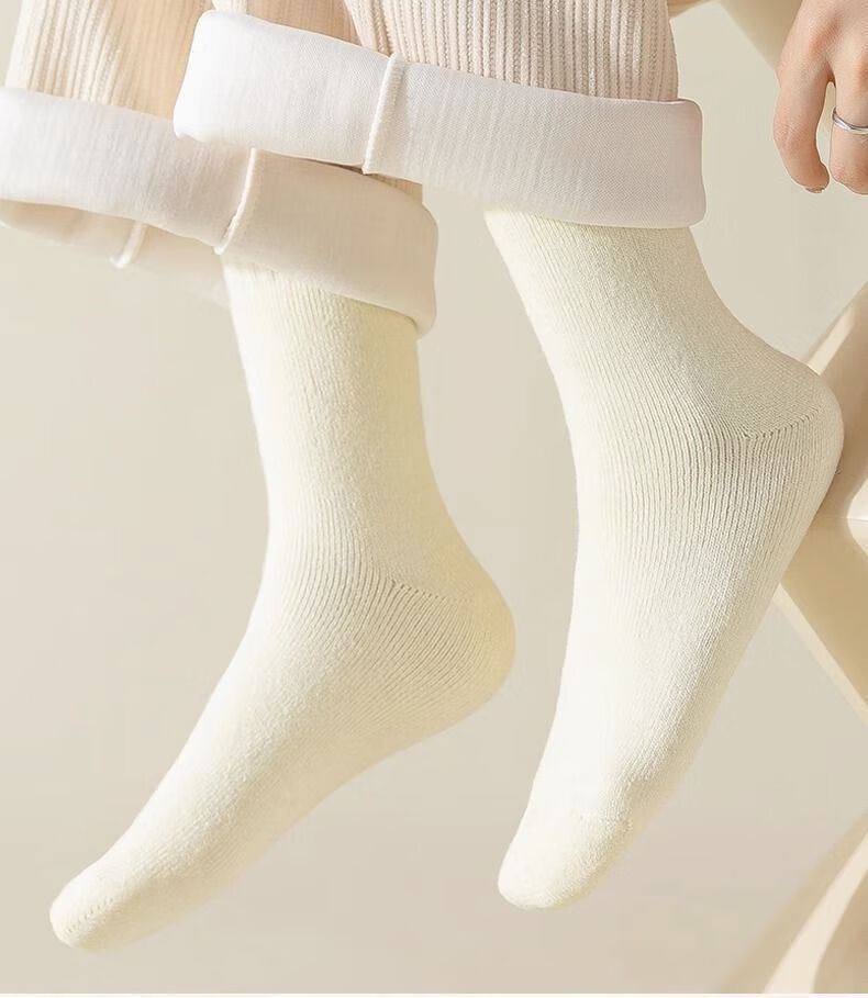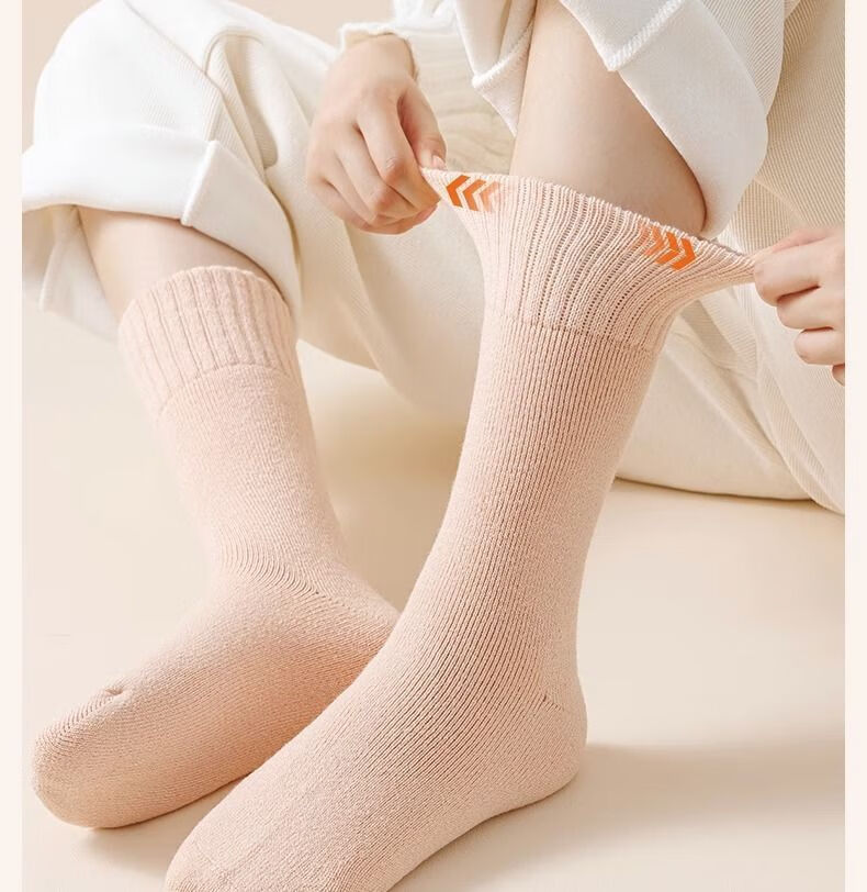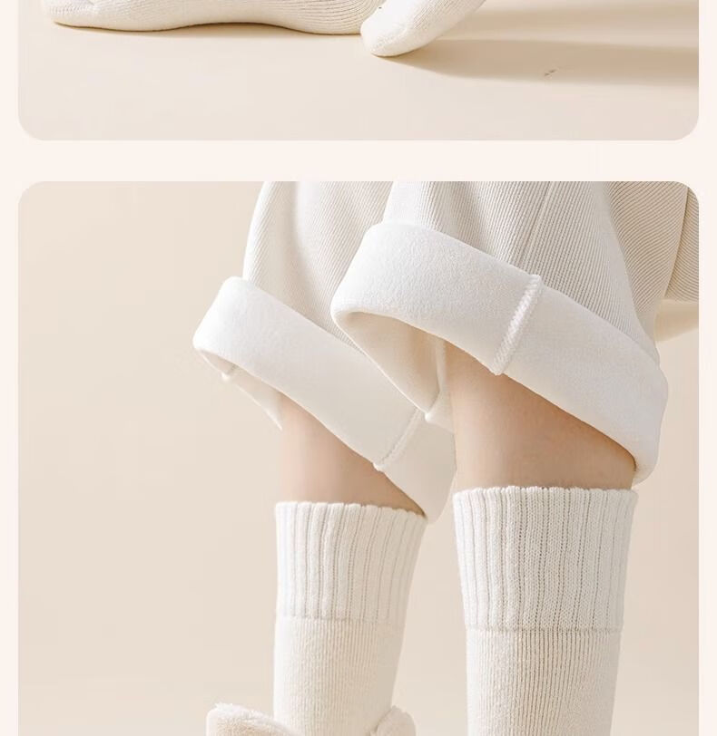 悍乐猫袜子女秋冬季中筒加绒毛巾袜加厚款保暖毛绒冬天毛圈袜月子袜 混色(5双) 黑/白/咖/燕麦/奶黄 均码