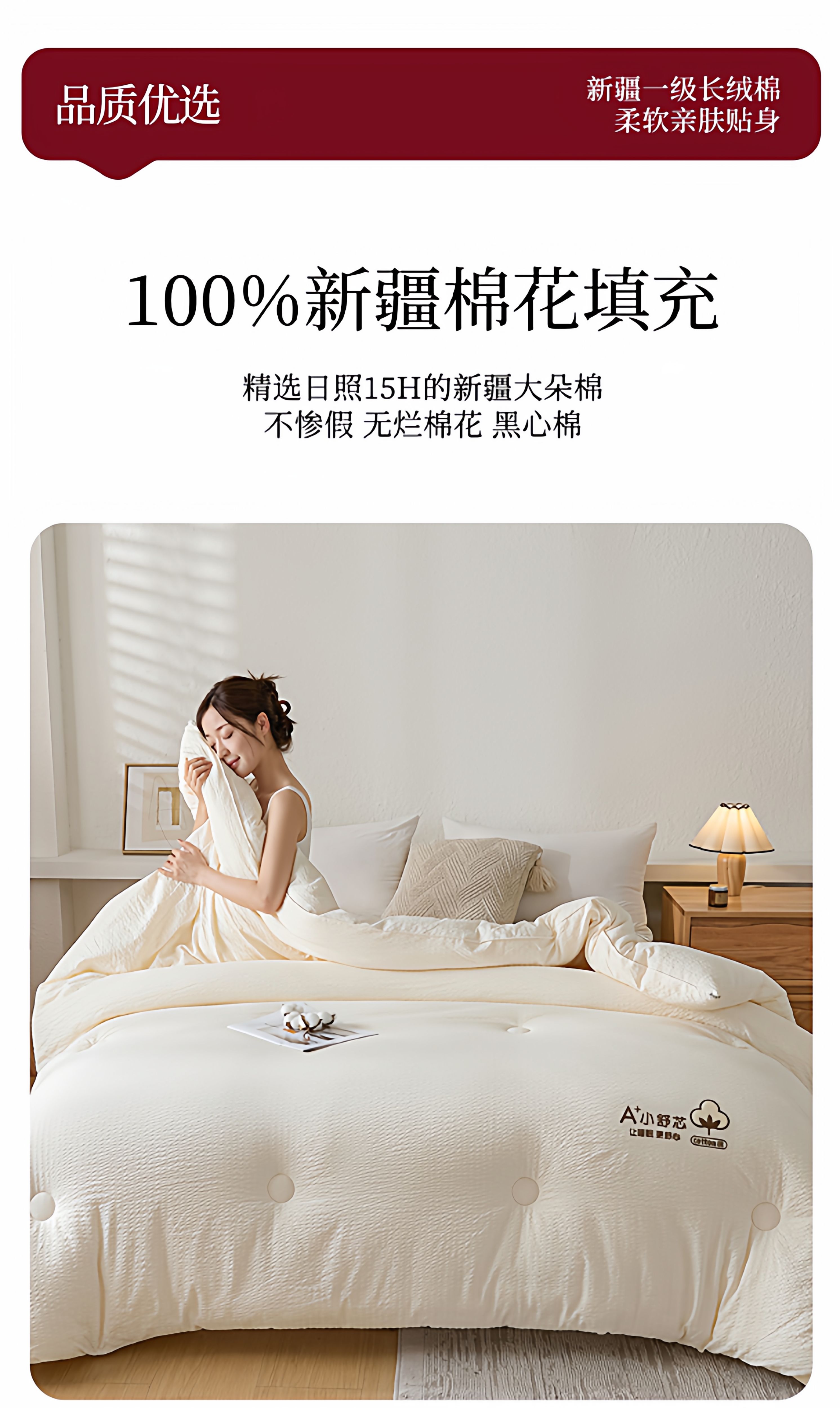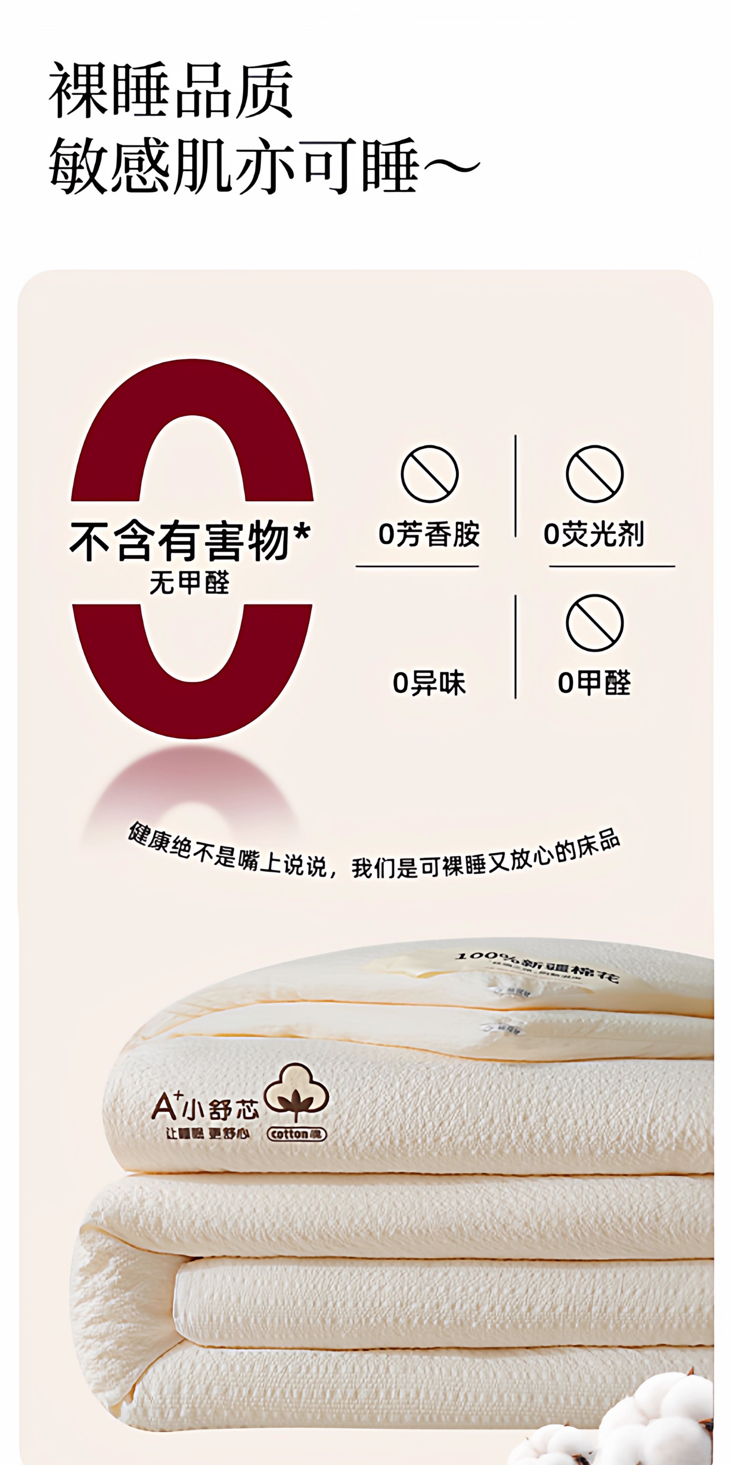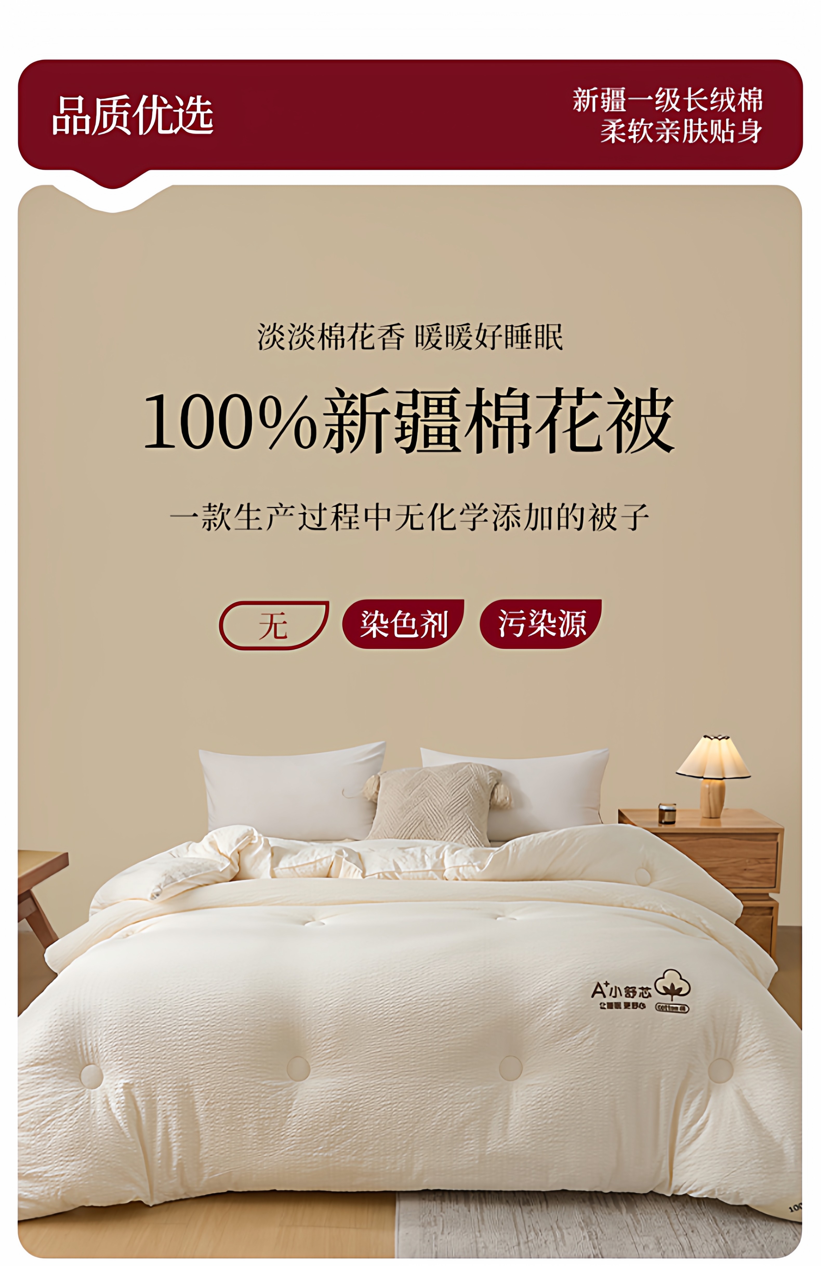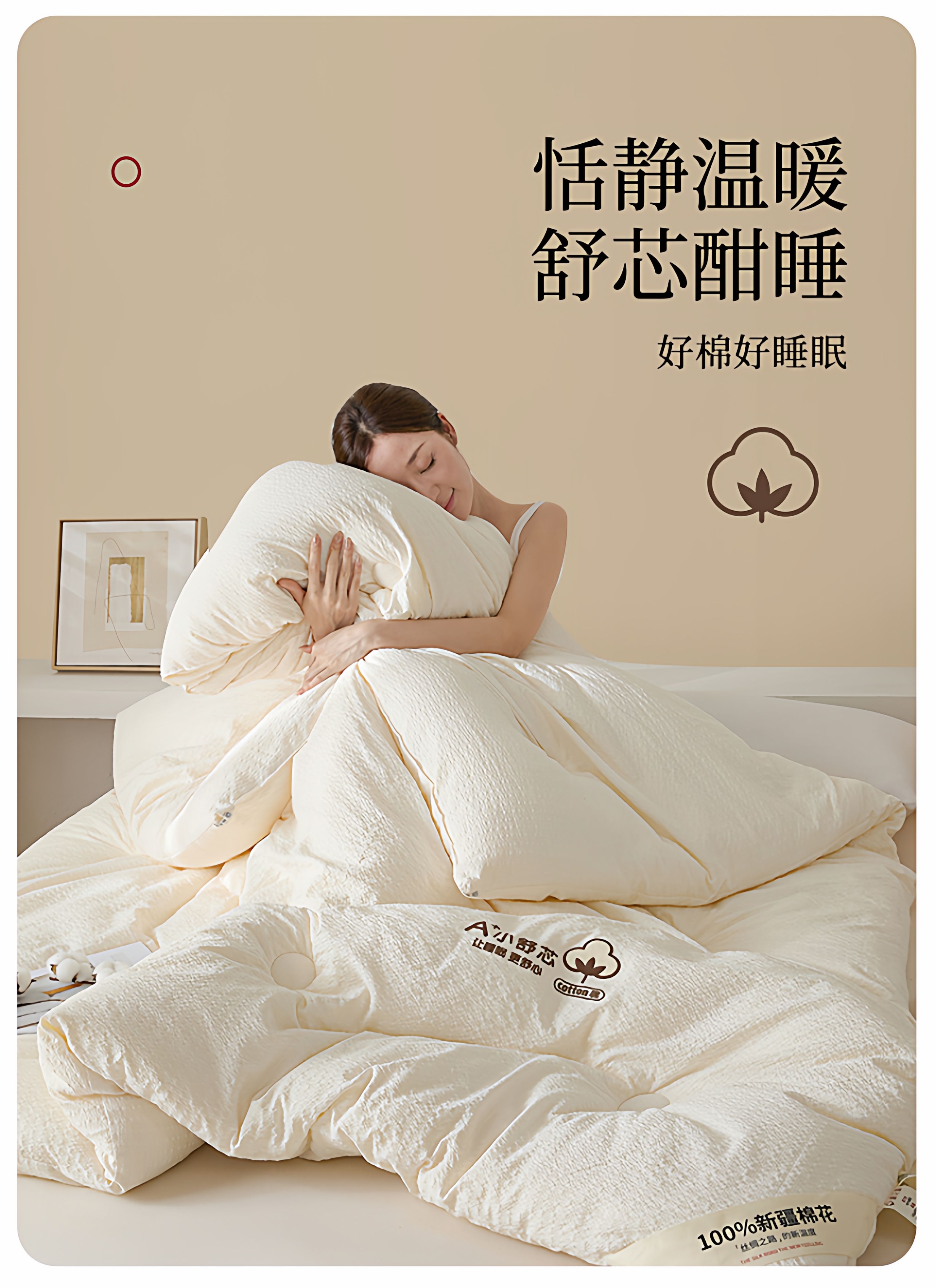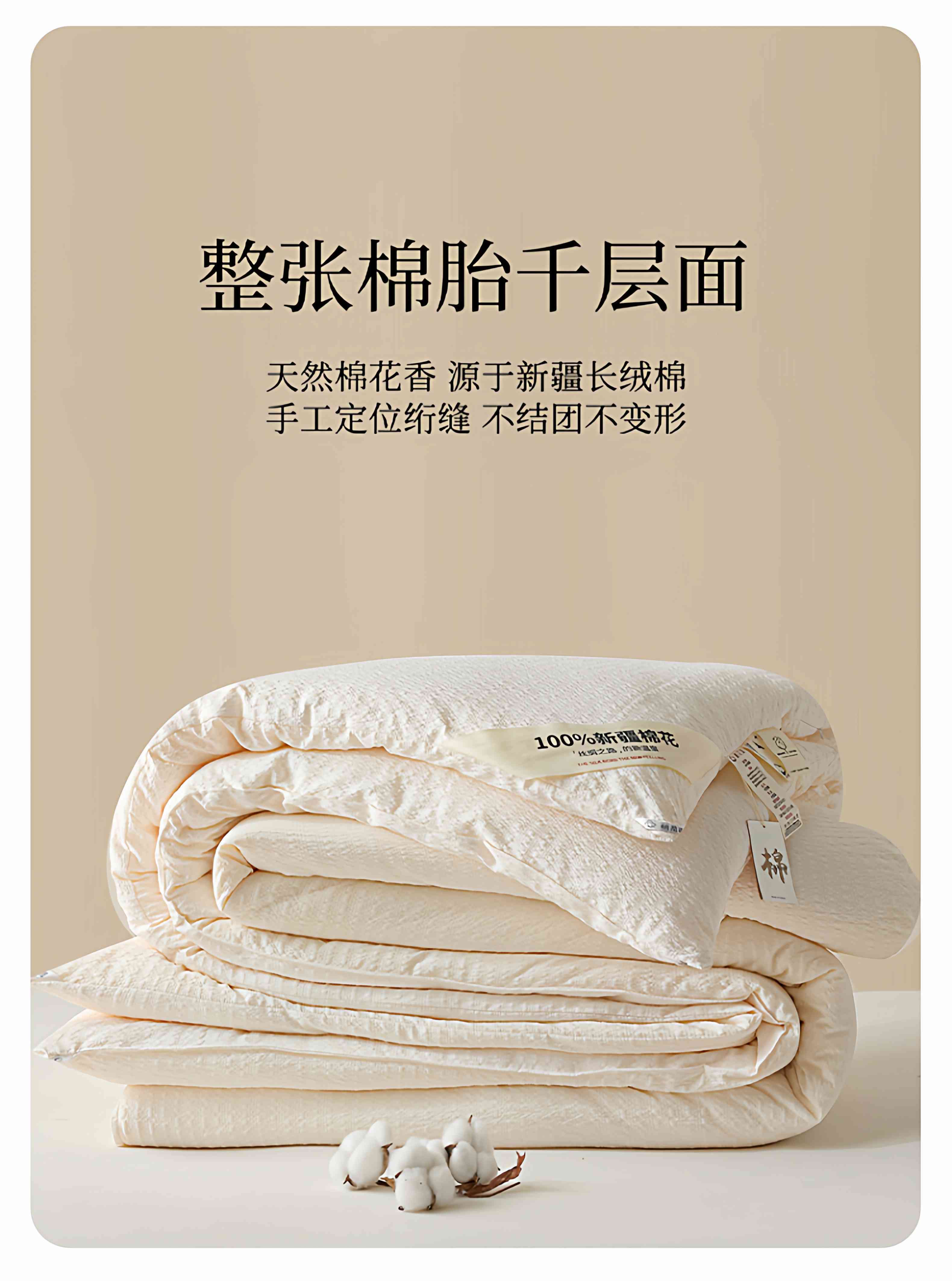 猫人(MiiOW)100%纯棉新疆棉花皱皱纱被子被芯加厚保暖棉被秋冬被褥四季通用 小舒芯-粉【100%棉花填充】 200*230cm秋冬被【约6斤】