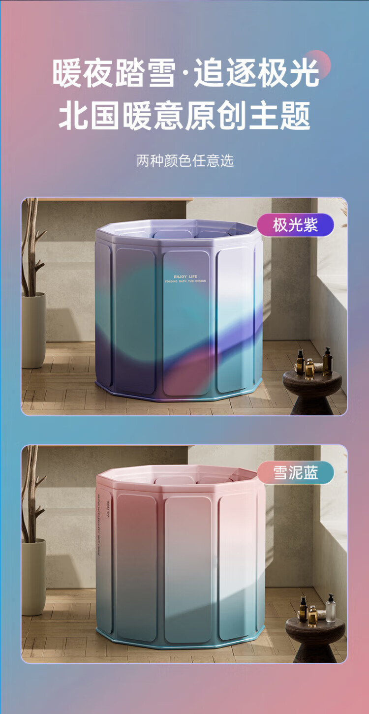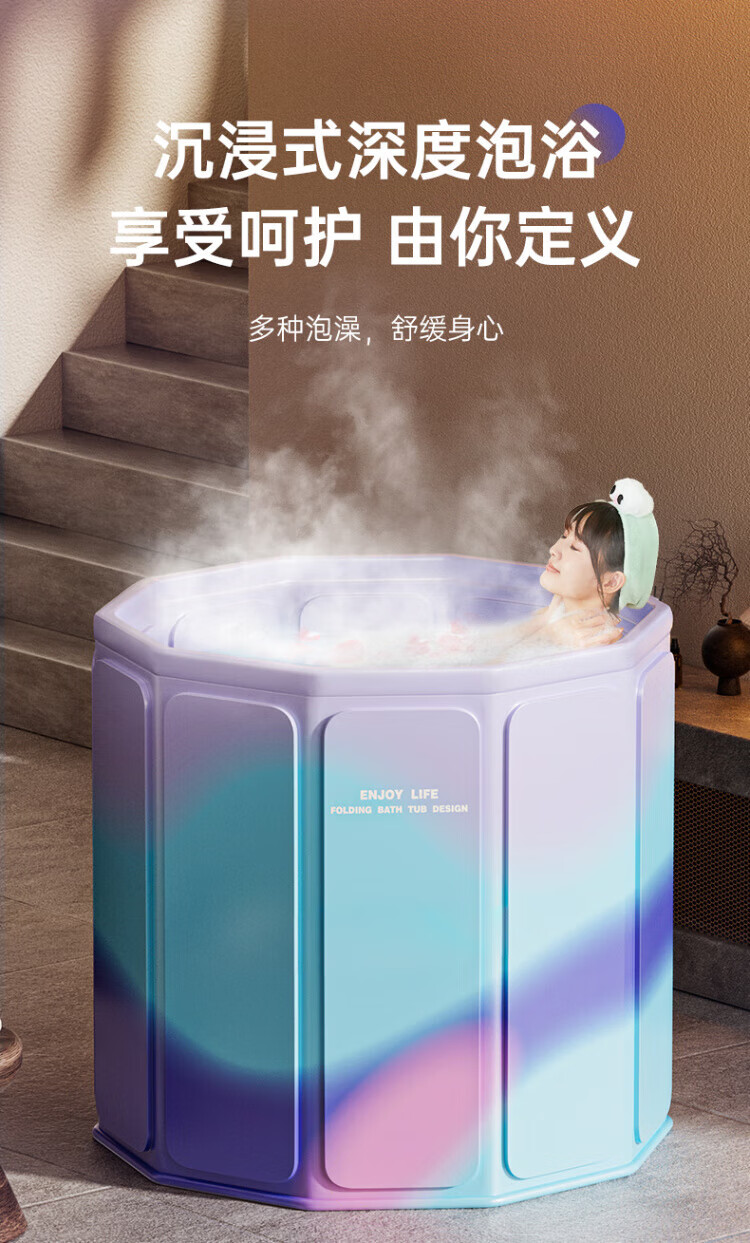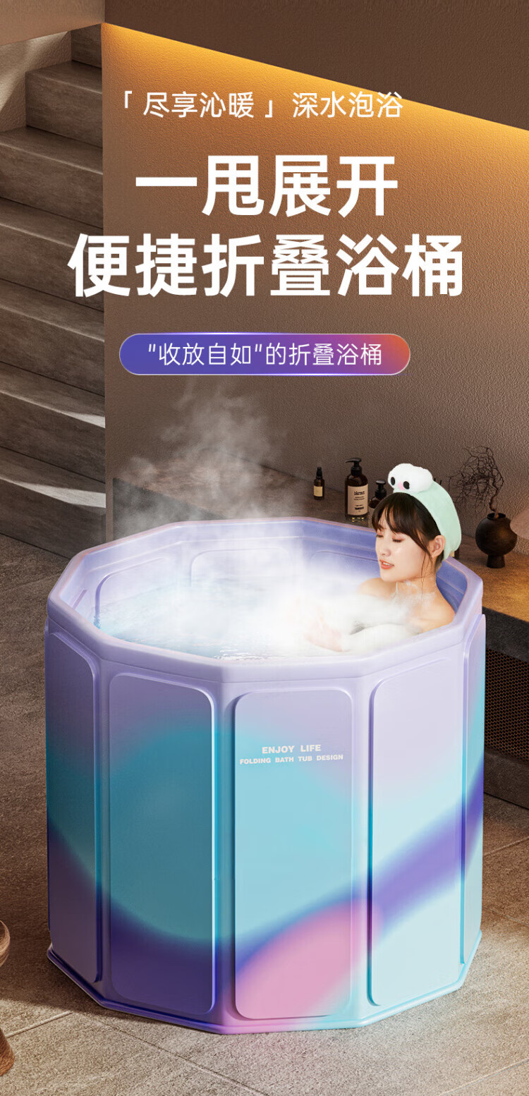 TYZAYR日本泡澡桶大人可折叠家用成人浴缸免安装加厚全身药浴儿童洗澡沐 【极光紫-70】加厚锁温【暖心套餐】