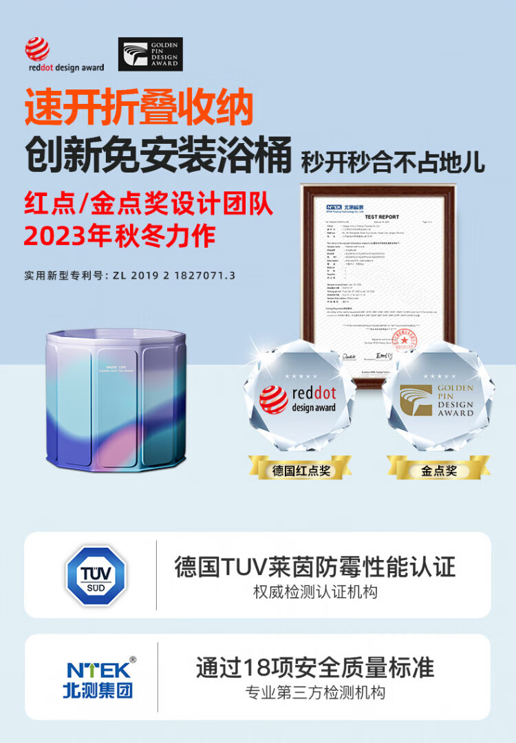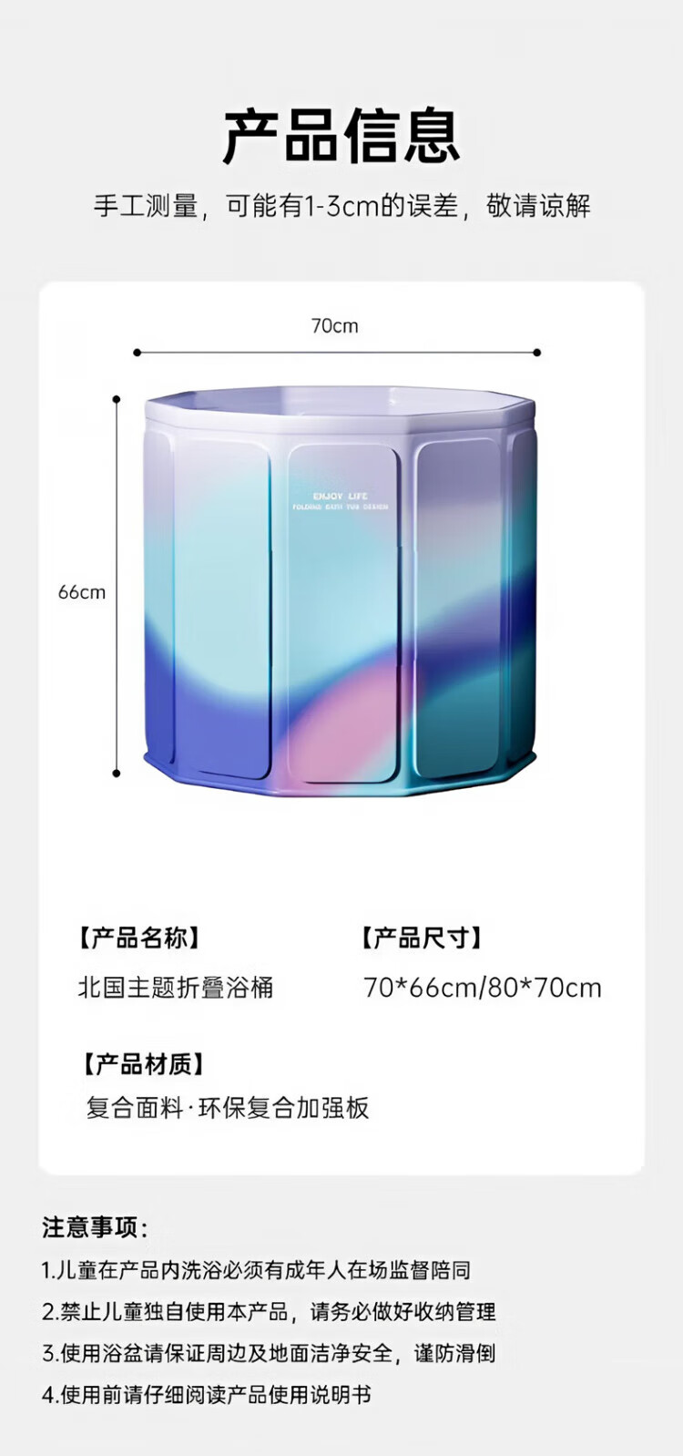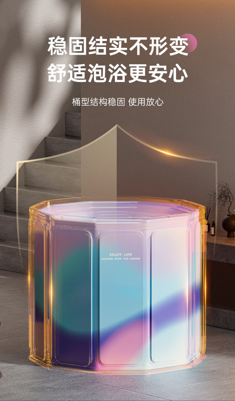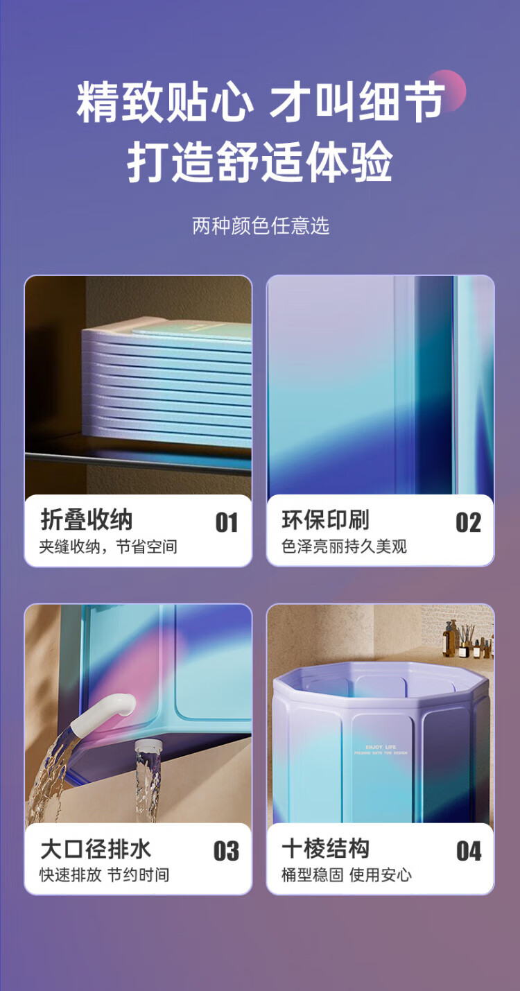 TYZAYR日本泡澡桶大人可折叠家用成人浴缸免安装加厚全身药浴儿童洗澡沐 【极光紫-70】加厚锁温【暖心套餐】