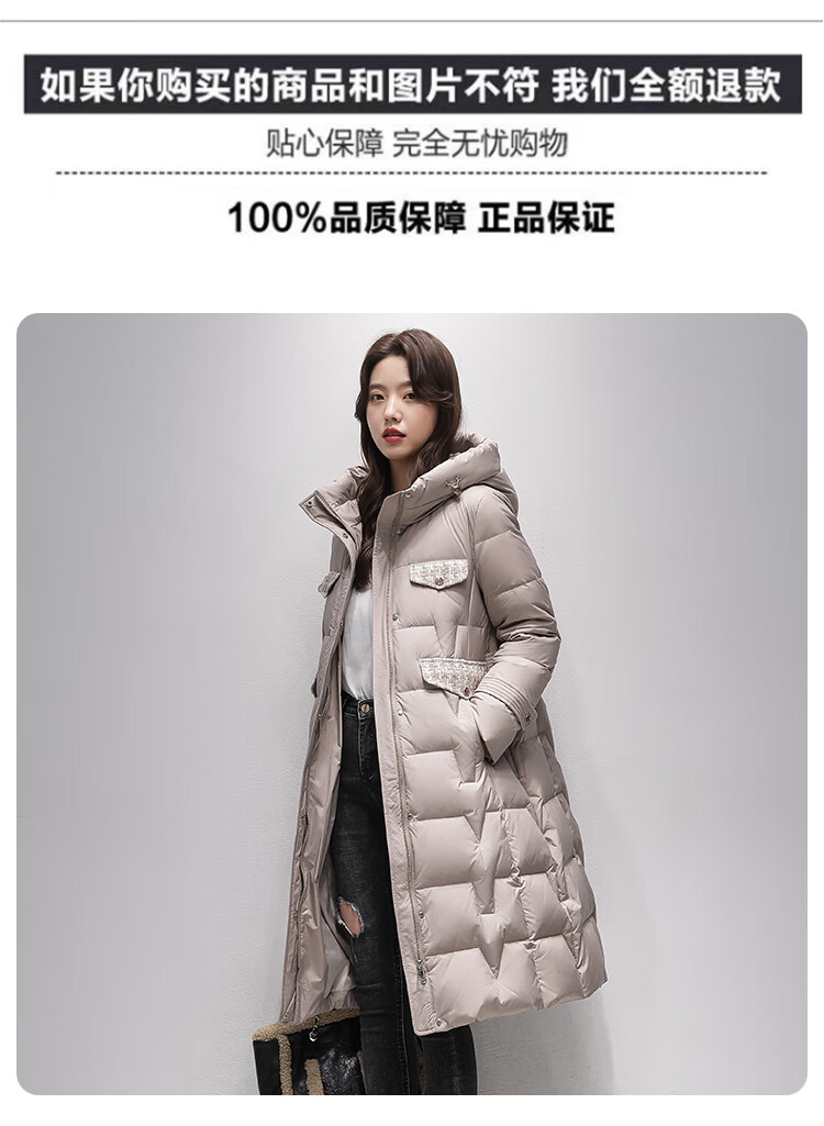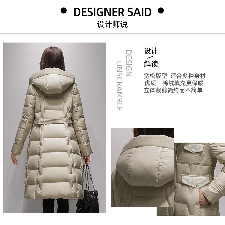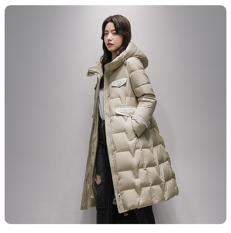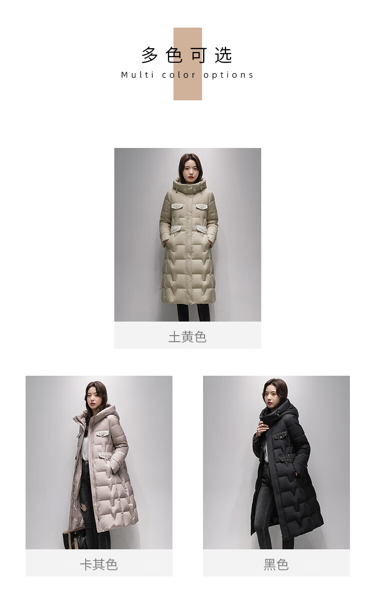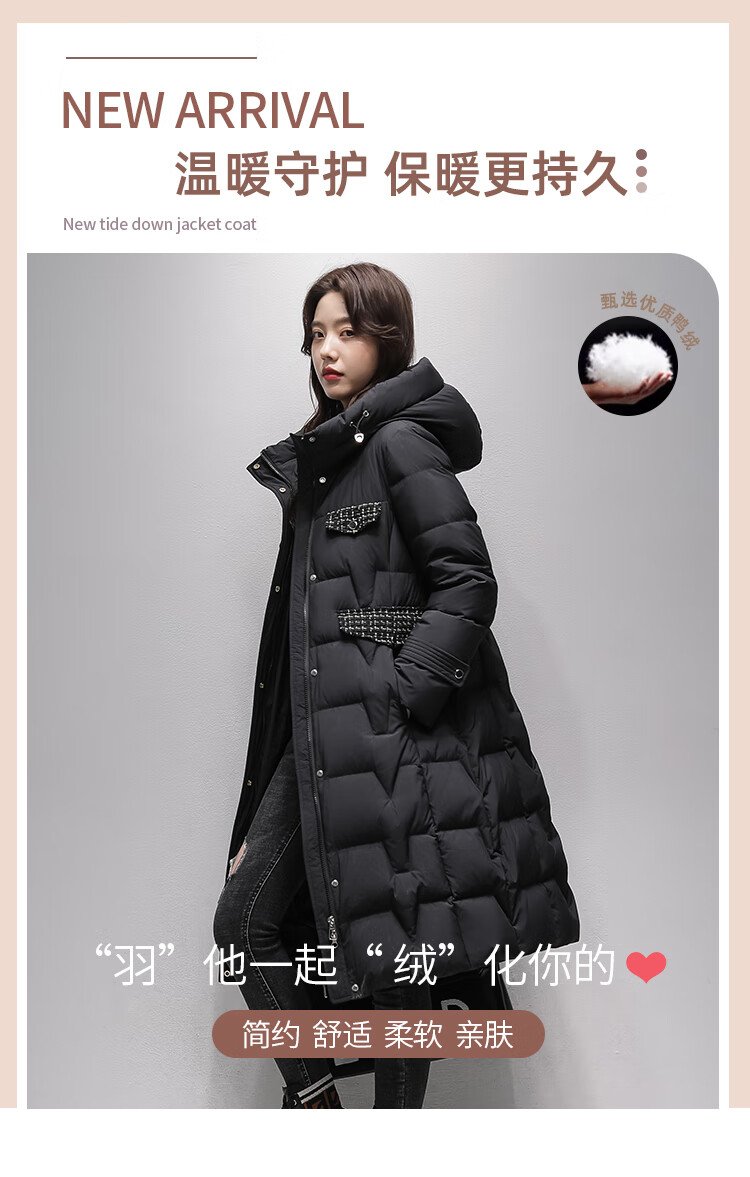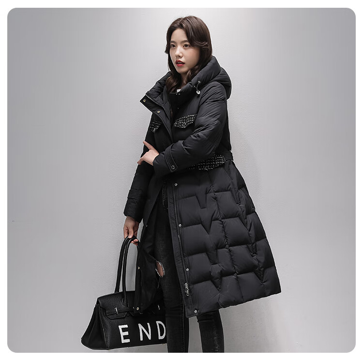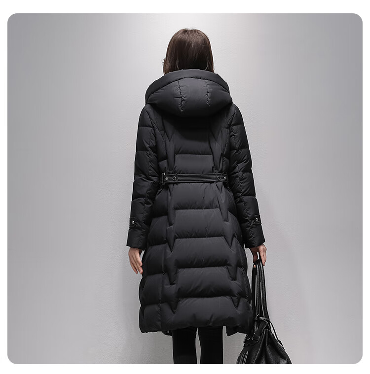 雪中飞女士长款羽绒服90鸭绒抗寒保暖时尚户外连帽外套30781 黑色 M (165/88A)