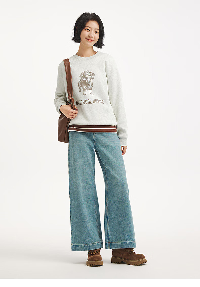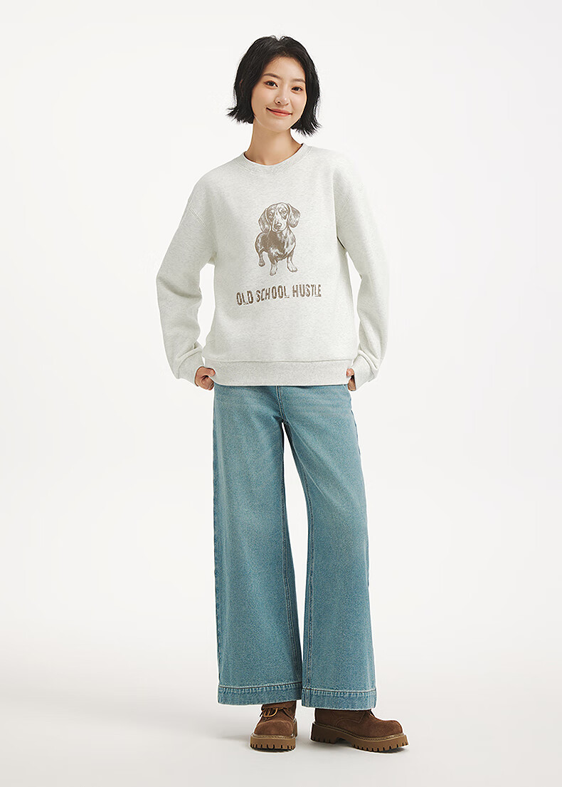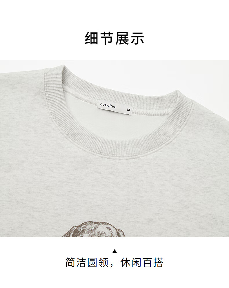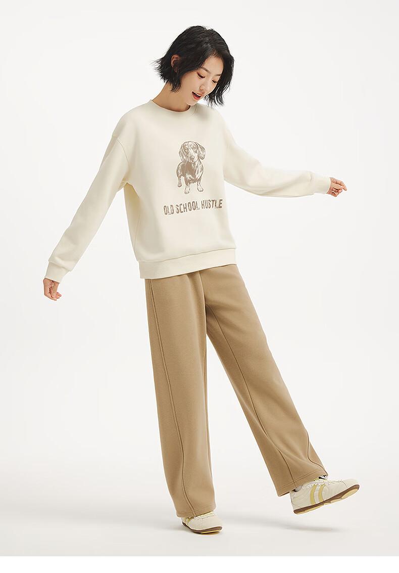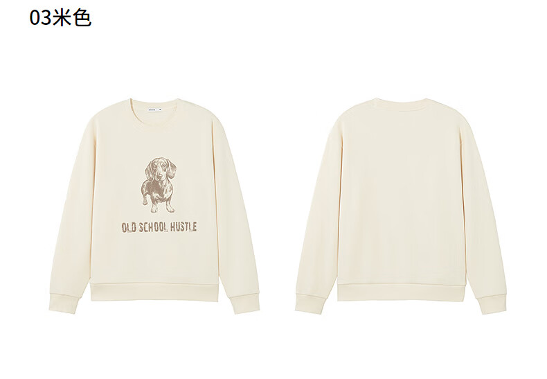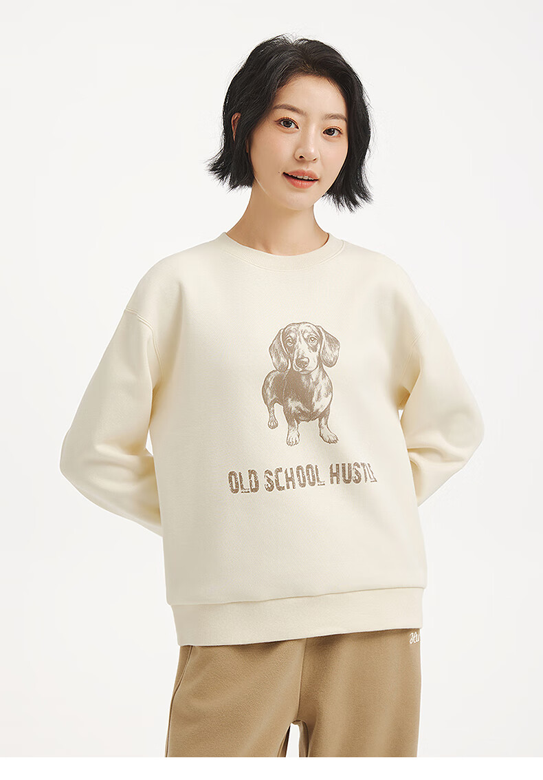 热风(Hotwind)女士加绒卫衣2025年冬季新款小狗卡通印花圆领加绒内搭卫衣 03米色 S