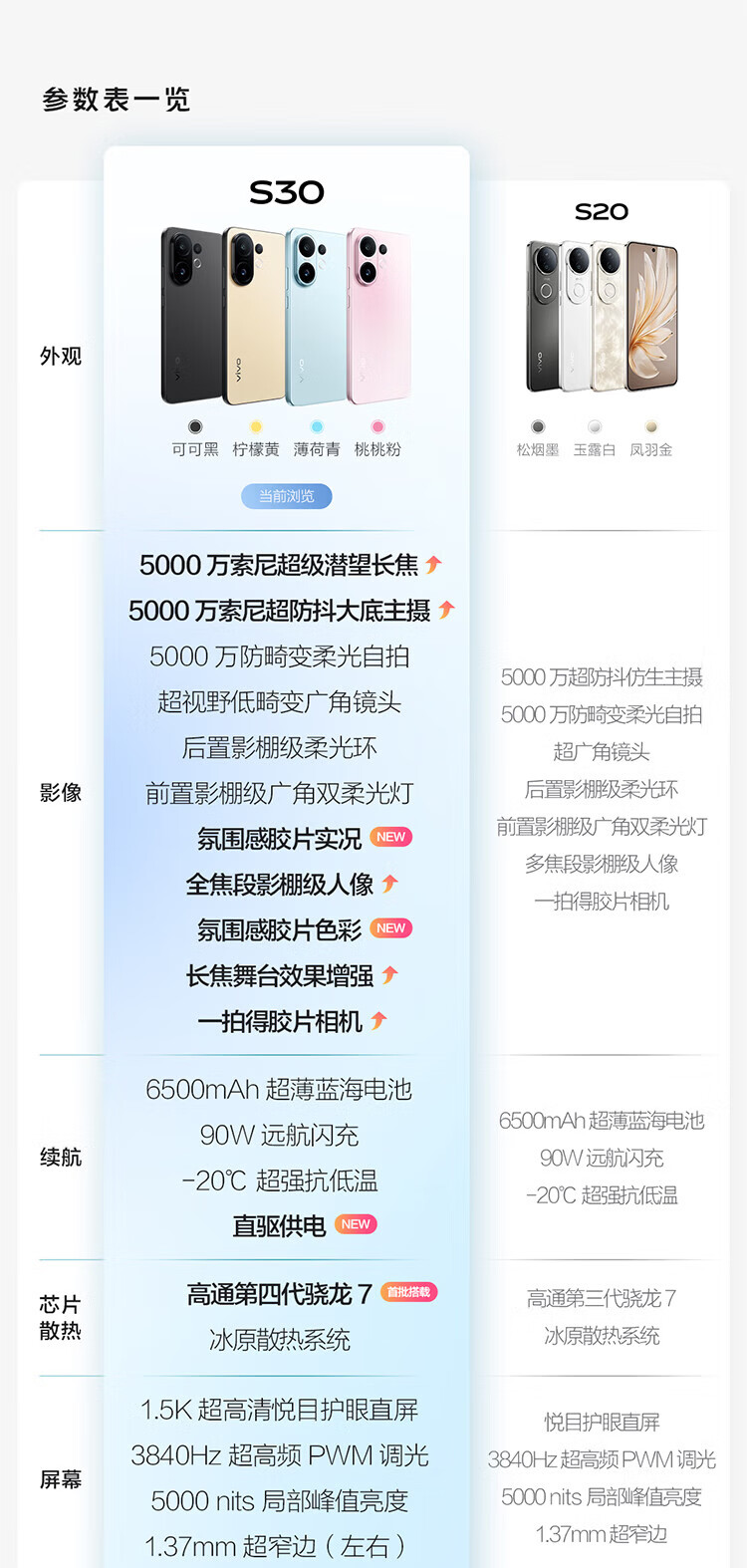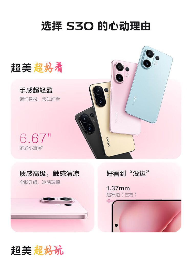 vivo S30 16+512 薄荷青 多彩轻薄直屏 超级潜望长焦 学生live图 AI手机【赠话费券】国家补贴