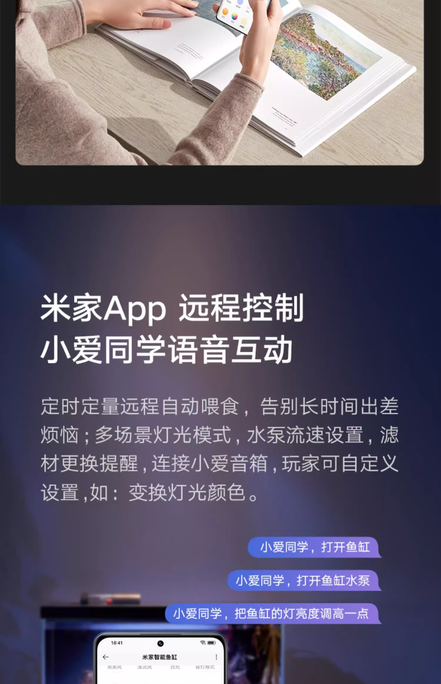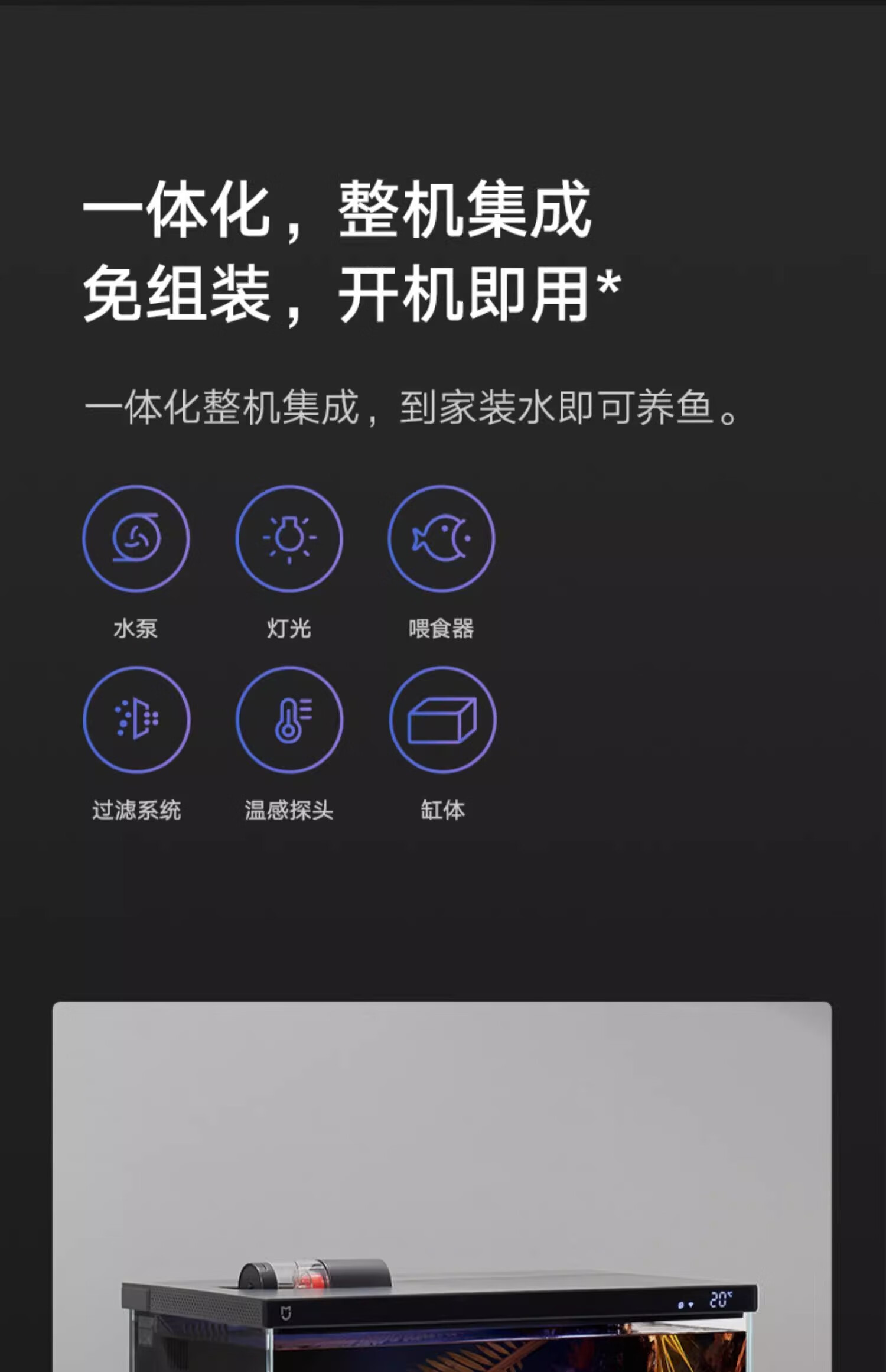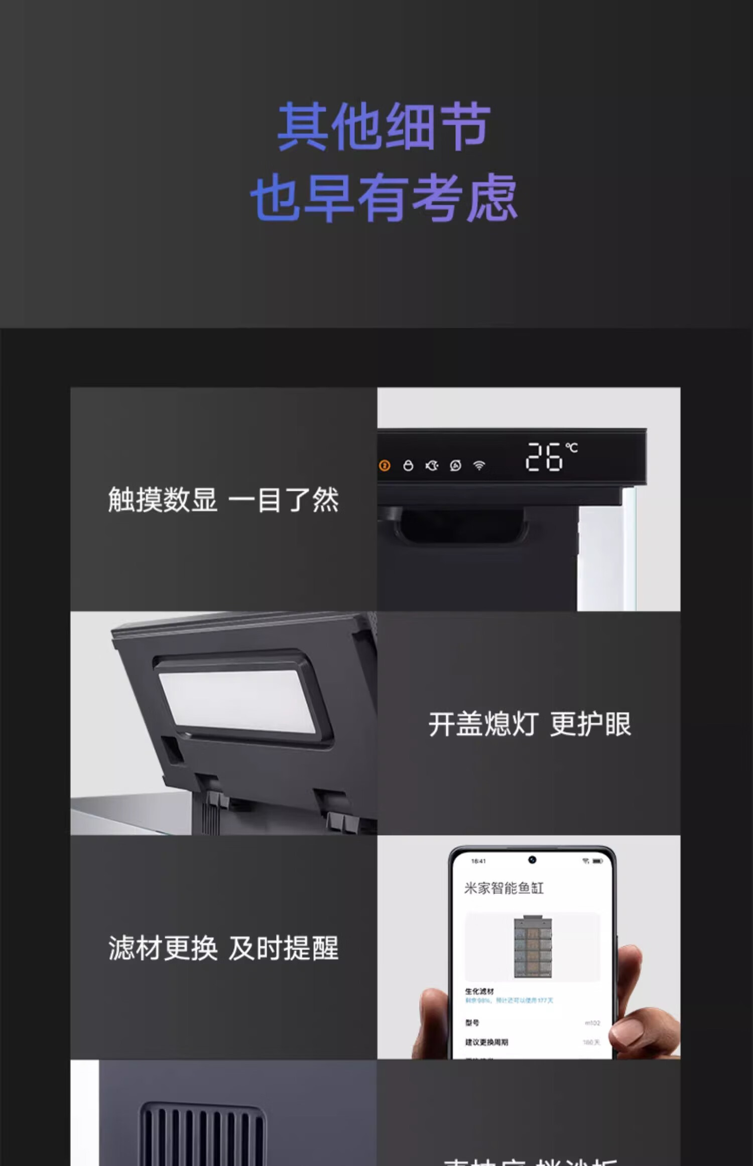 小米米家智能鱼缸客厅小型造景生态家用背景超白玻璃桌面循环自动喂食 小米智能鱼缸(已接入米家APP)