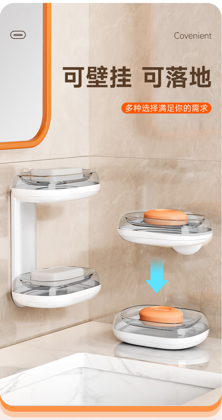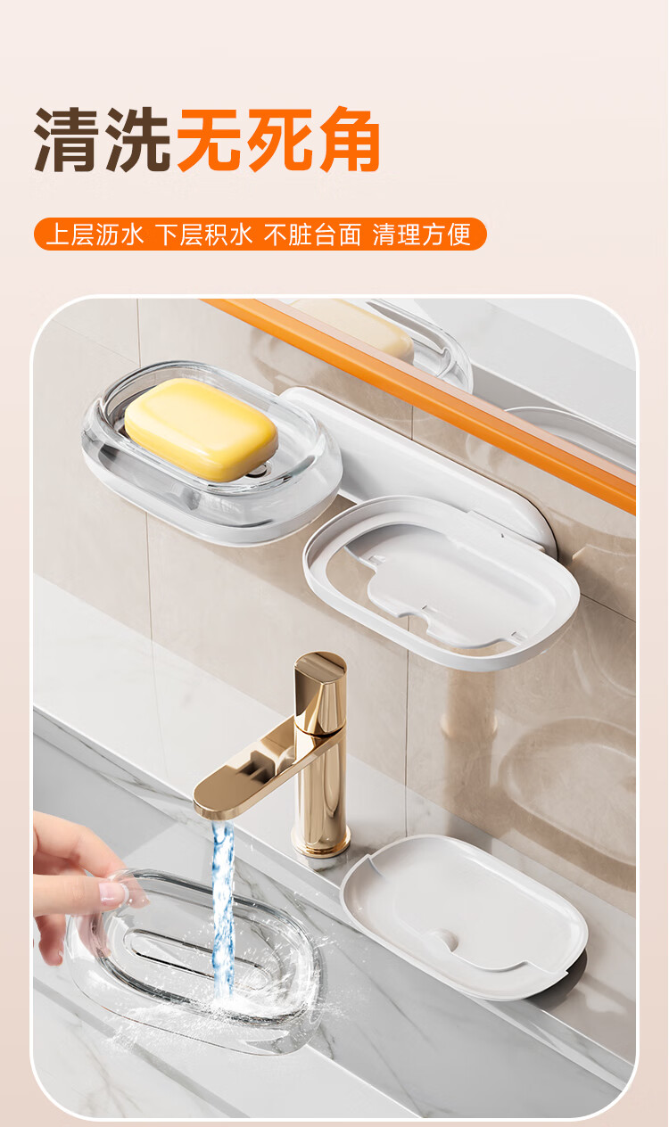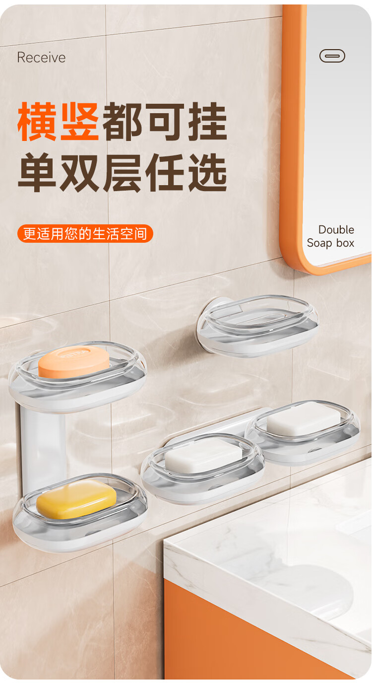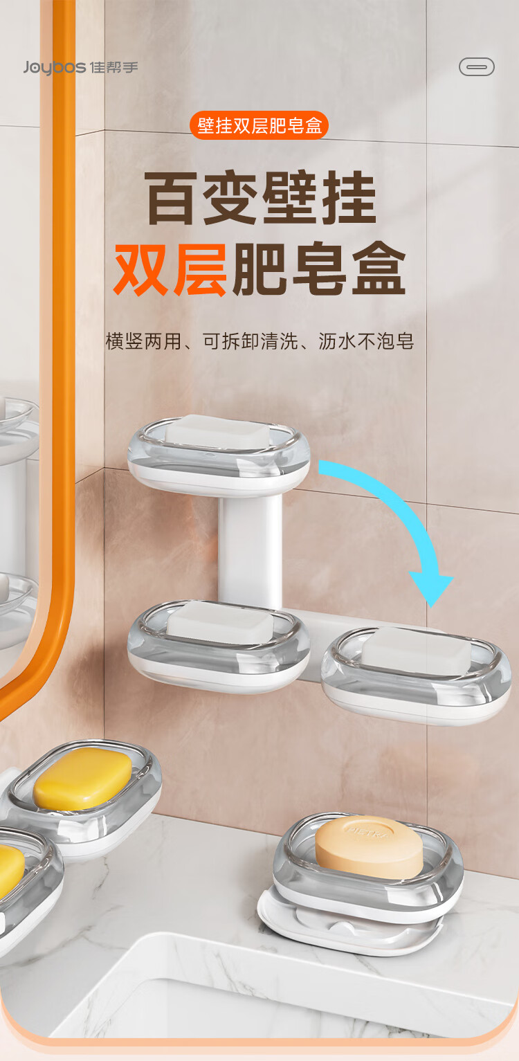 佳帮手肥皂盒壁挂式香皂盒免打孔浴室墙上卫生间可拆卸沥水置物架双层