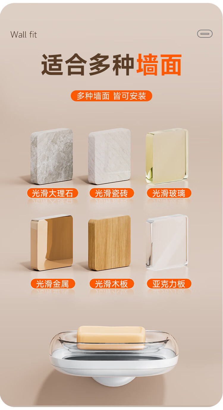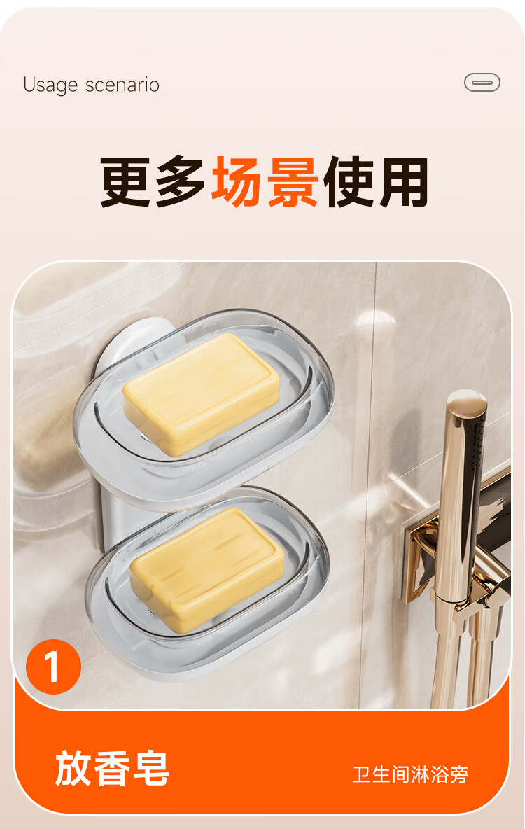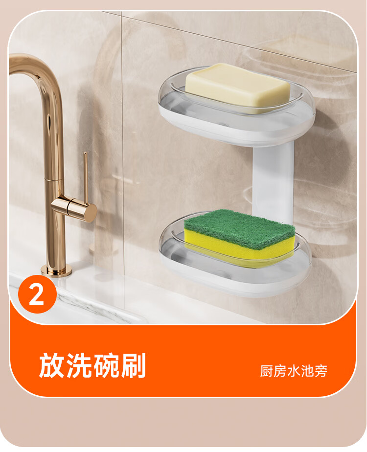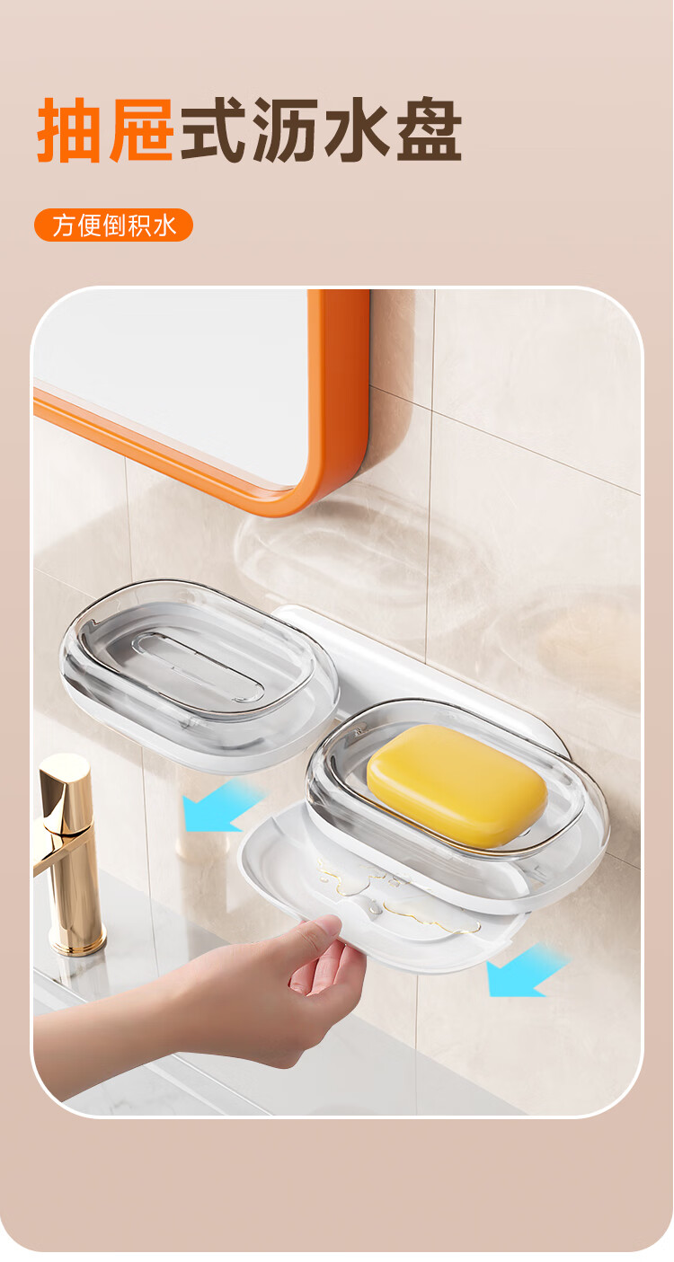 佳帮手肥皂盒壁挂式香皂盒免打孔浴室墙上卫生间可拆卸沥水置物架双层