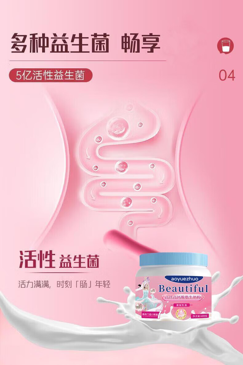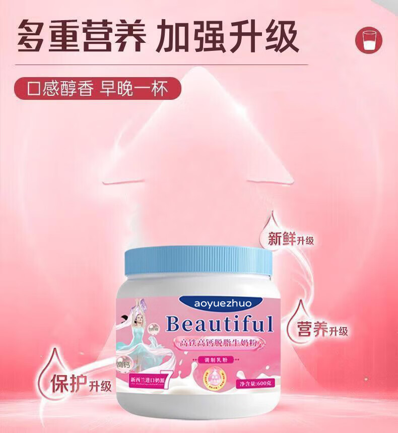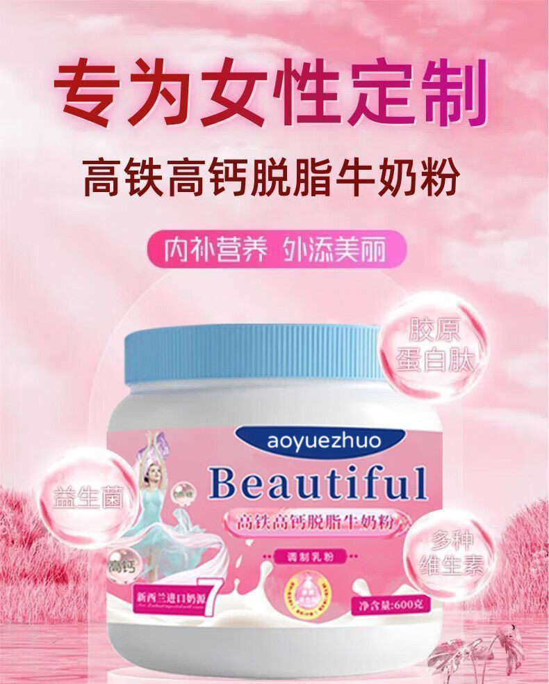 AOYUEZHUO女士高铁高钙脱脂奶粉成年人孕妇奶粉低脂益生菌营养早餐牛奶粉 女士奶粉2罐【为元气添动力】