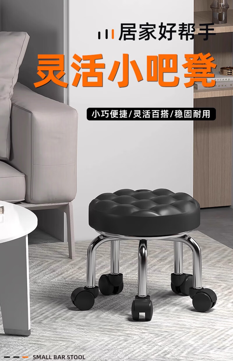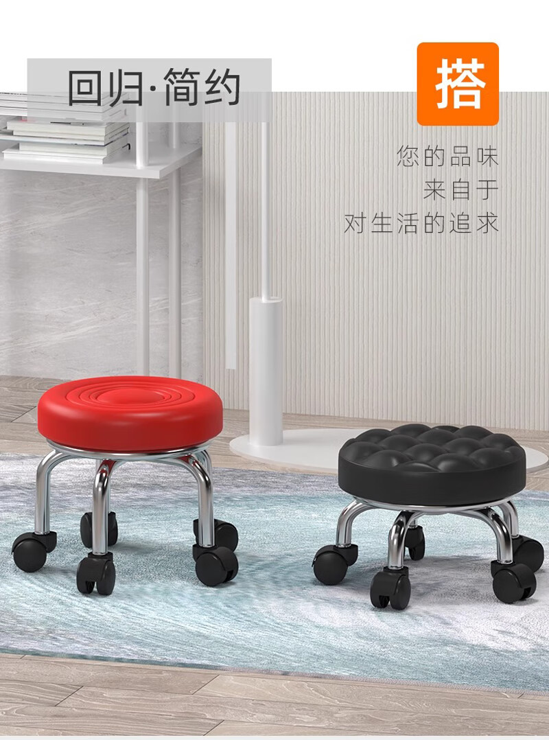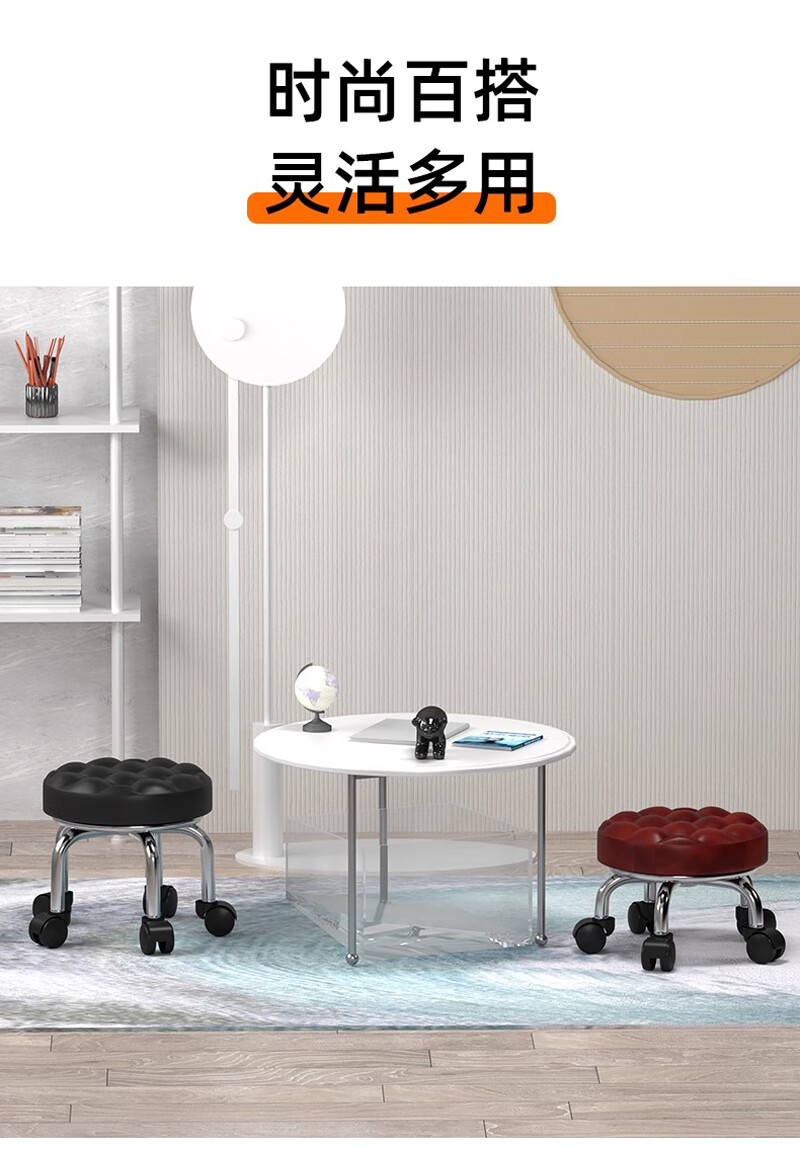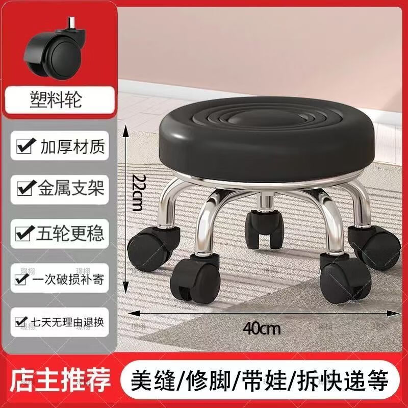 沐含玥万向轮矮凳子家用圆凳美缝旋转修脚儿童学步凳子带娃板凳滑轮静音