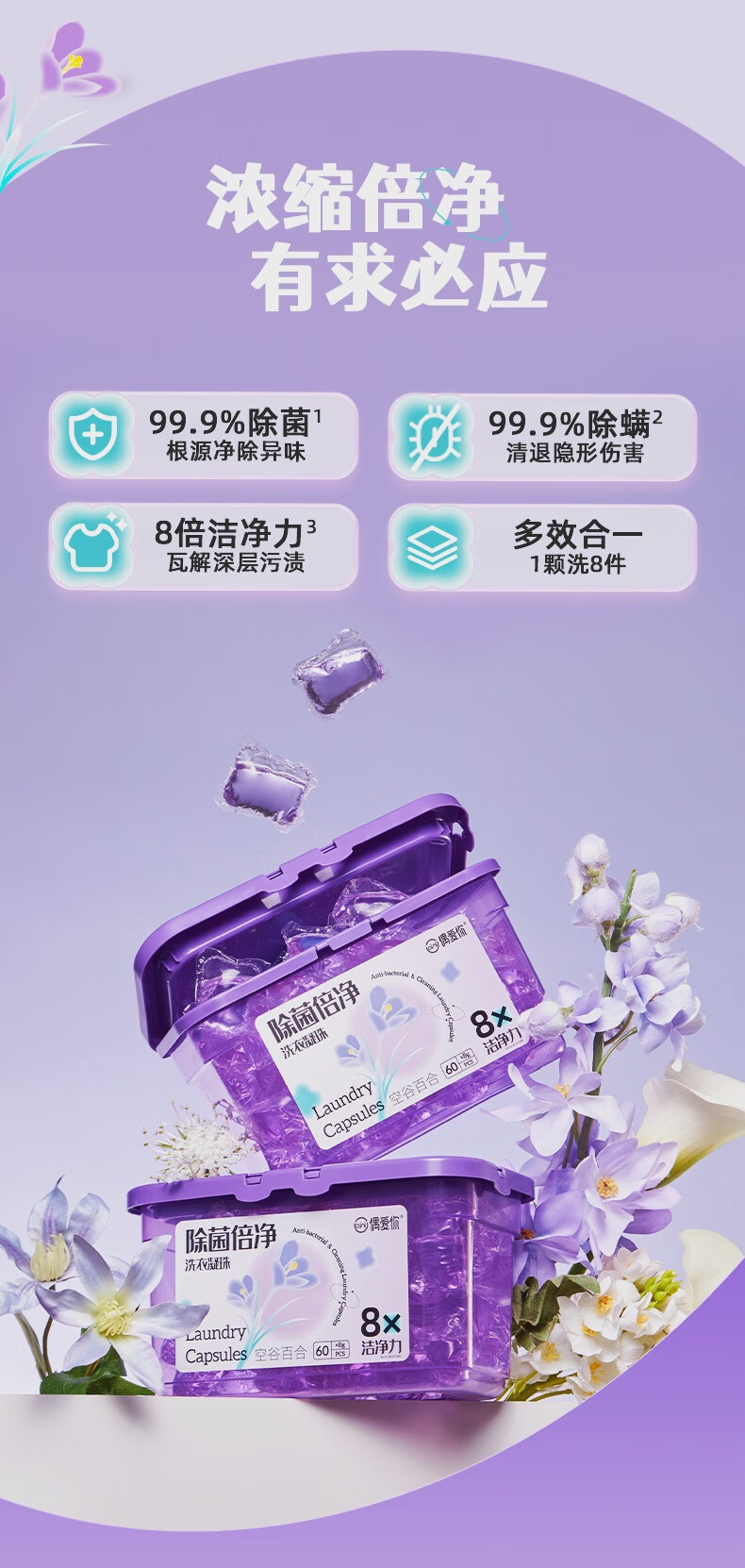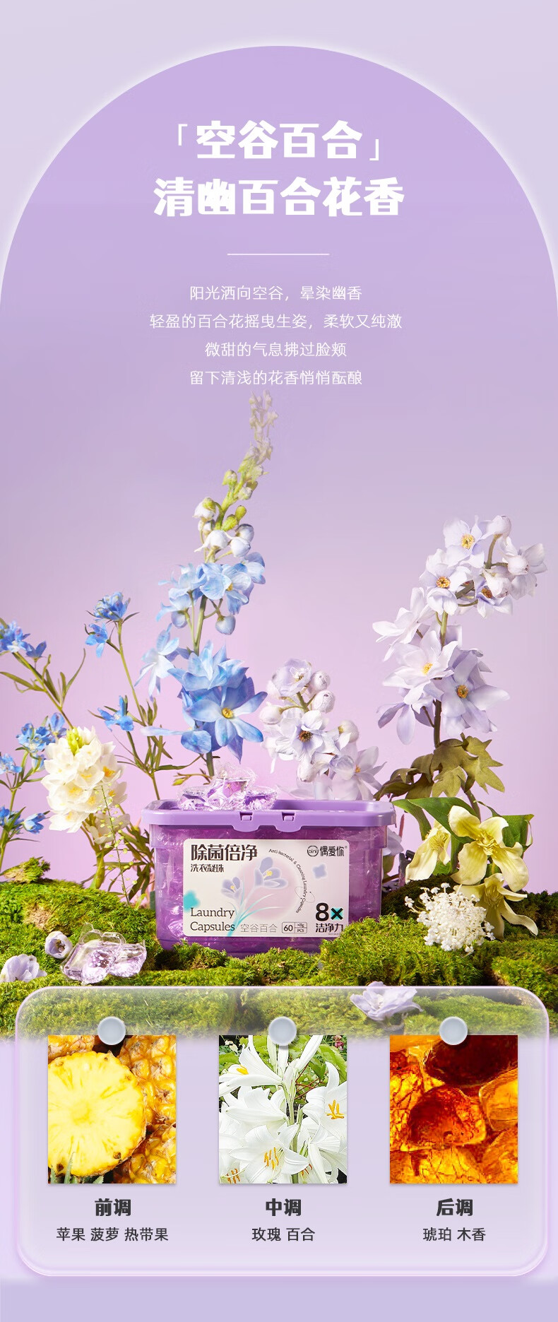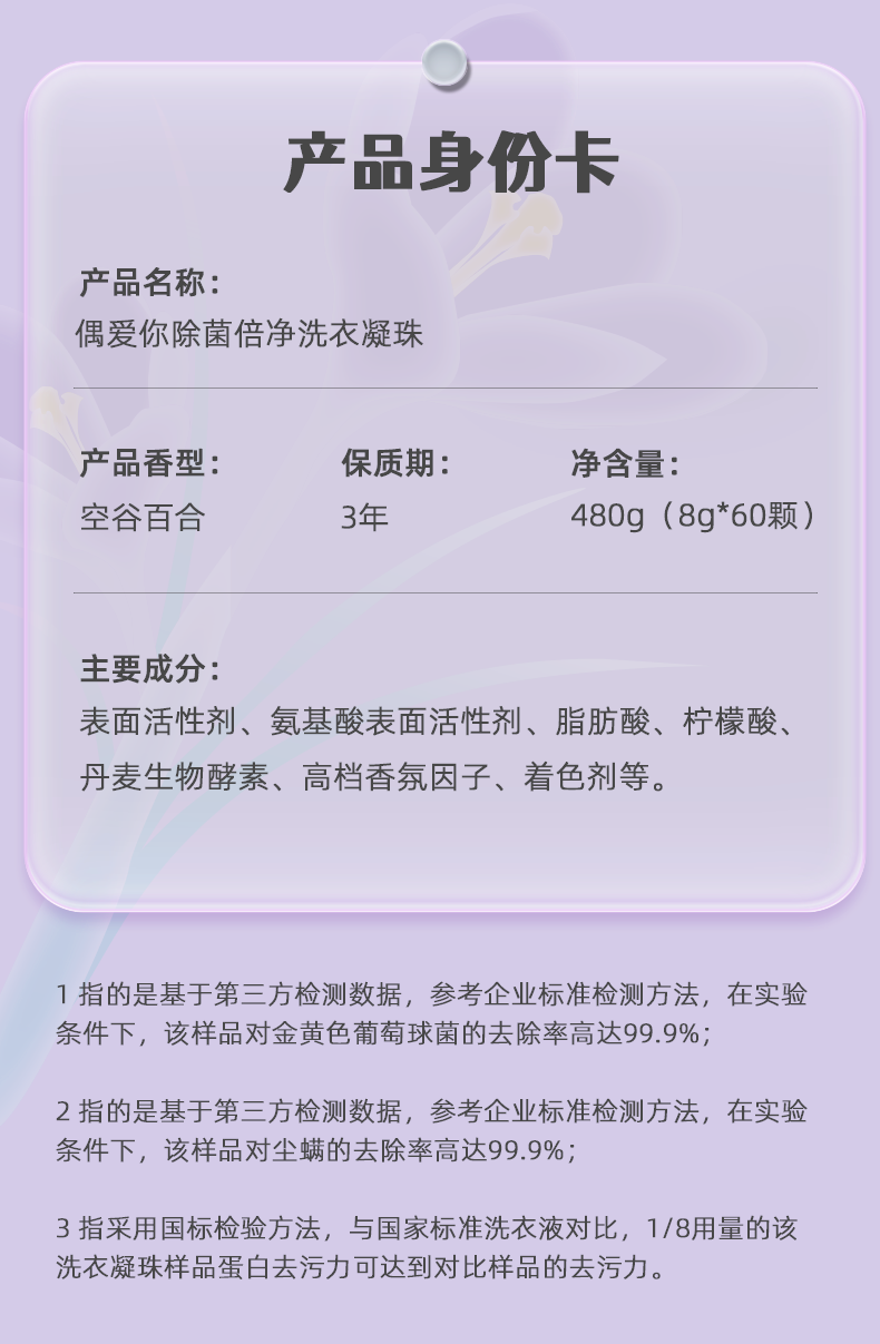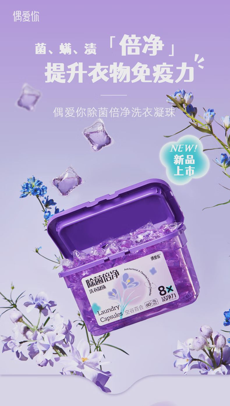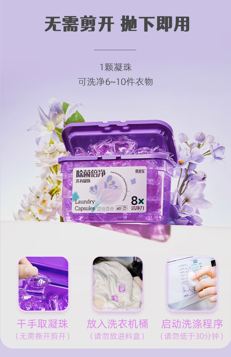 偶爱你洗衣凝珠 空谷百合8g*60颗 单腔 99.9%除菌除螨 深层洁净去异味