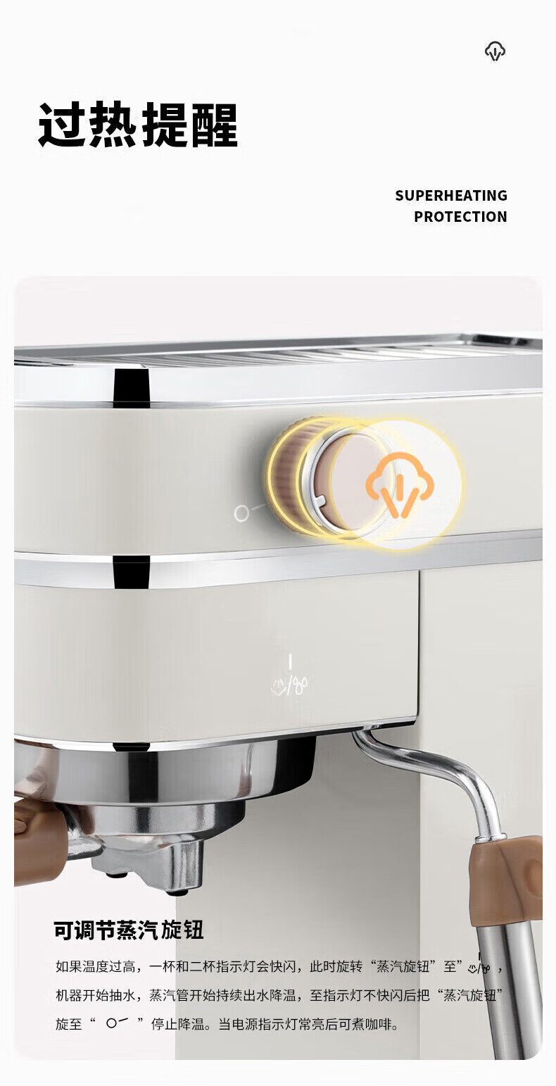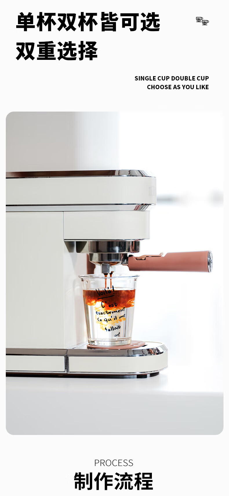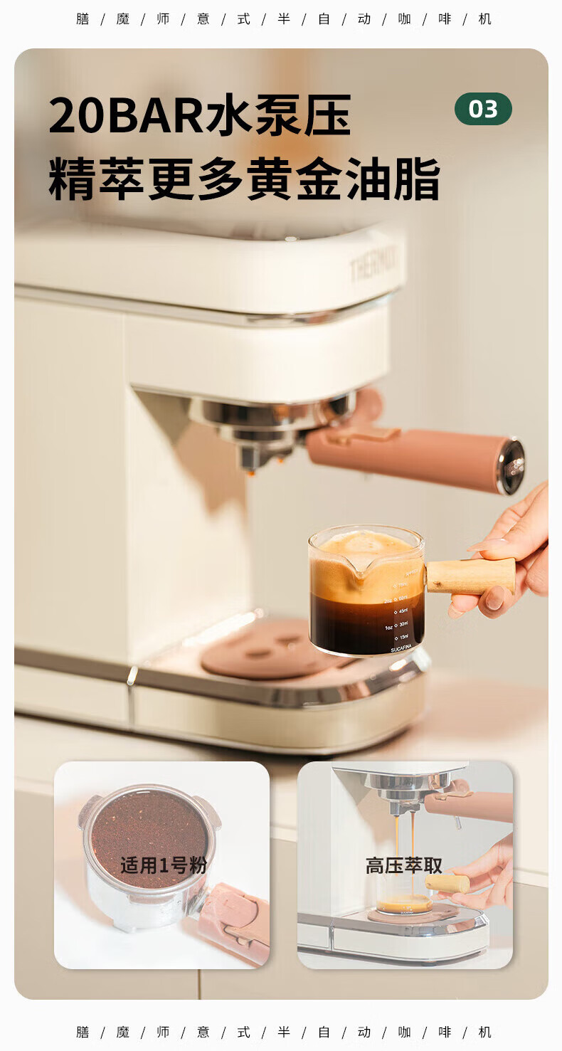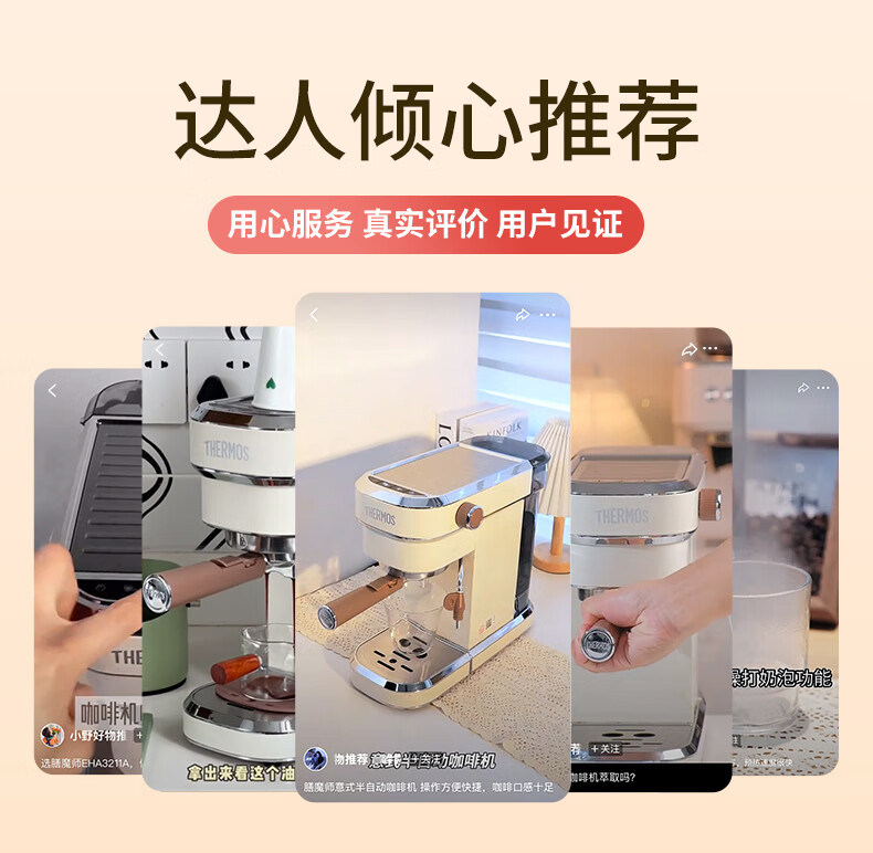 THERMOS【政府补贴】膳魔师意式半自动咖啡机 小型家用浓缩萃取复古便携咖啡机蒸汽奶泡 EHA-3211A-FW
