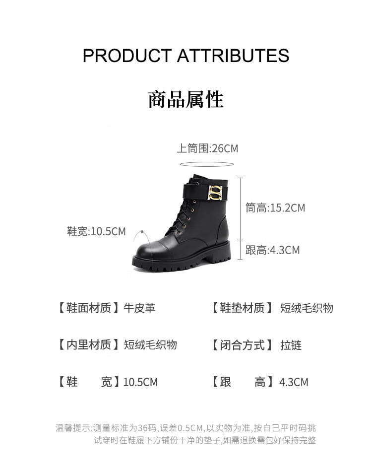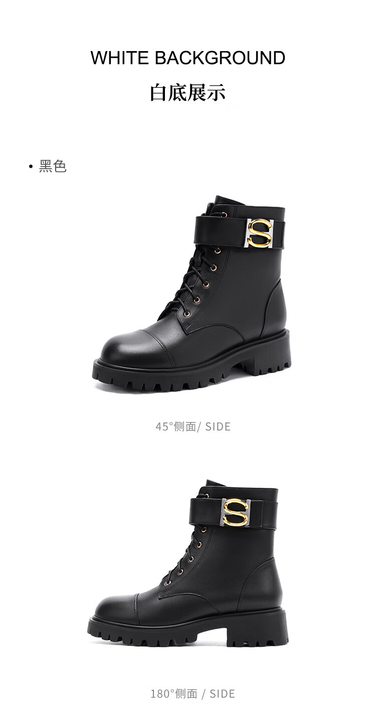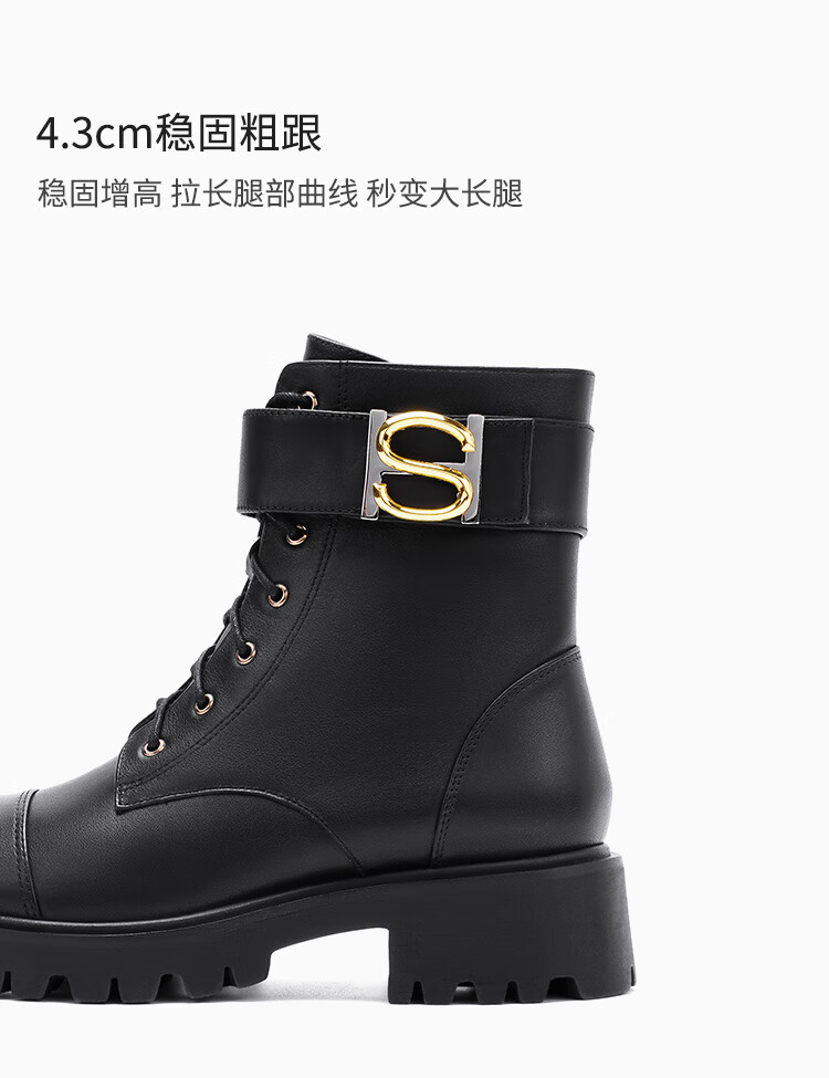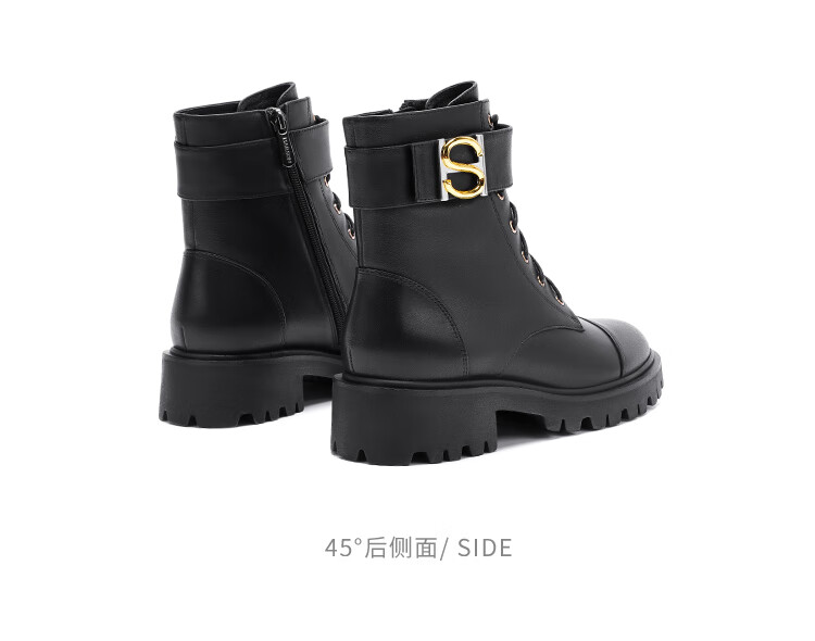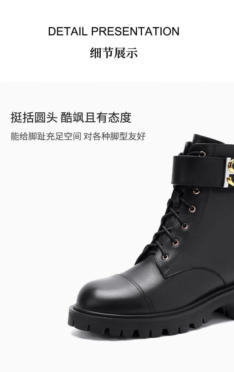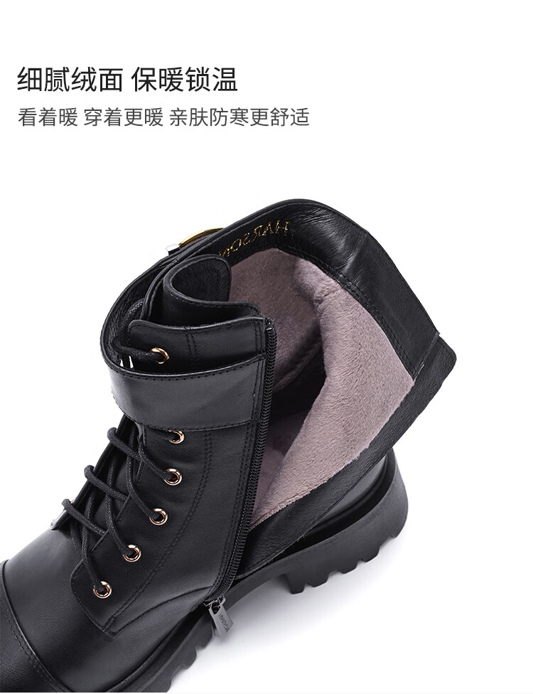 哈森(Harson)冬季休闲方跟圆头马丁靴日常休闲女靴HA259015 黑色 34