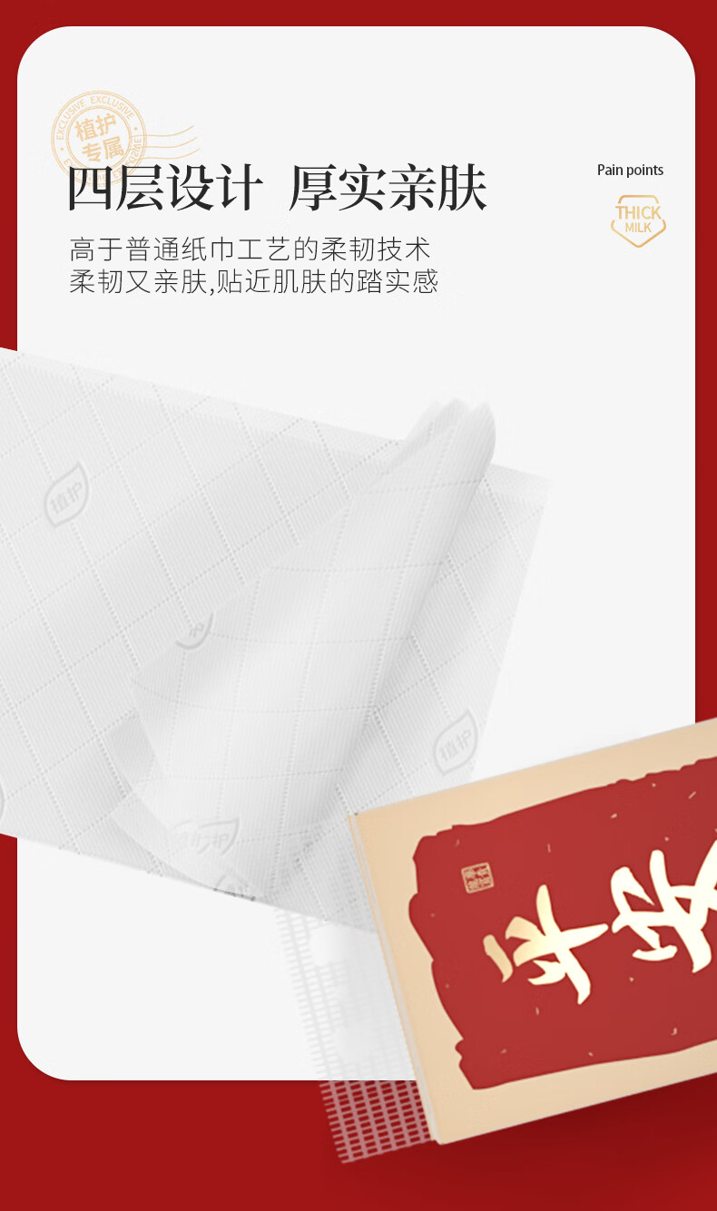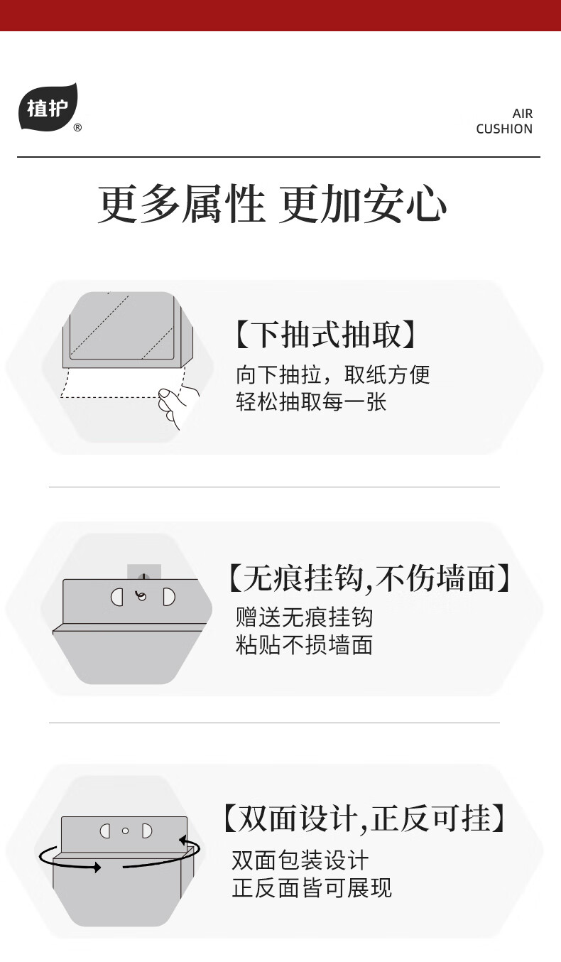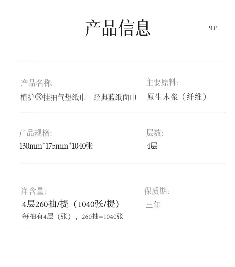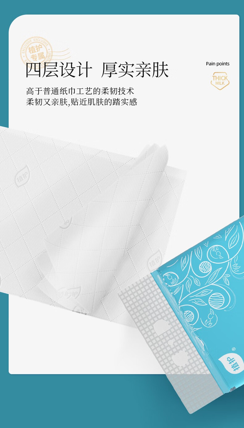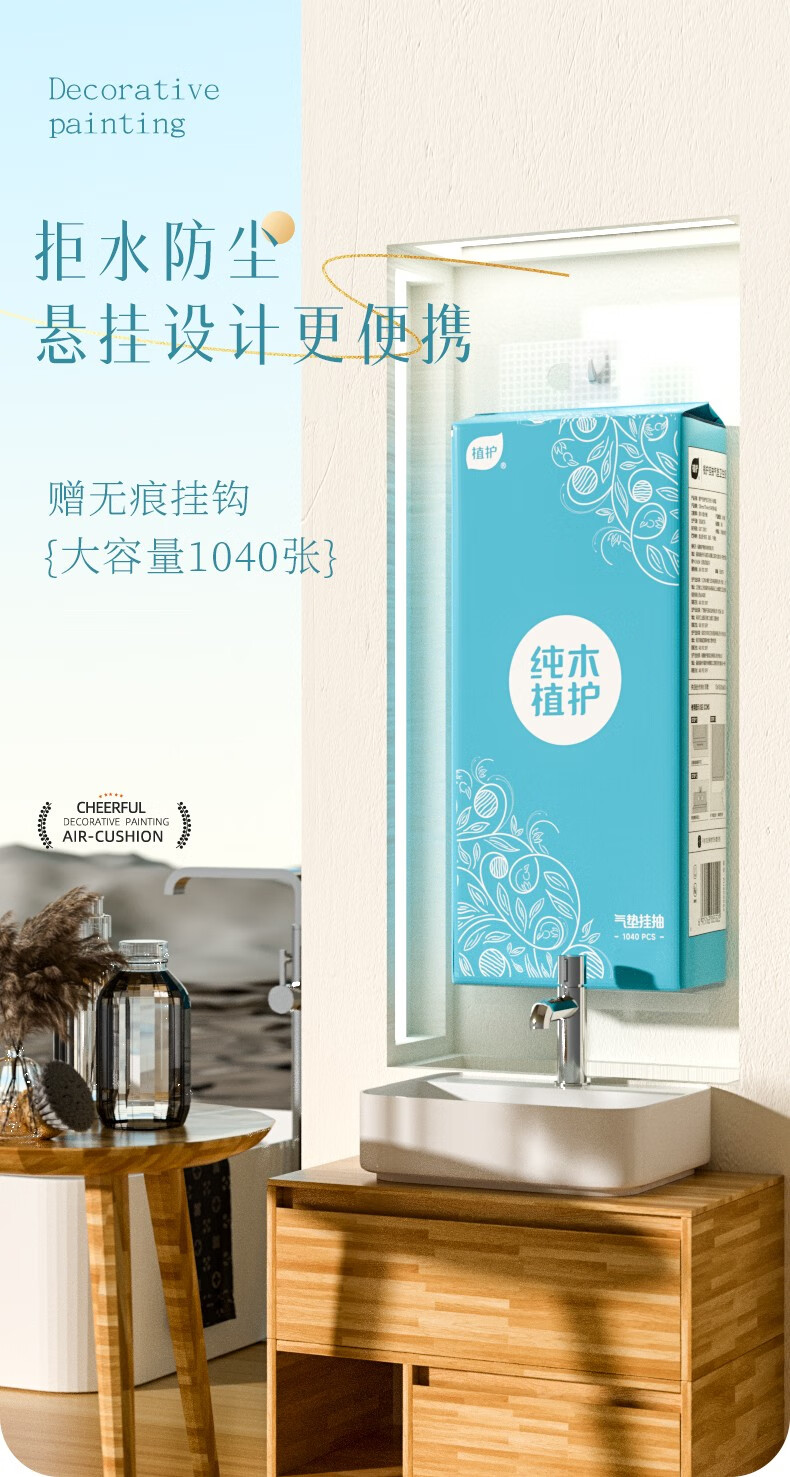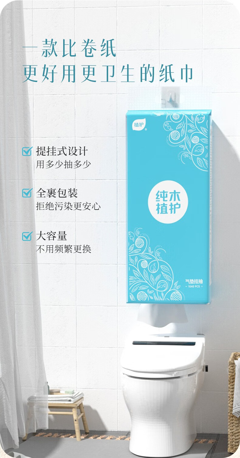 植护挂式抽纸 原生木浆纸巾加厚 卫生纸餐巾纸 4层 1040张*3提 (1挂钩)