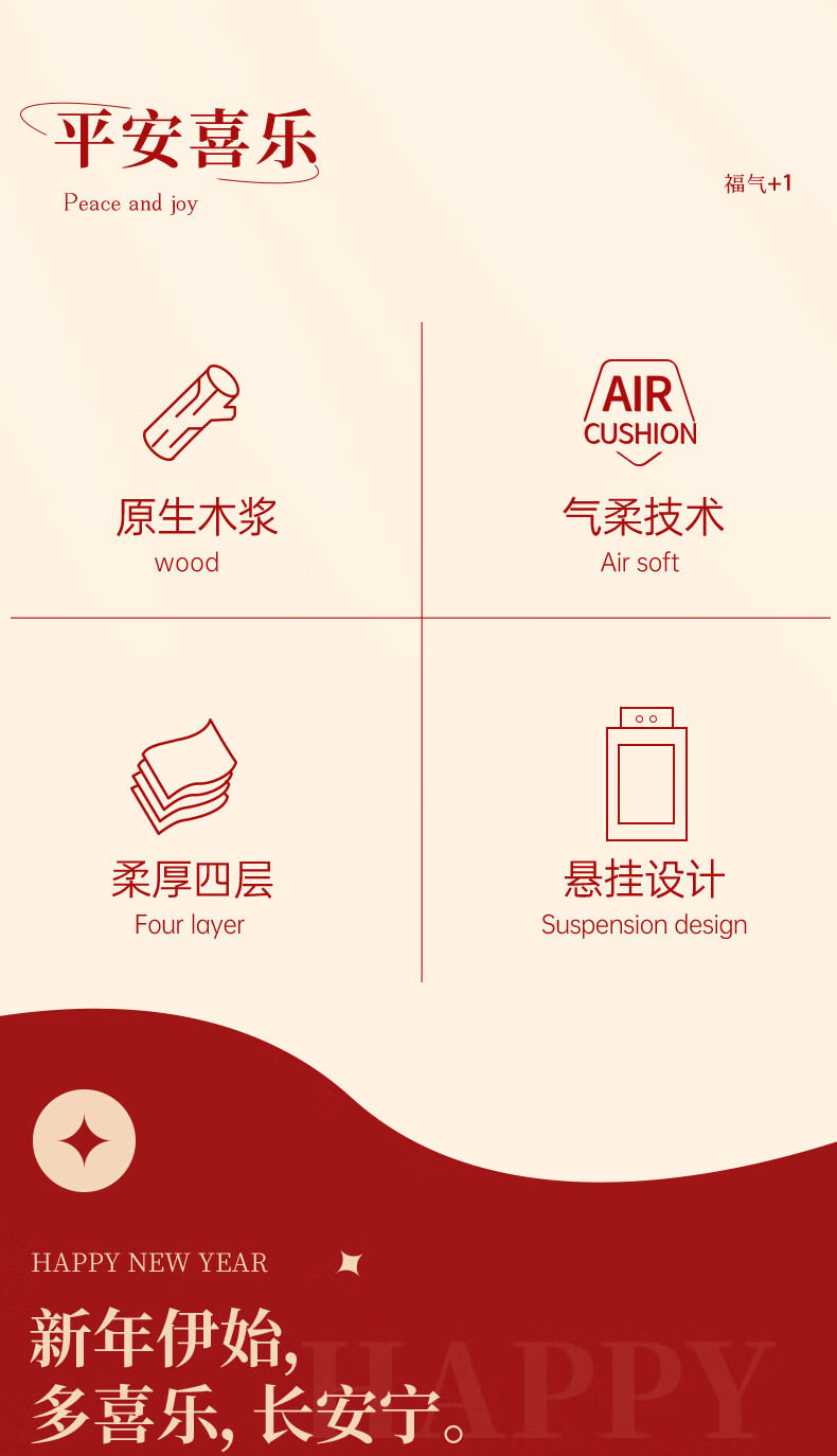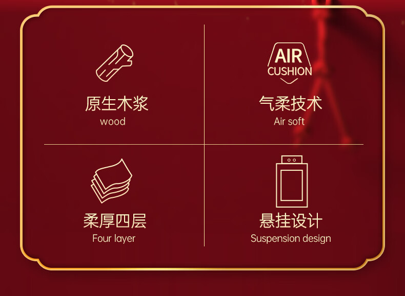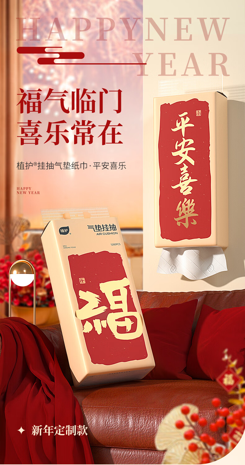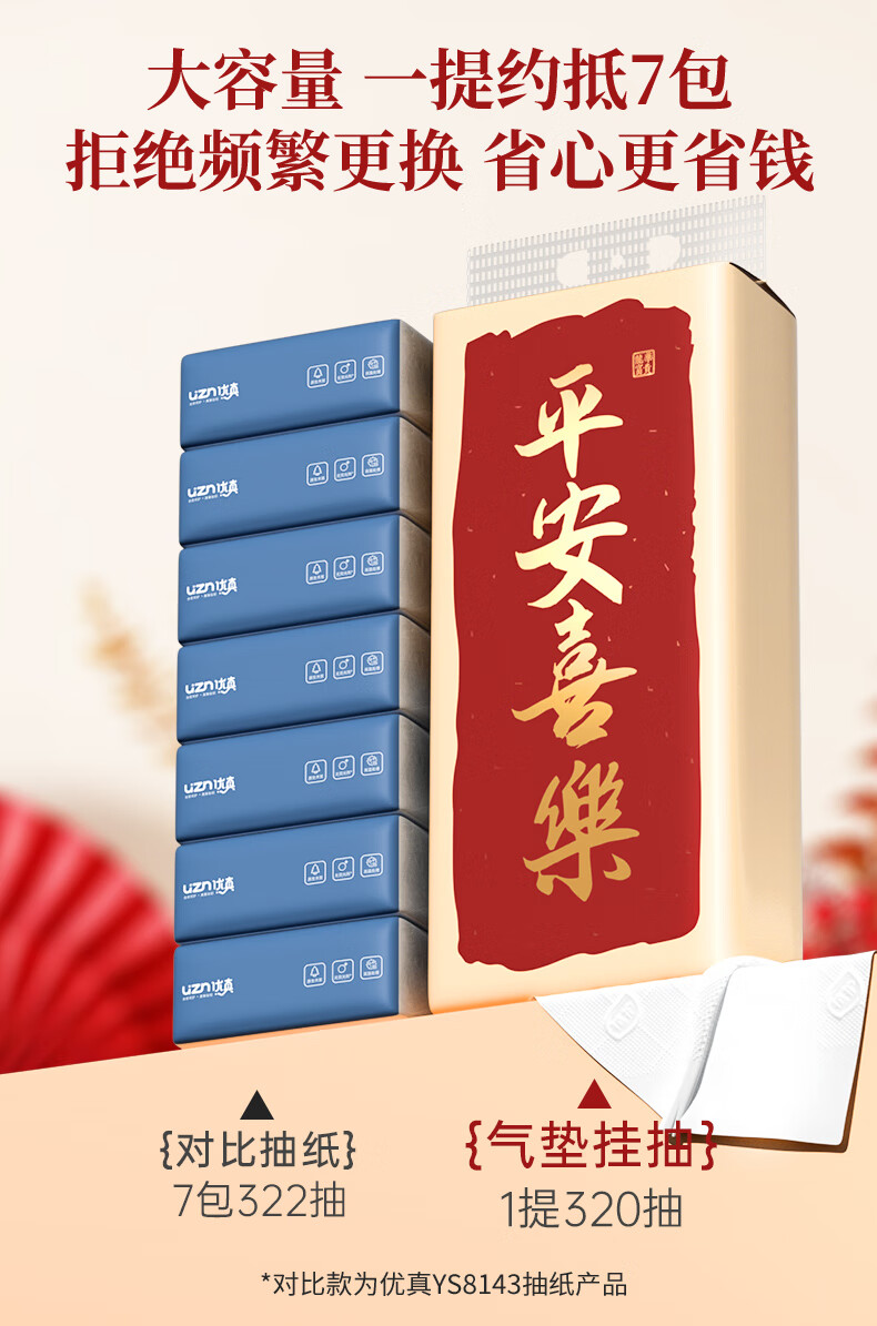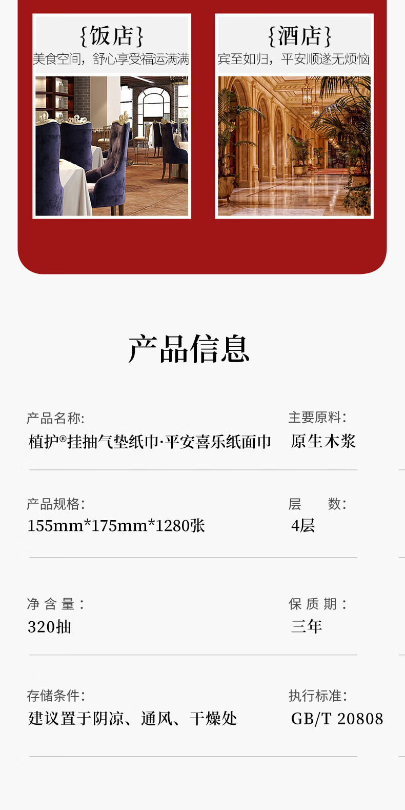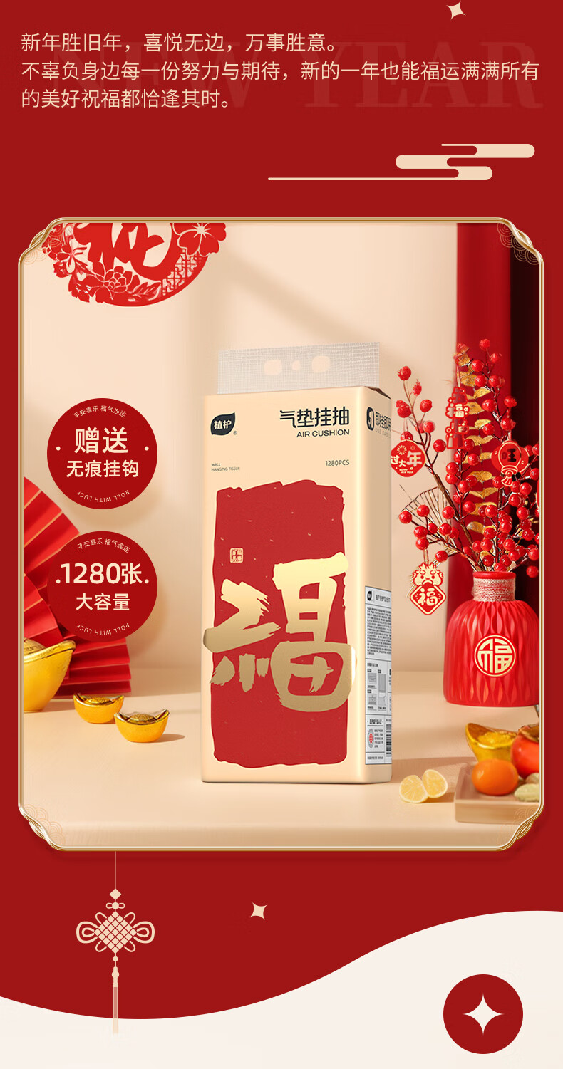 植护挂式抽纸 原生木浆纸巾加厚 卫生纸餐巾纸 4层 1040张*3提 (1挂钩)