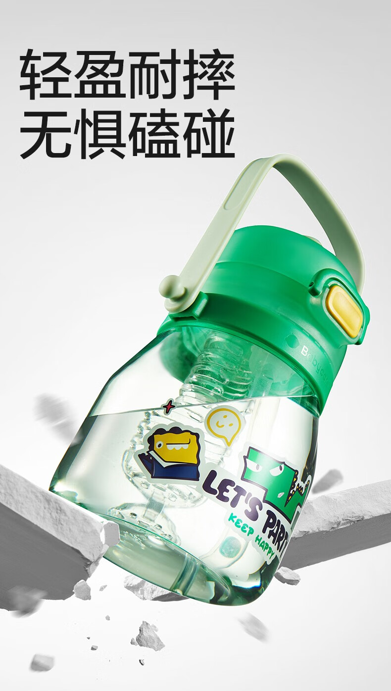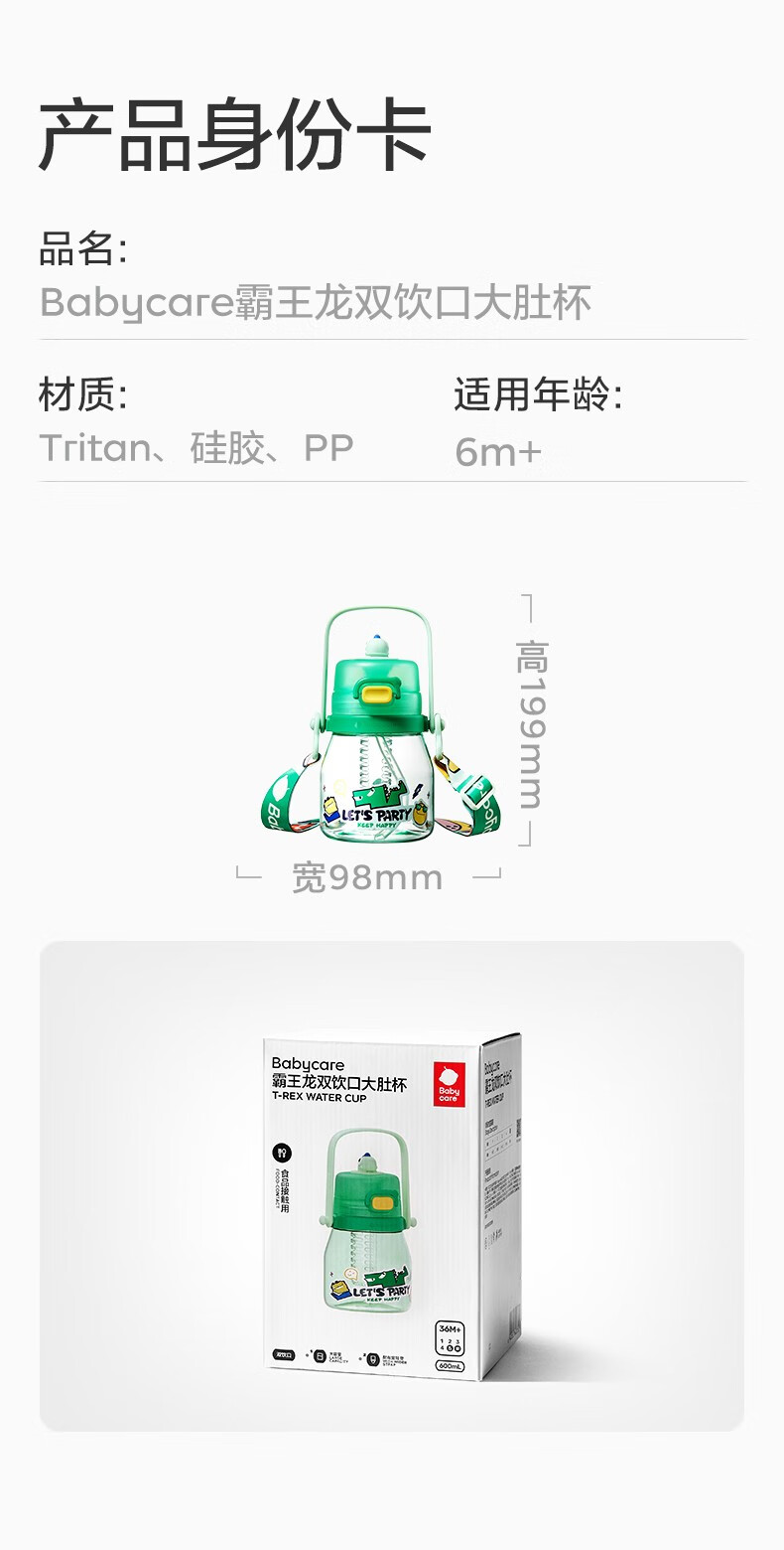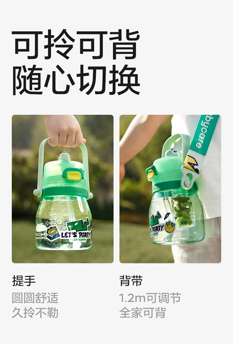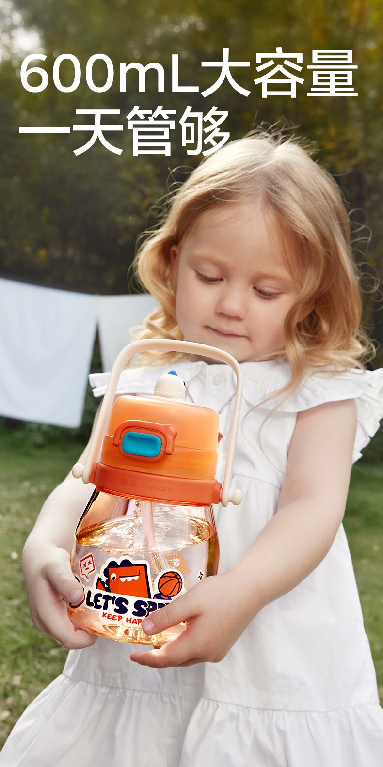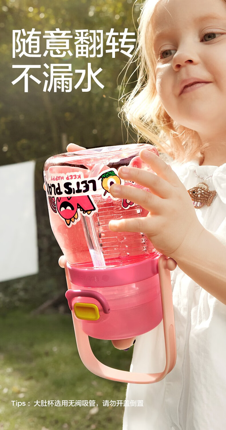 babycare大肚吸管水杯双饮运动外出便携儿童水杯大容量男女水壶600ml 维尔粉