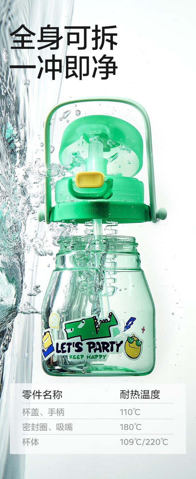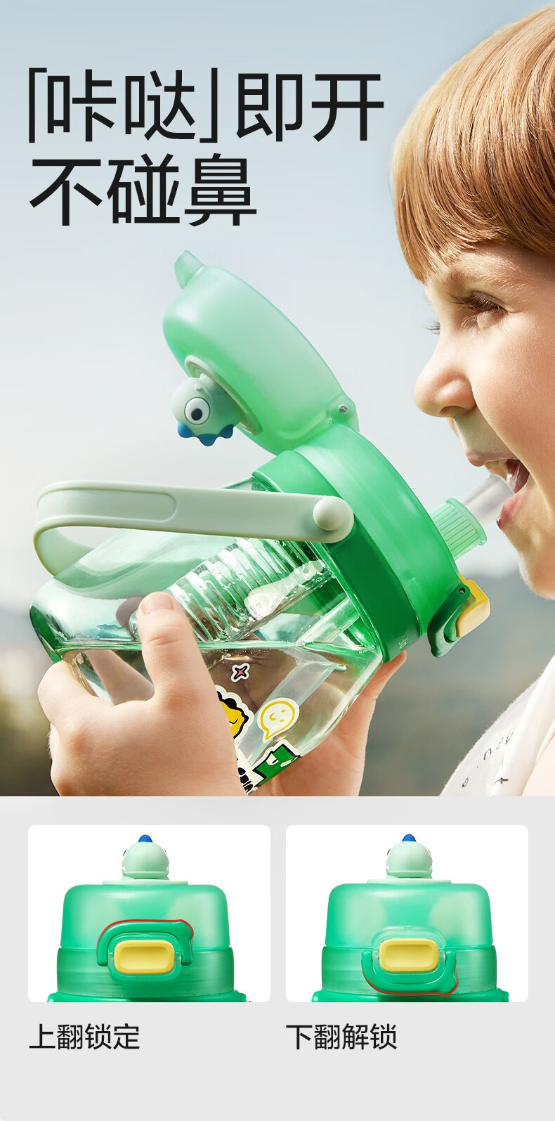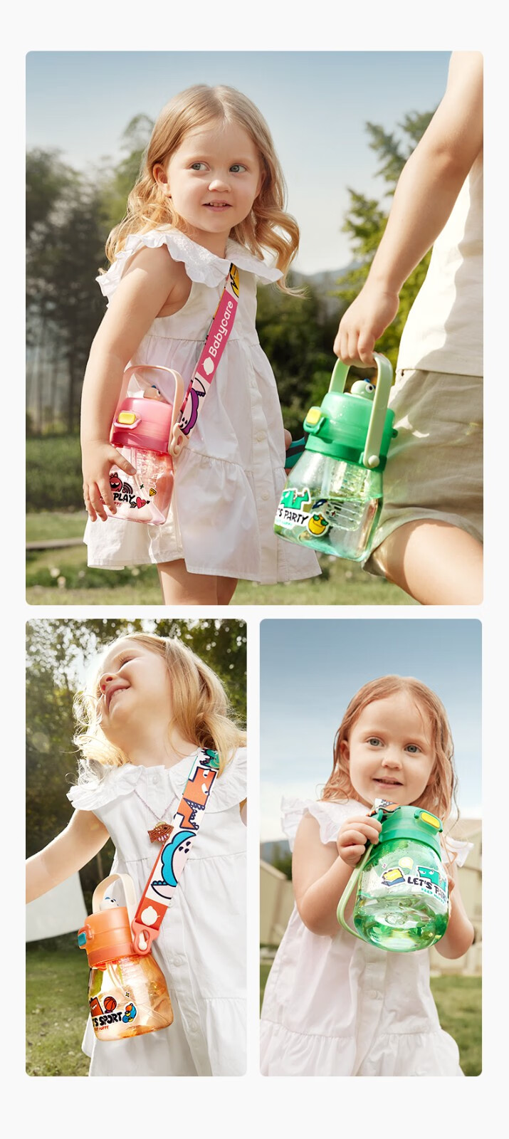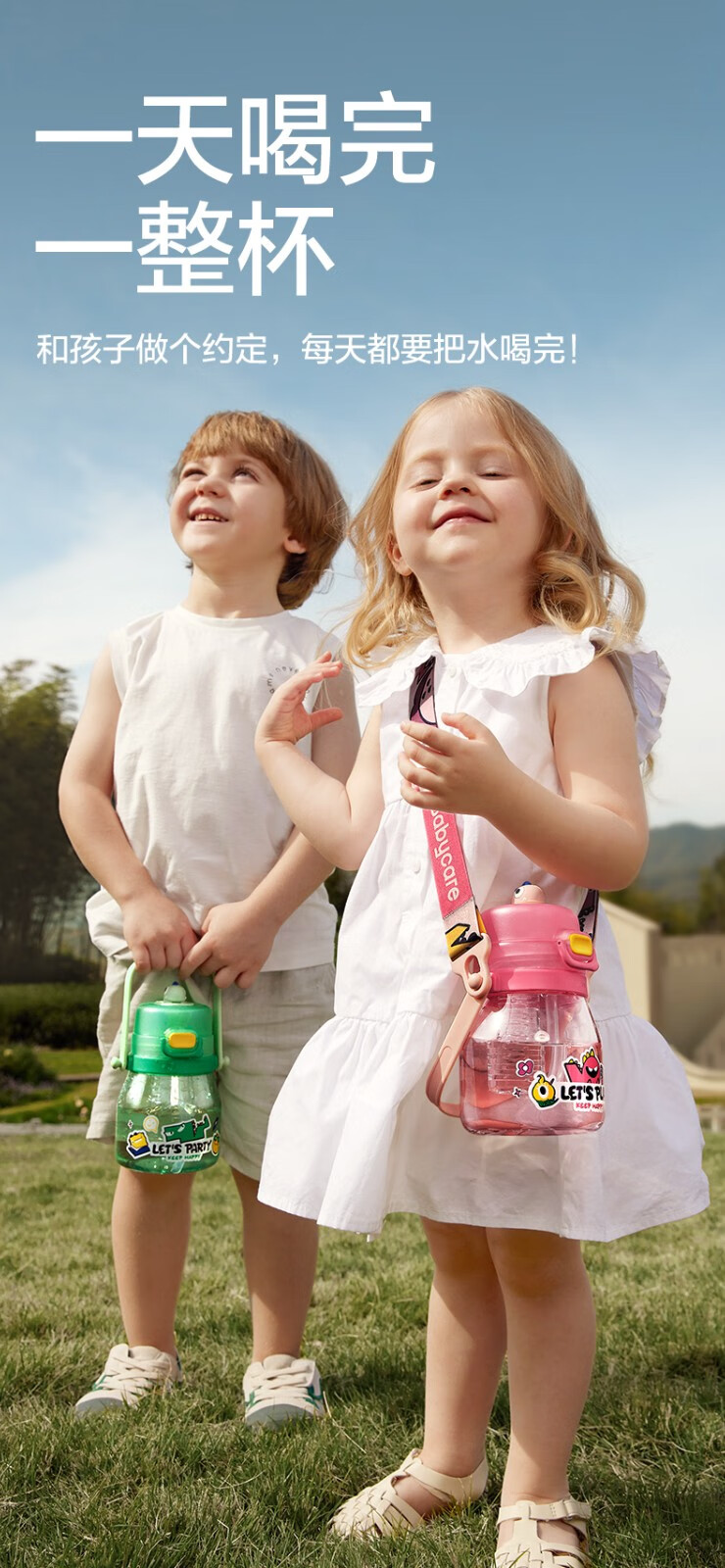 babycare大肚吸管水杯双饮运动外出便携儿童水杯大容量男女水壶600ml 维尔粉