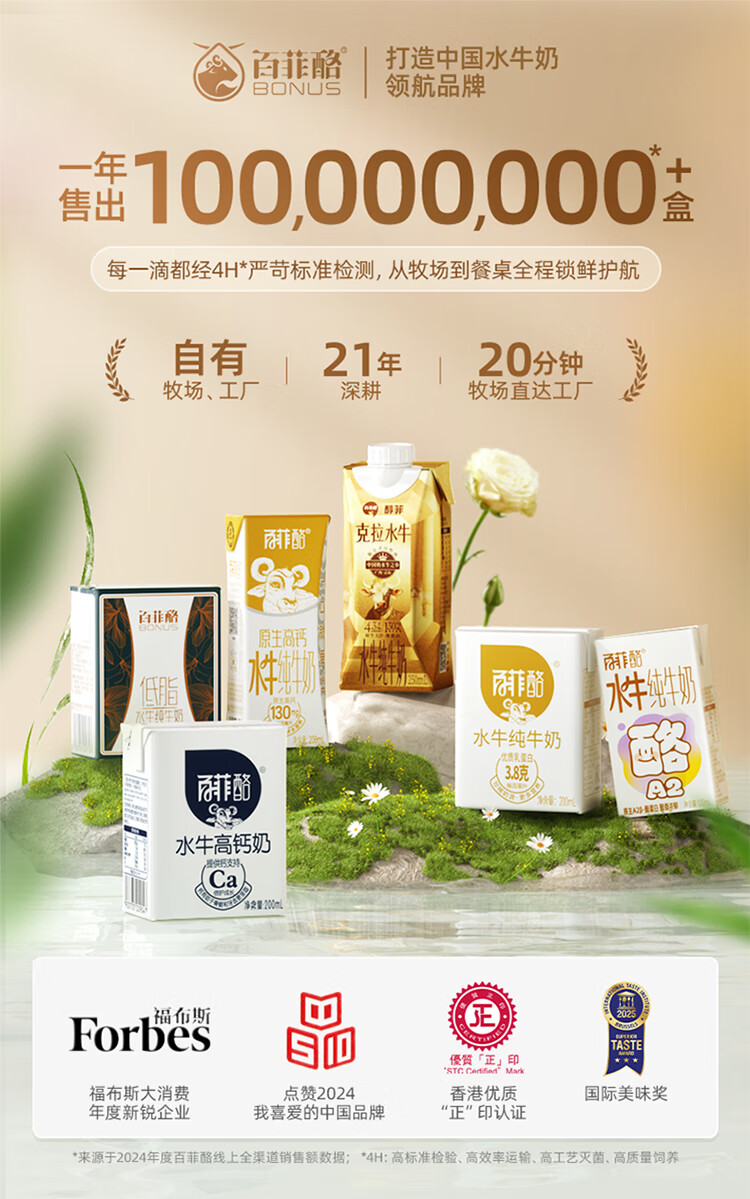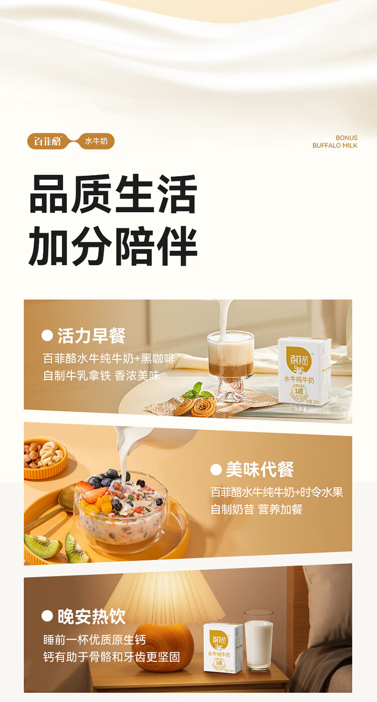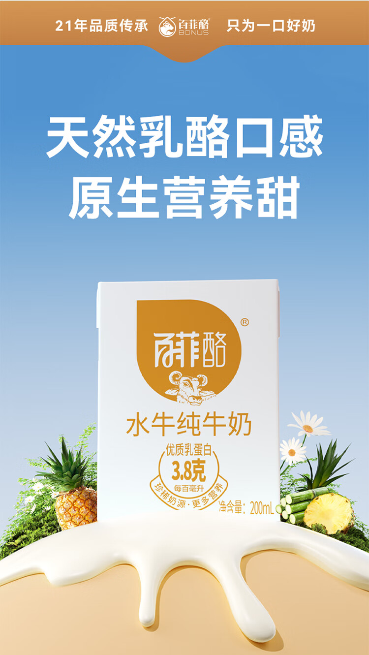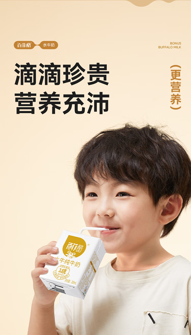 百菲酪 水牛纯牛奶 整箱学生成人营养早餐纯牛奶健康营养 中秋送礼 200ml*30盒