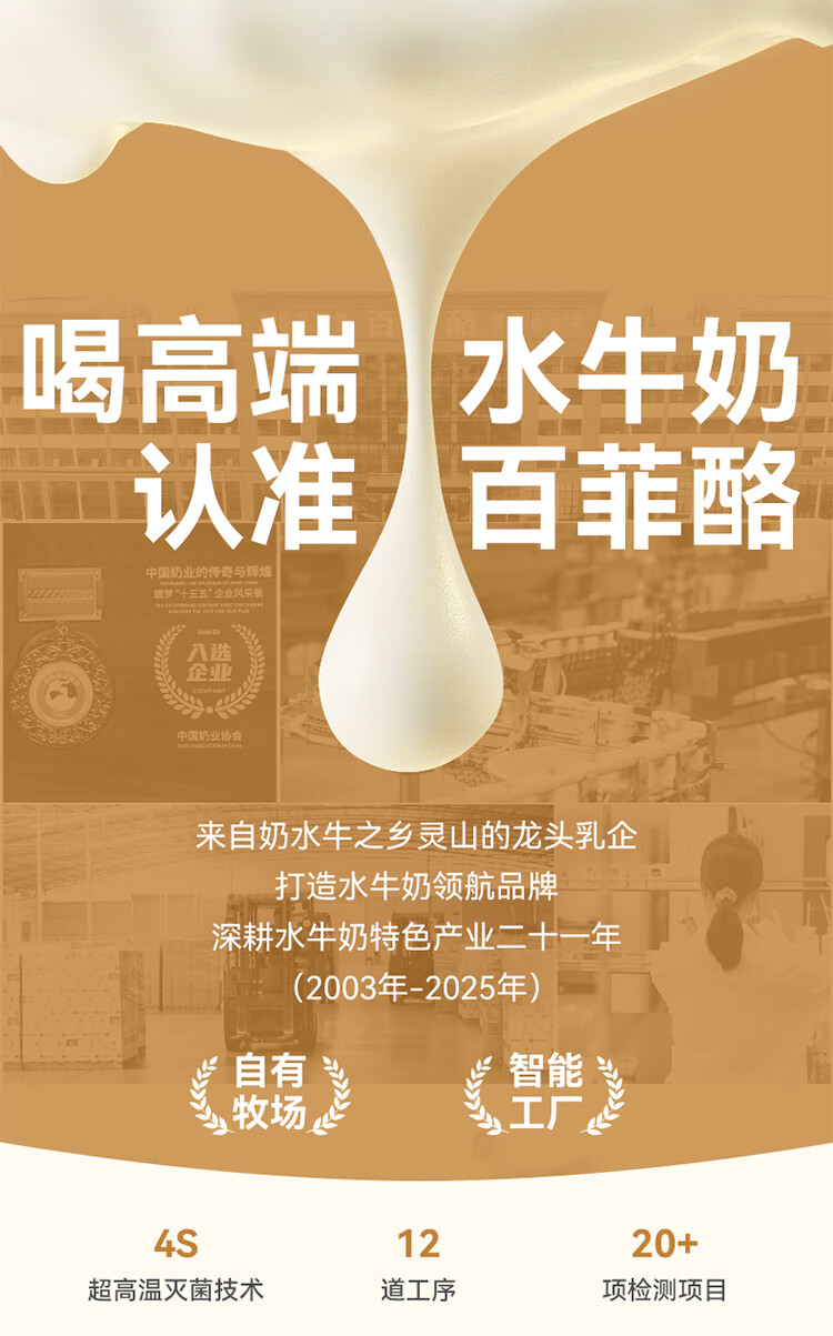 水牛满满A2β酪蛋白5.3g优质蛋白水牛奶甘甜高钙纯奶学生儿童营养早晚补钙 125ml*8盒*2箱