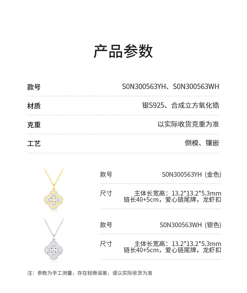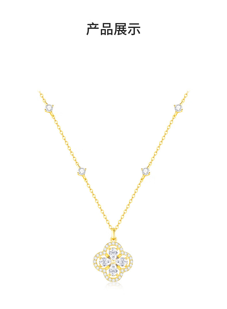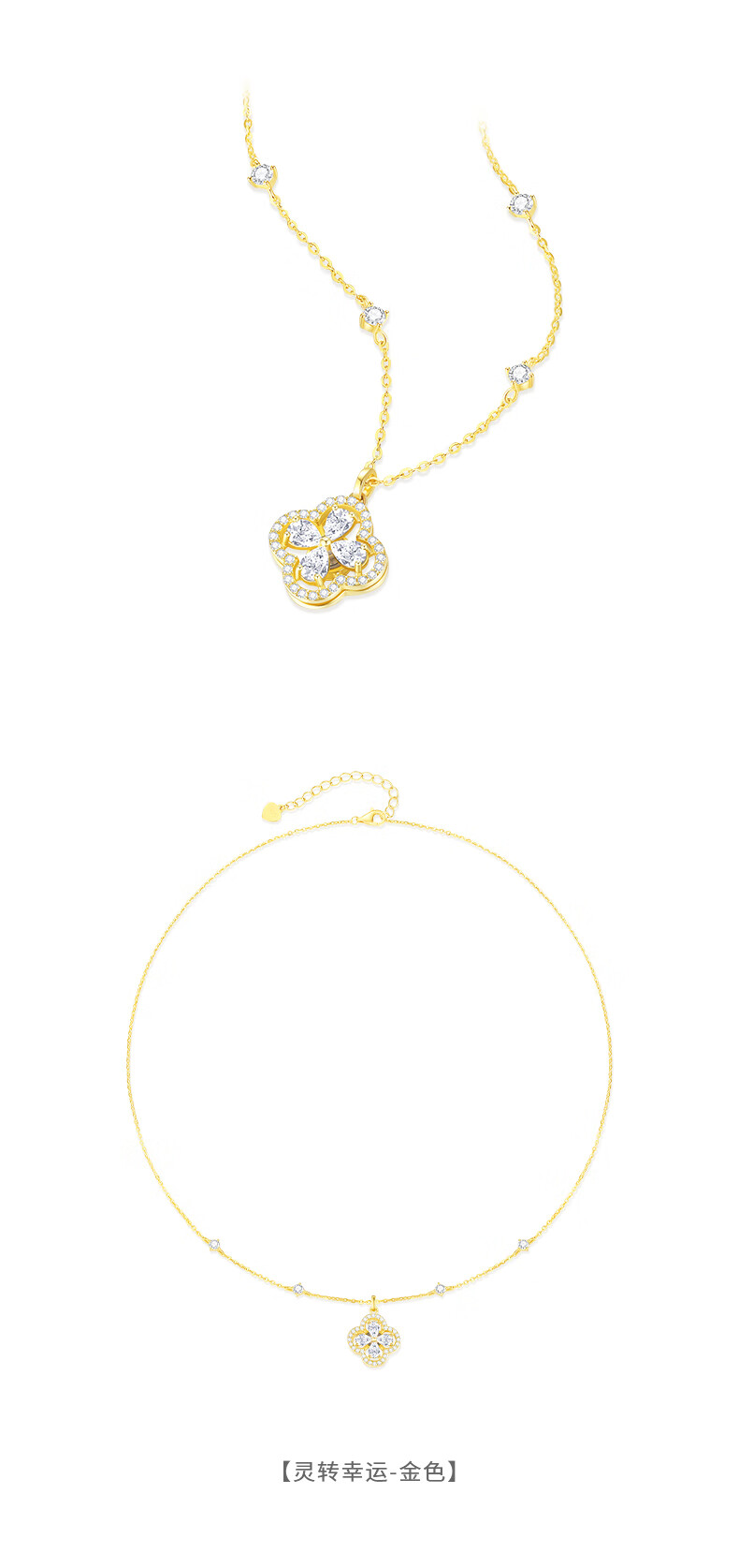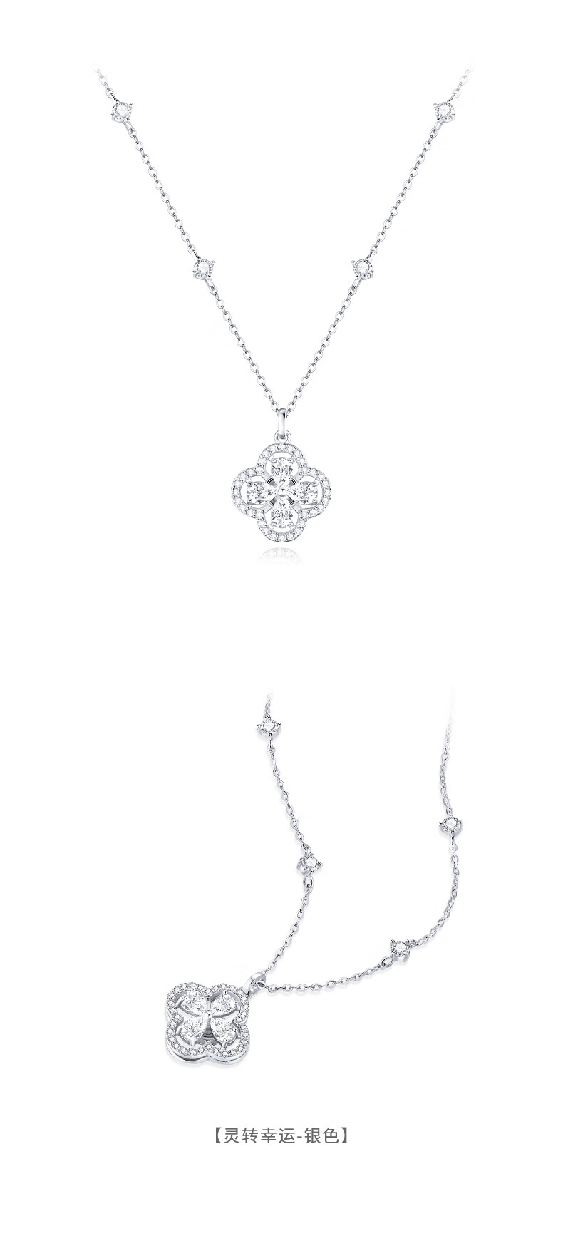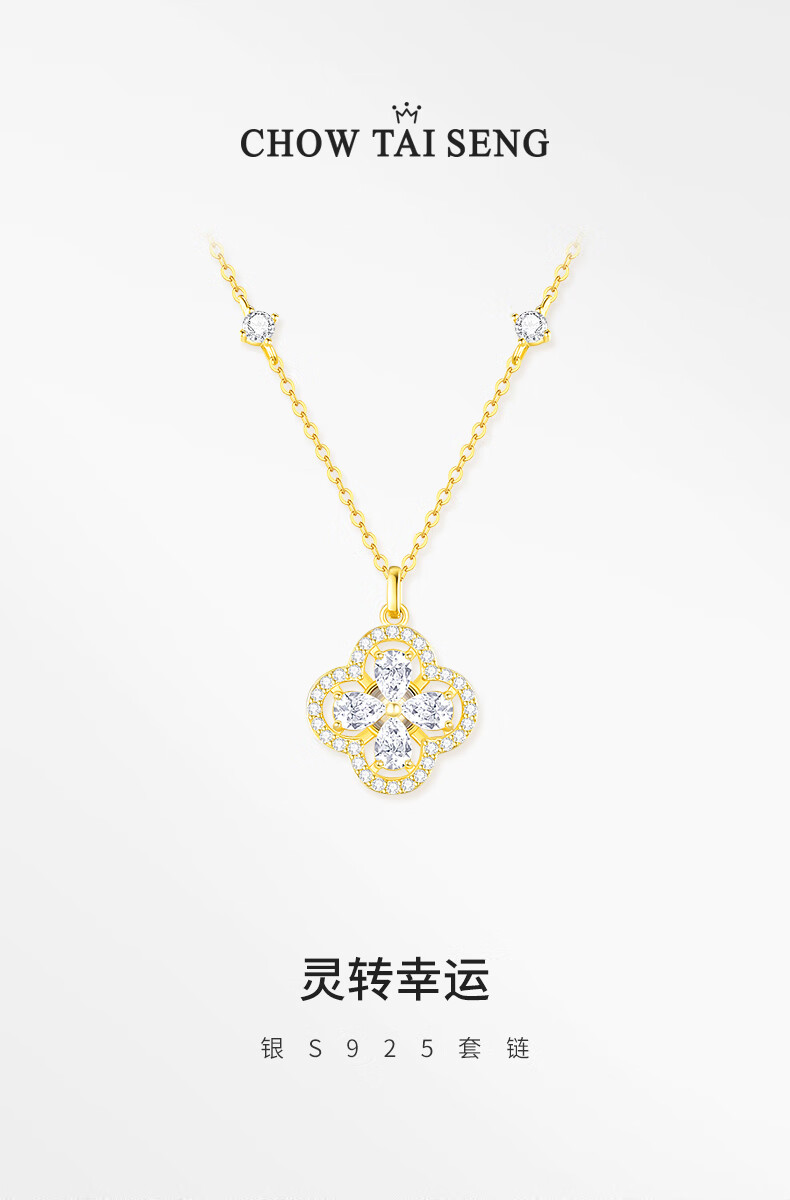 周大生四叶草项链纯银女轻奢百搭高级感锁骨链生日礼物送女生 银白色