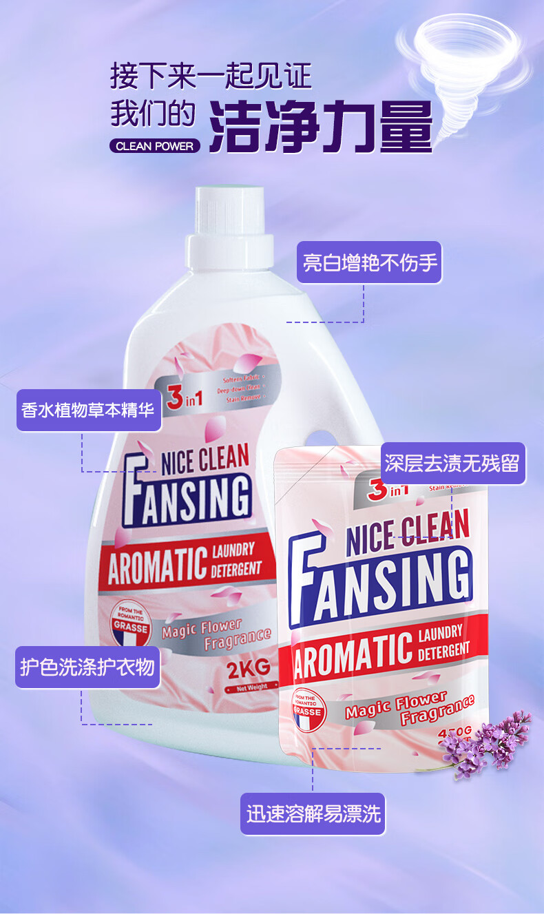 浣馨去渍留香洗衣液 深层洁净欧洲混合香氛柔顺护衣持久留香机洗手洗 【去渍留香】2.5kg*2袋到手10斤