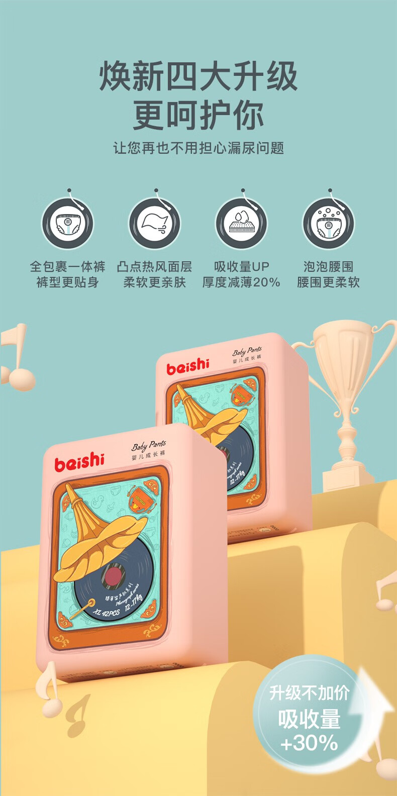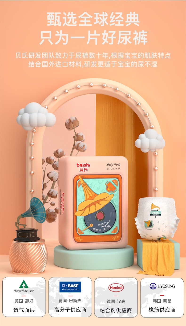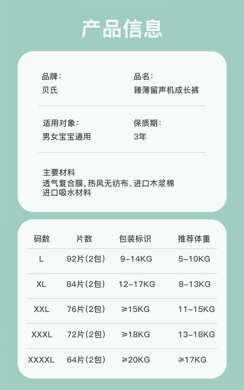 貝氏(beishi)臻薄拉拉裤超薄花苞裤透气柔软干爽学步裤尿不湿 臻薄拉拉裤 XXXL码72片