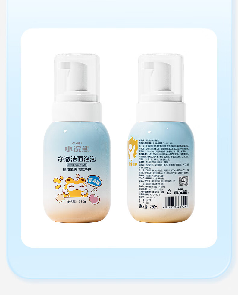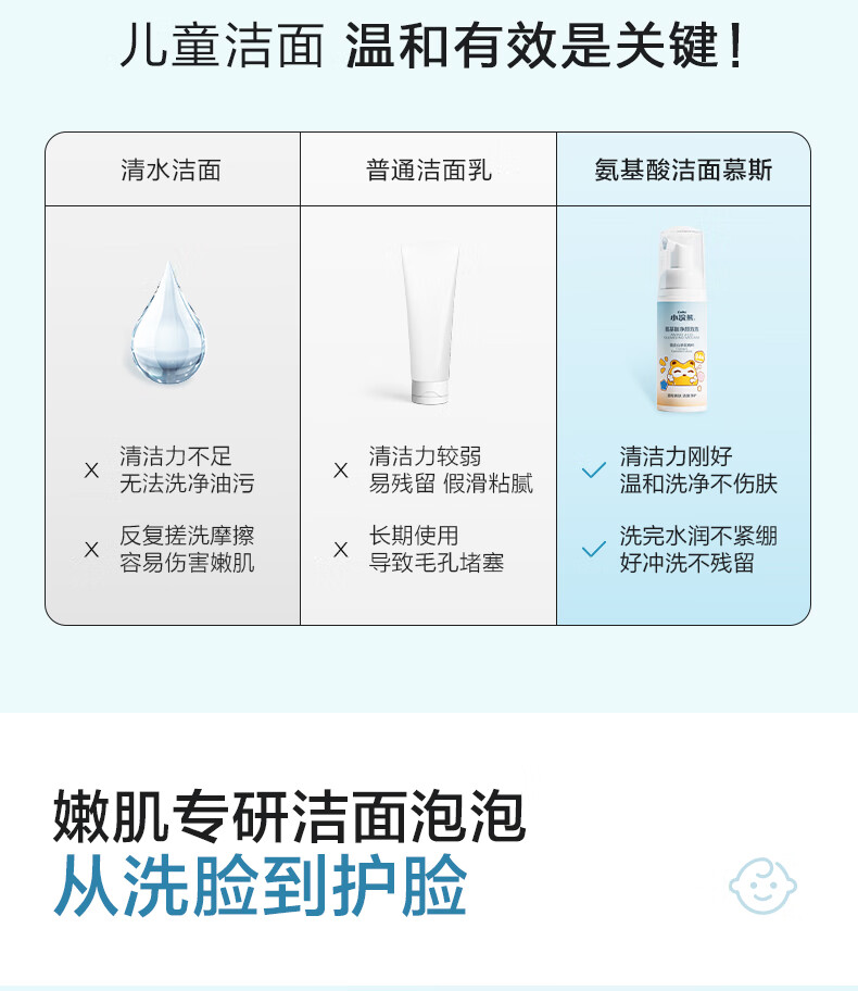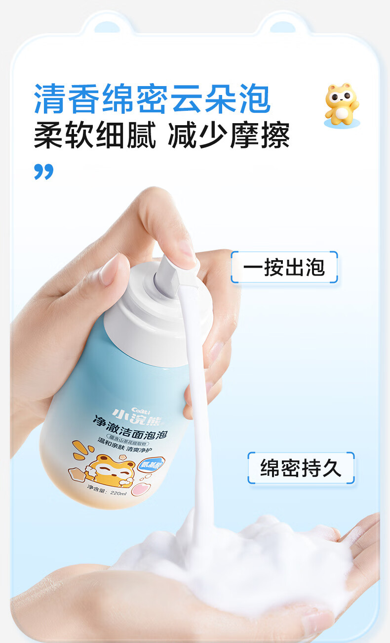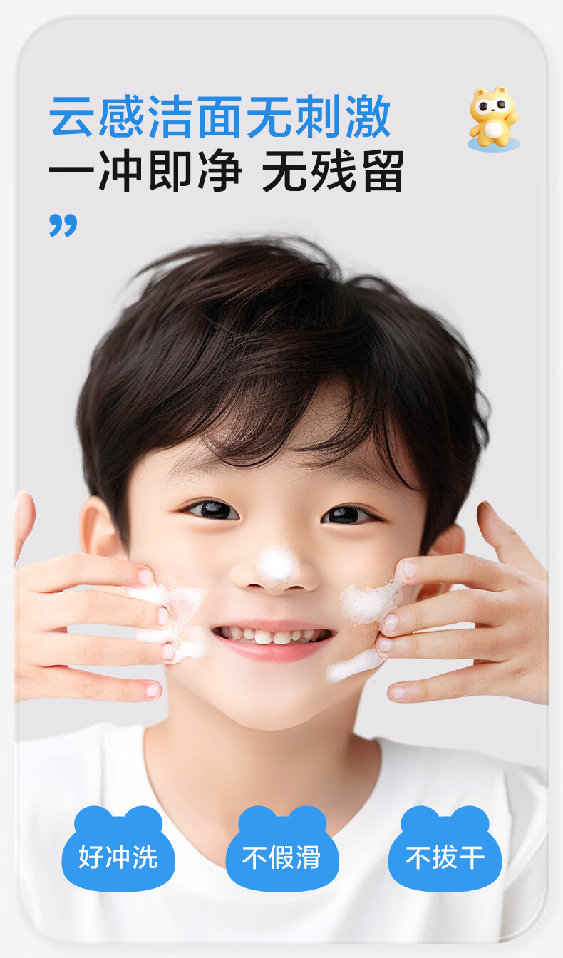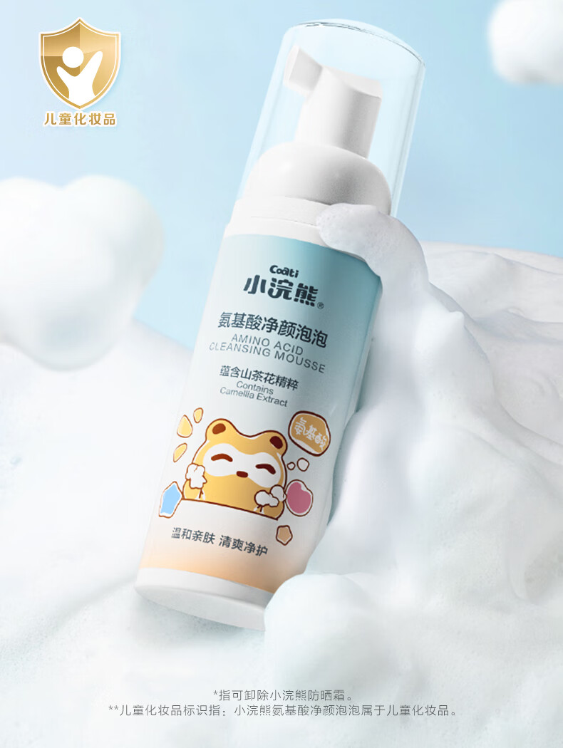 小浣熊儿童洗面奶氨基酸洁面泡泡男女孩青少年保湿学生洗脸奶 氨基酸净颜泡泡55ml*2瓶