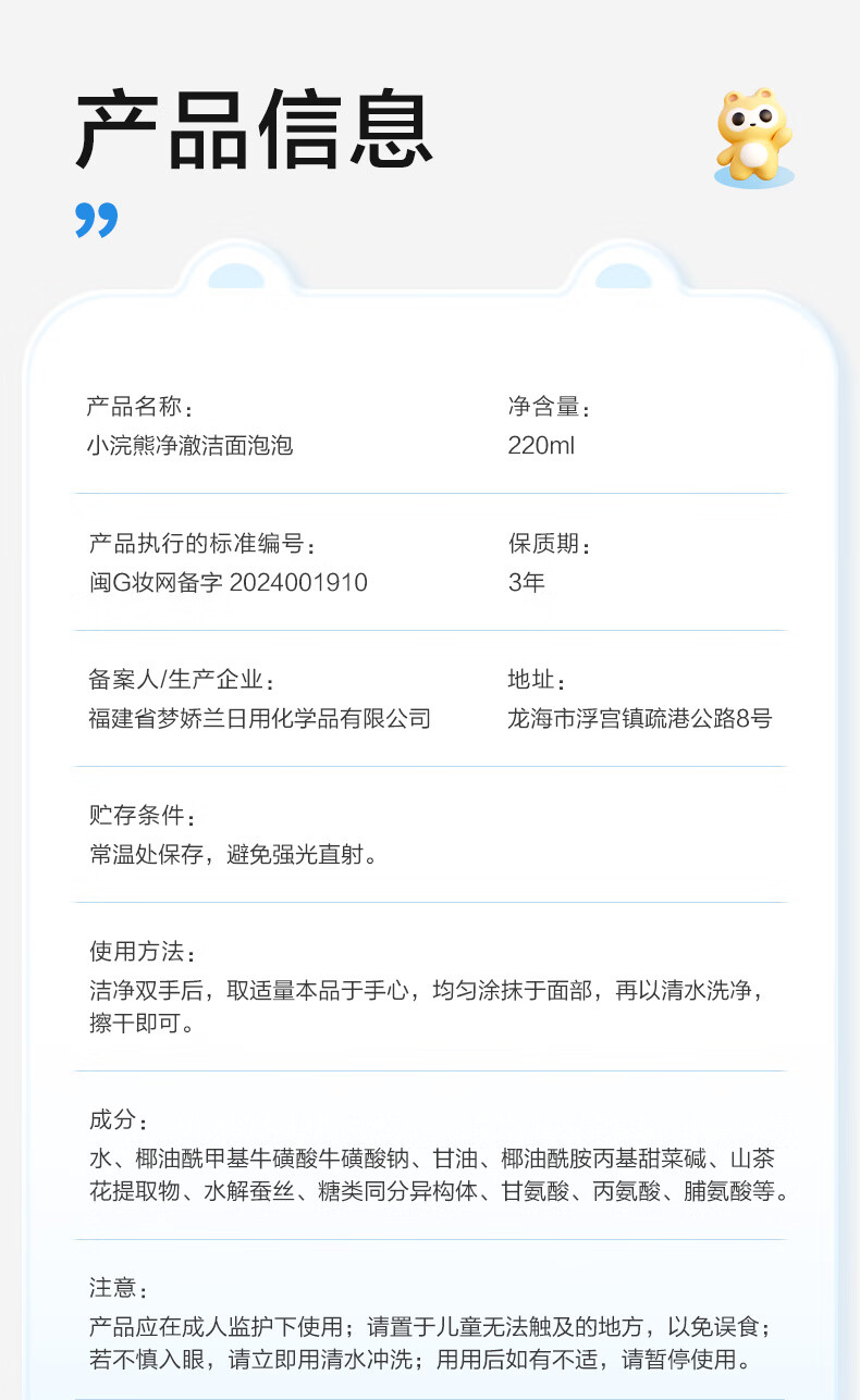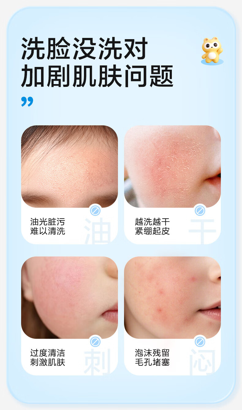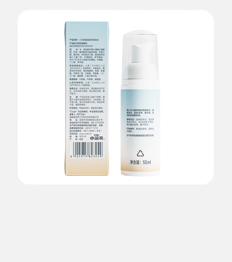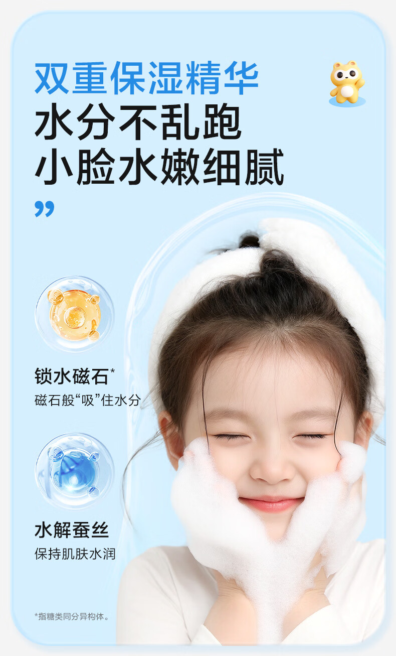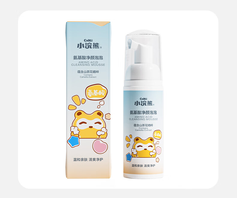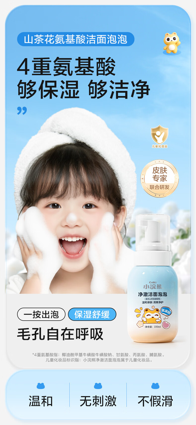 小浣熊儿童洗面奶氨基酸洁面泡泡男女孩青少年保湿学生洗脸奶 氨基酸净颜泡泡55ml*2瓶