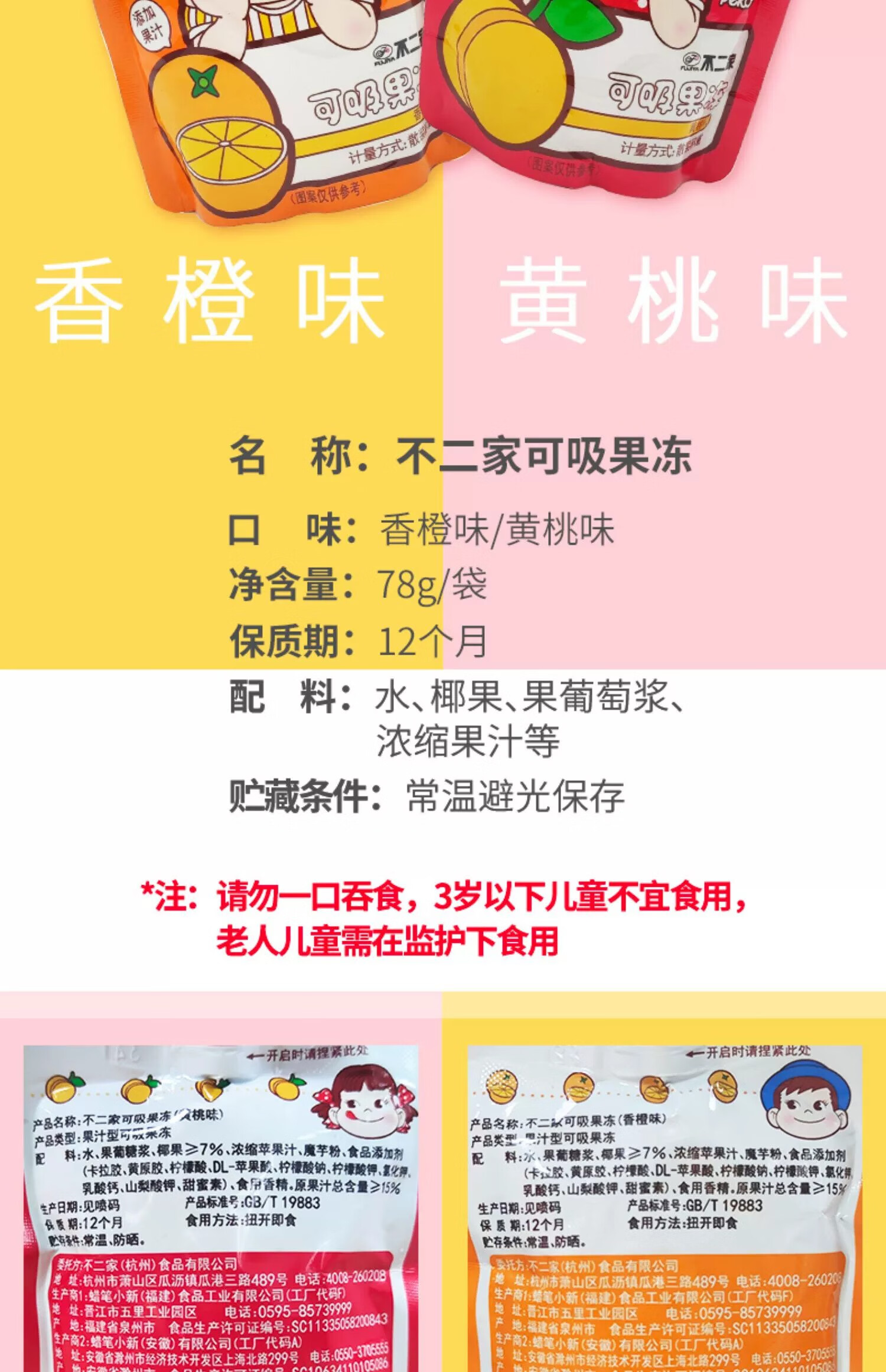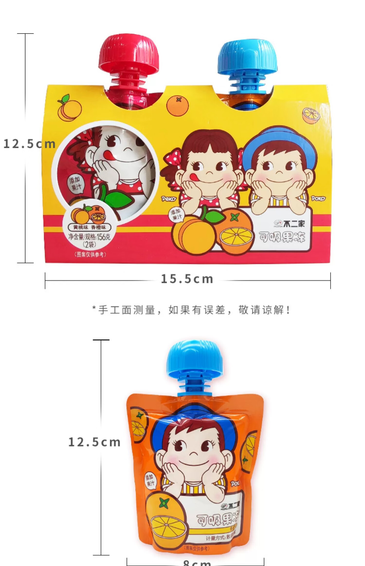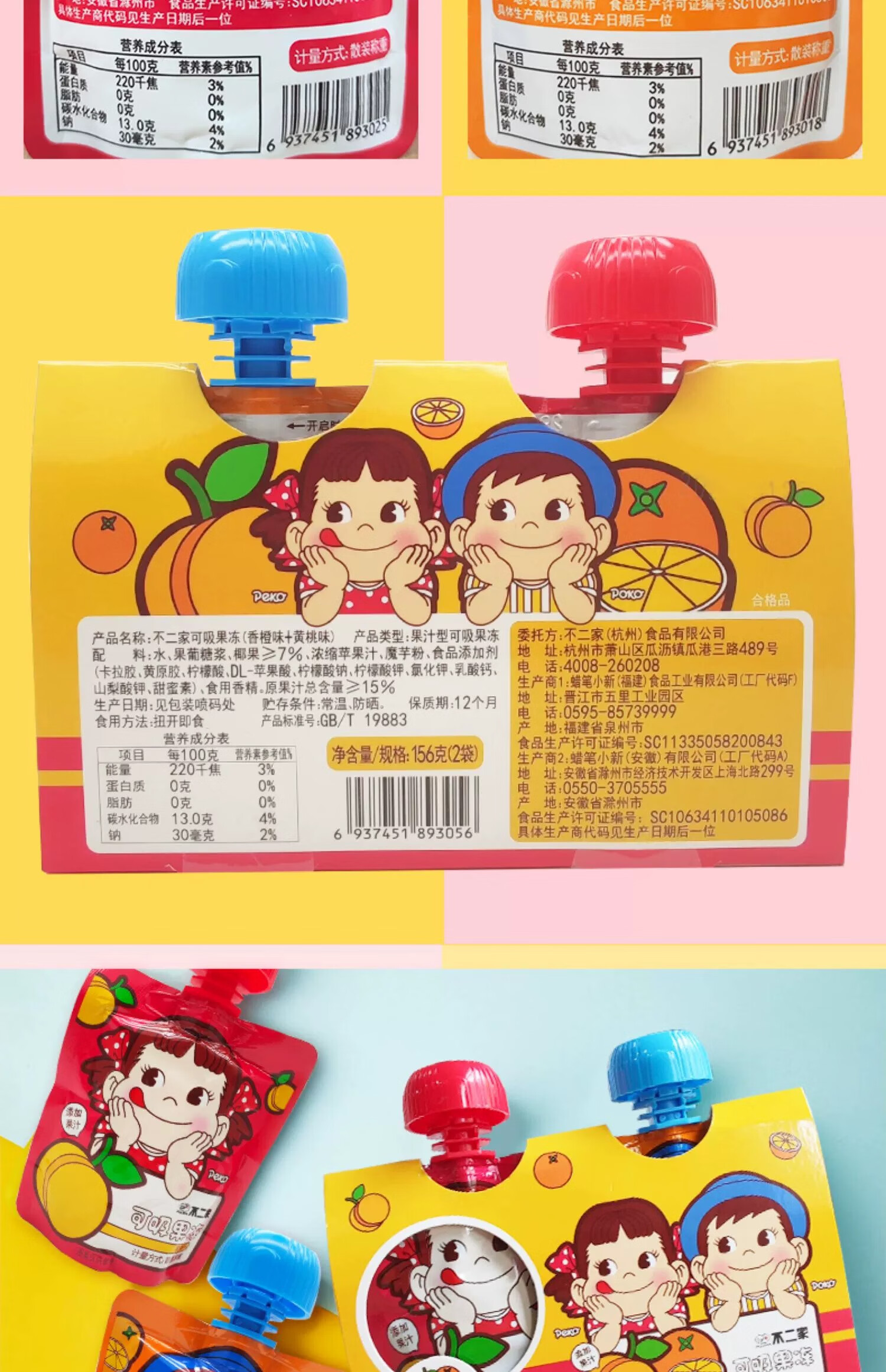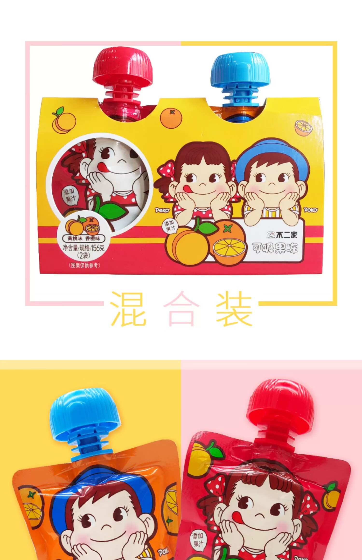 不二家 香橙味+黄桃味可吸果冻 156g(1对)儿童礼物 休闲零食 解馋果冻
