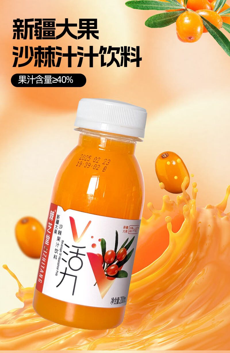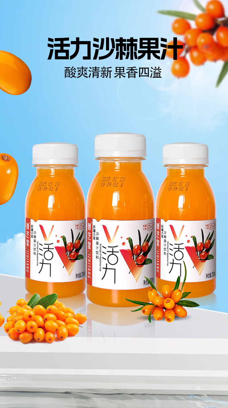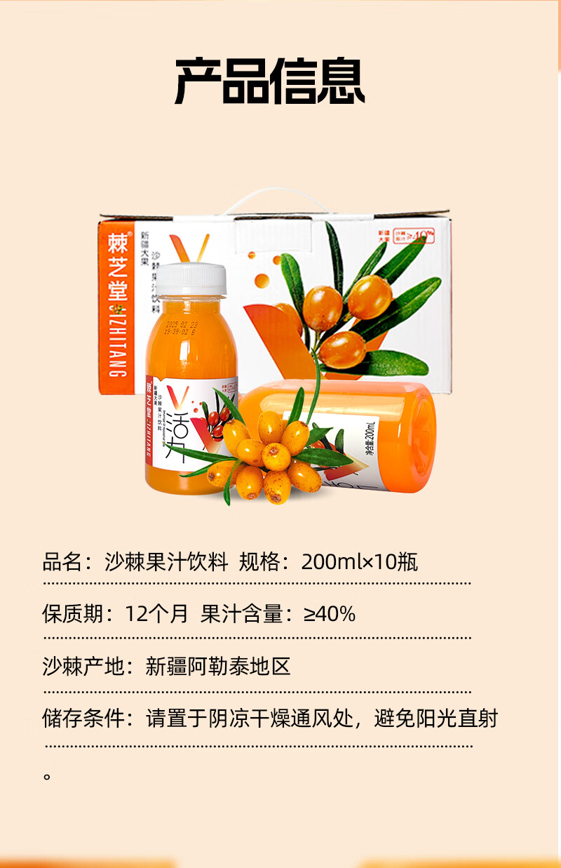 棘芝堂新疆大果沙棘果汁饮料200ml*10盒(礼盒装)酸甜爽口果味浓郁 沙棘汁礼盒 200ml*10瓶(礼盒装)