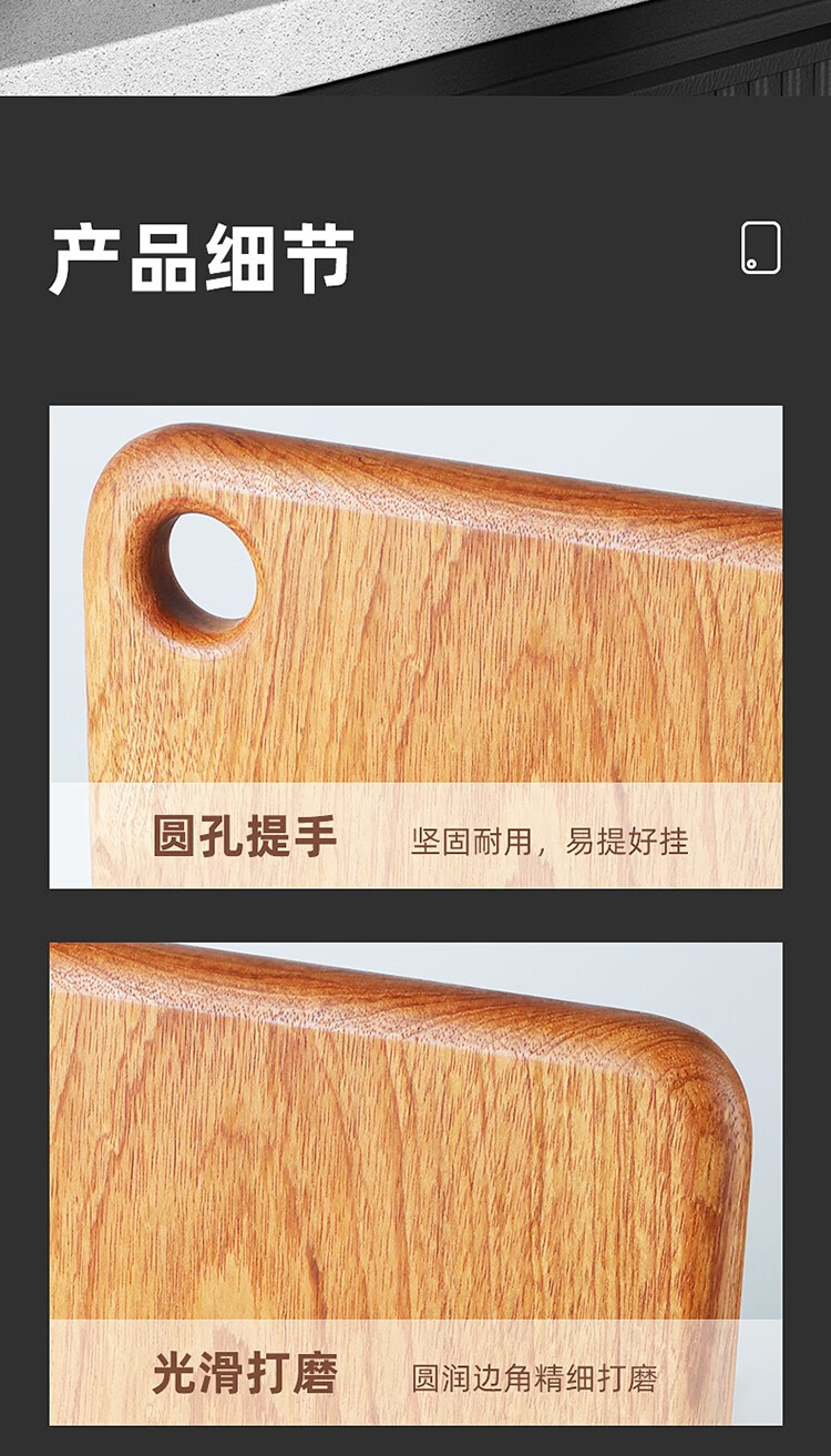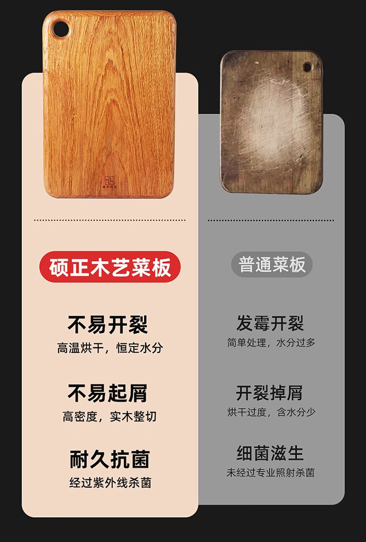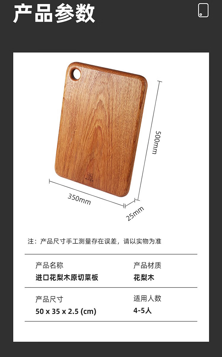砚正南美花梨木菜板抗菌防霉实木案板家用砧板整木厨房切菜板擀面板 43*30*2.5CM【适用3-5人】