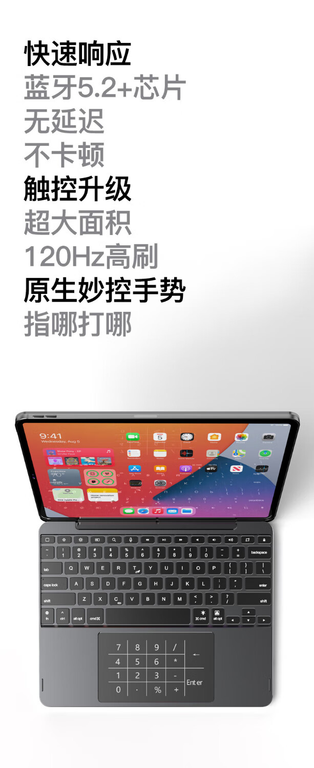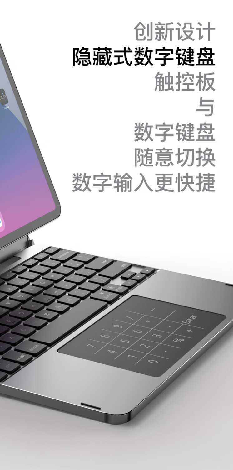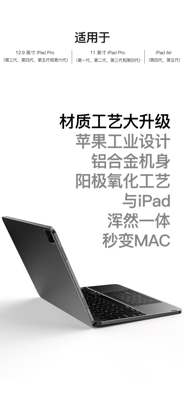 lentil铝合金妙控键盘苹果iPad Air5/4/Pro磁吸悬浮2024新款10.9/11英寸保护套蓝牙触控平板电脑保护壳 浅灰色 适用于2018以上iPad Pro 12.9英寸