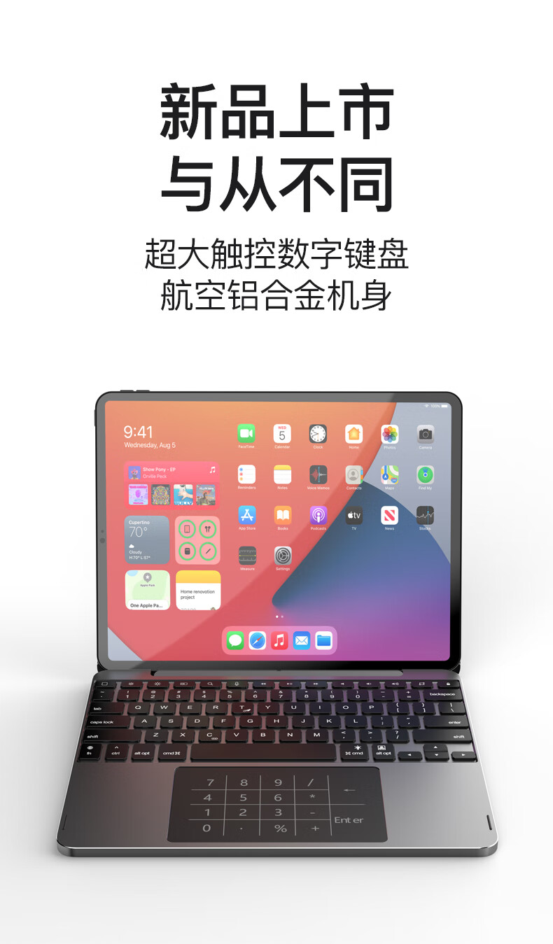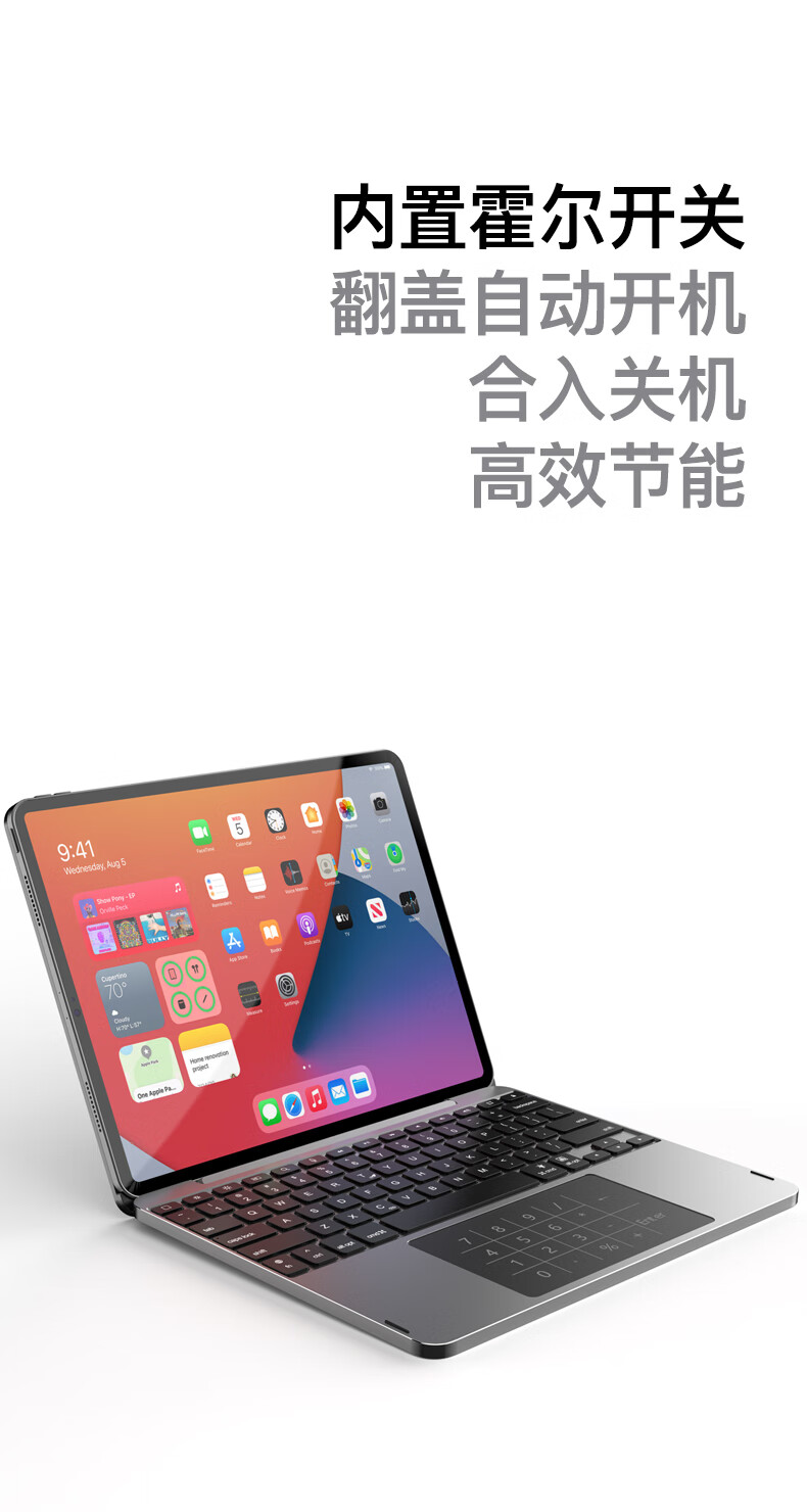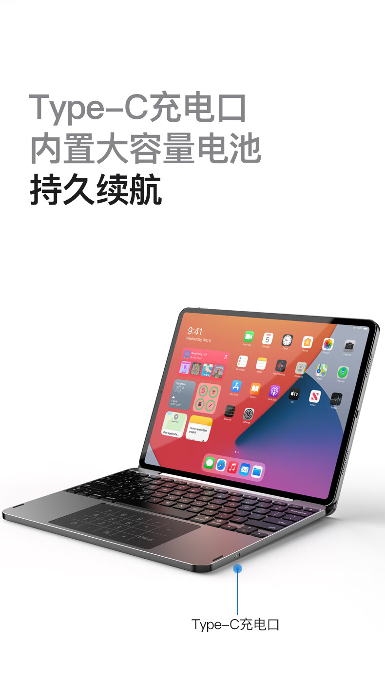 lentil铝合金妙控键盘苹果iPad Air5/4/Pro磁吸悬浮2024新款10.9/11英寸保护套蓝牙触控平板电脑保护壳 浅灰色 适用于2018以上iPad Pro 12.9英寸