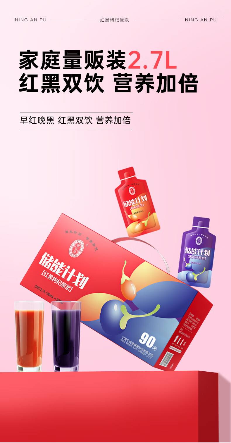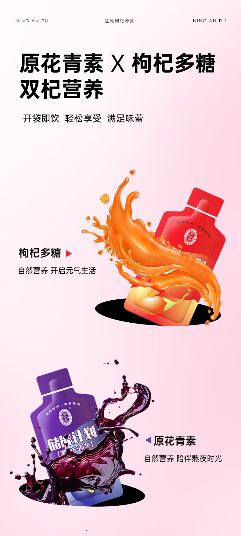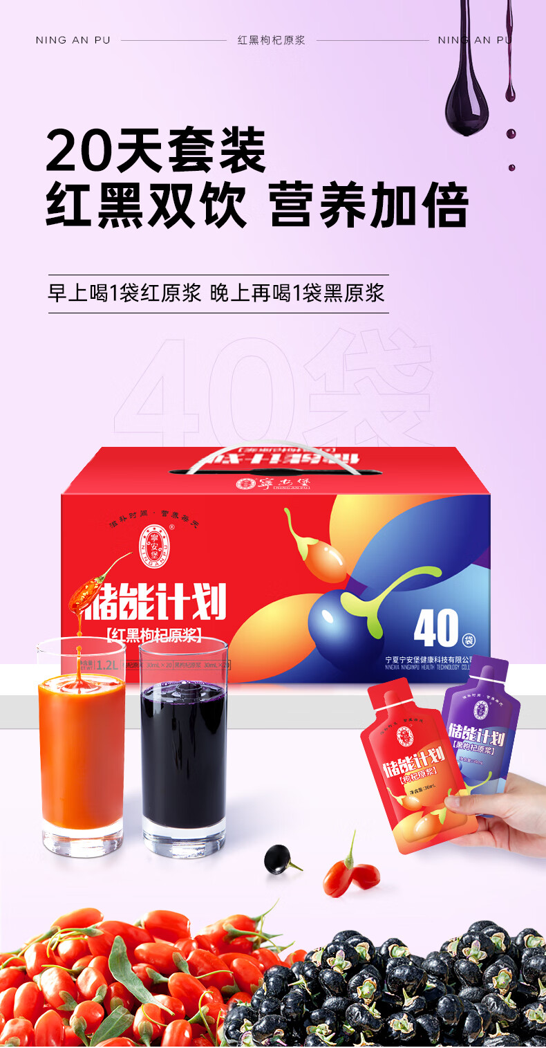 宁安堡正宗宁夏枸杞原浆花青素原汁补青海黑枸杞原浆礼盒肾男性熬夜 红黑枸杞原浆30ml*90袋