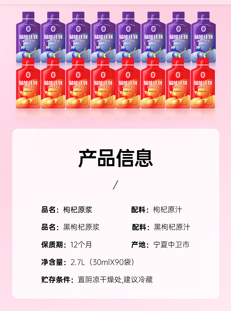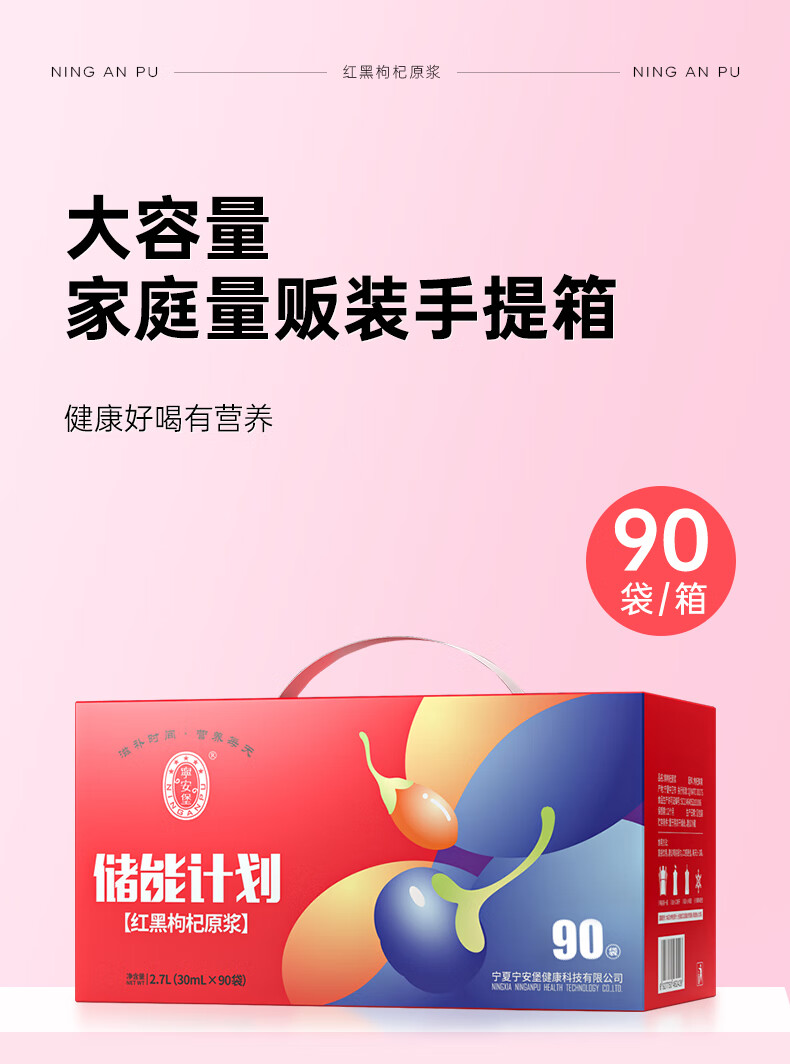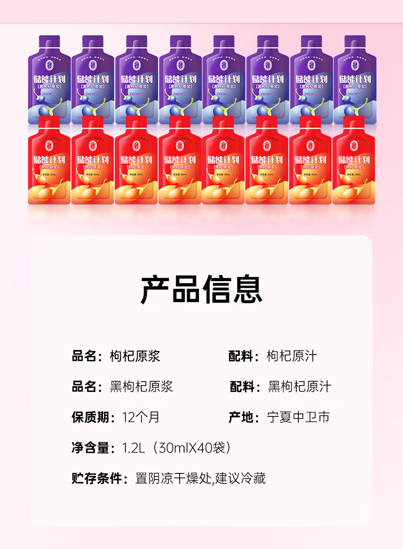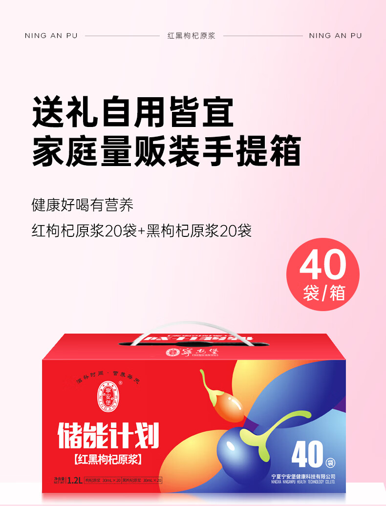 宁安堡正宗宁夏枸杞原浆花青素原汁补青海黑枸杞原浆礼盒肾男性熬夜 红黑枸杞原浆30ml*90袋